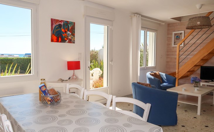 Reihenhaus "Partie de pêche". 4.5 km vom Zentrum von Plozévet, 5.5 km vom Zentrum von Pouldreuzic, 50 m vom Meer, 50 m vom Strand, Strasse zu überqueren. Zur Mitbenutzung: naturbelassenes Grundstück 3'000 m2 mit Rasen. Im Hause: Waschmaschine (zur Mitbenutzung). Parkplatz auf dem Grundstück. Supermarkt 4.5 km, Restaurant 1.1 km, Bar 1.1 km, Bushaltestelle 5 km. Sporthafen 16 km, Surfschule 1.1 km.