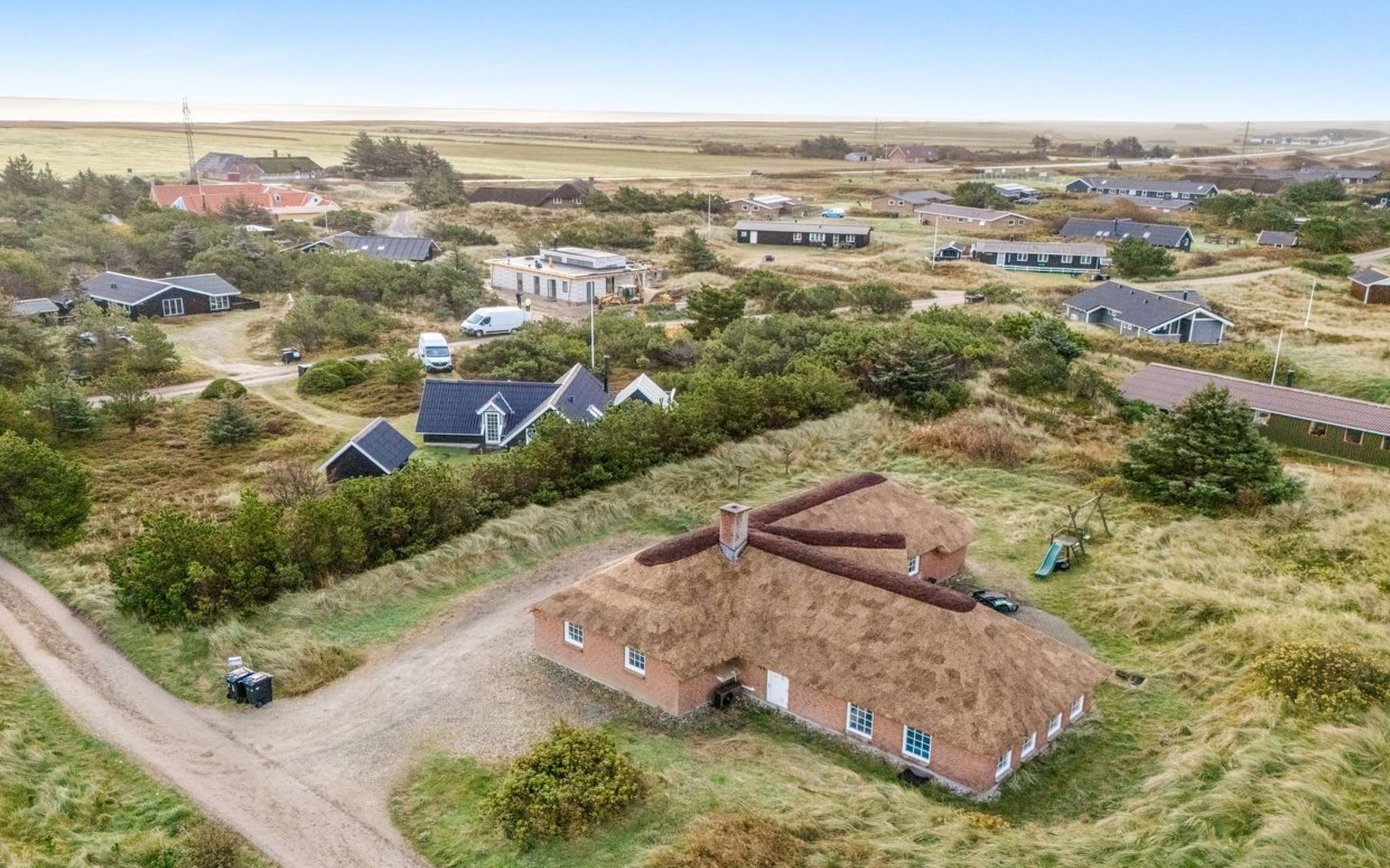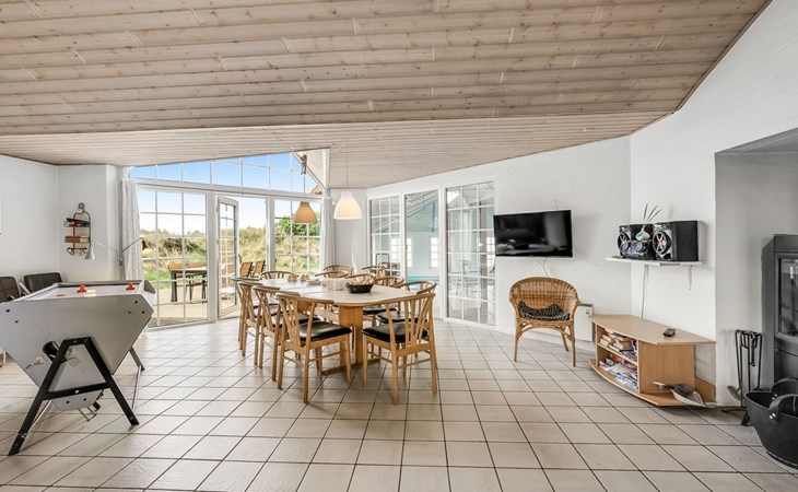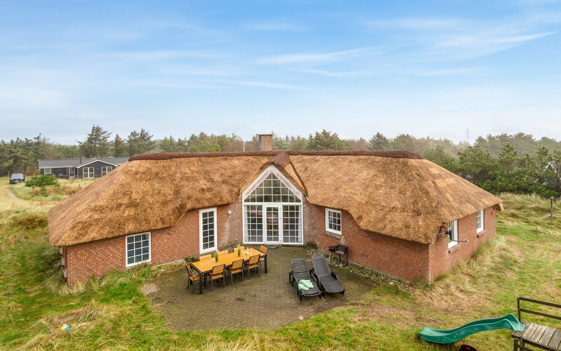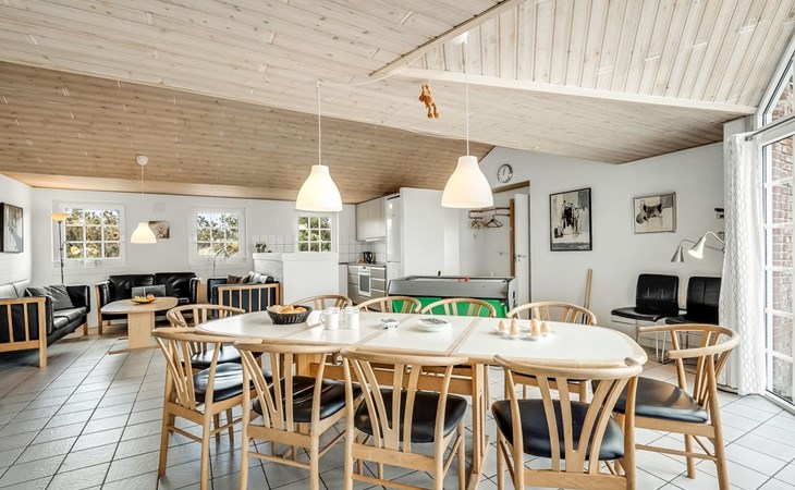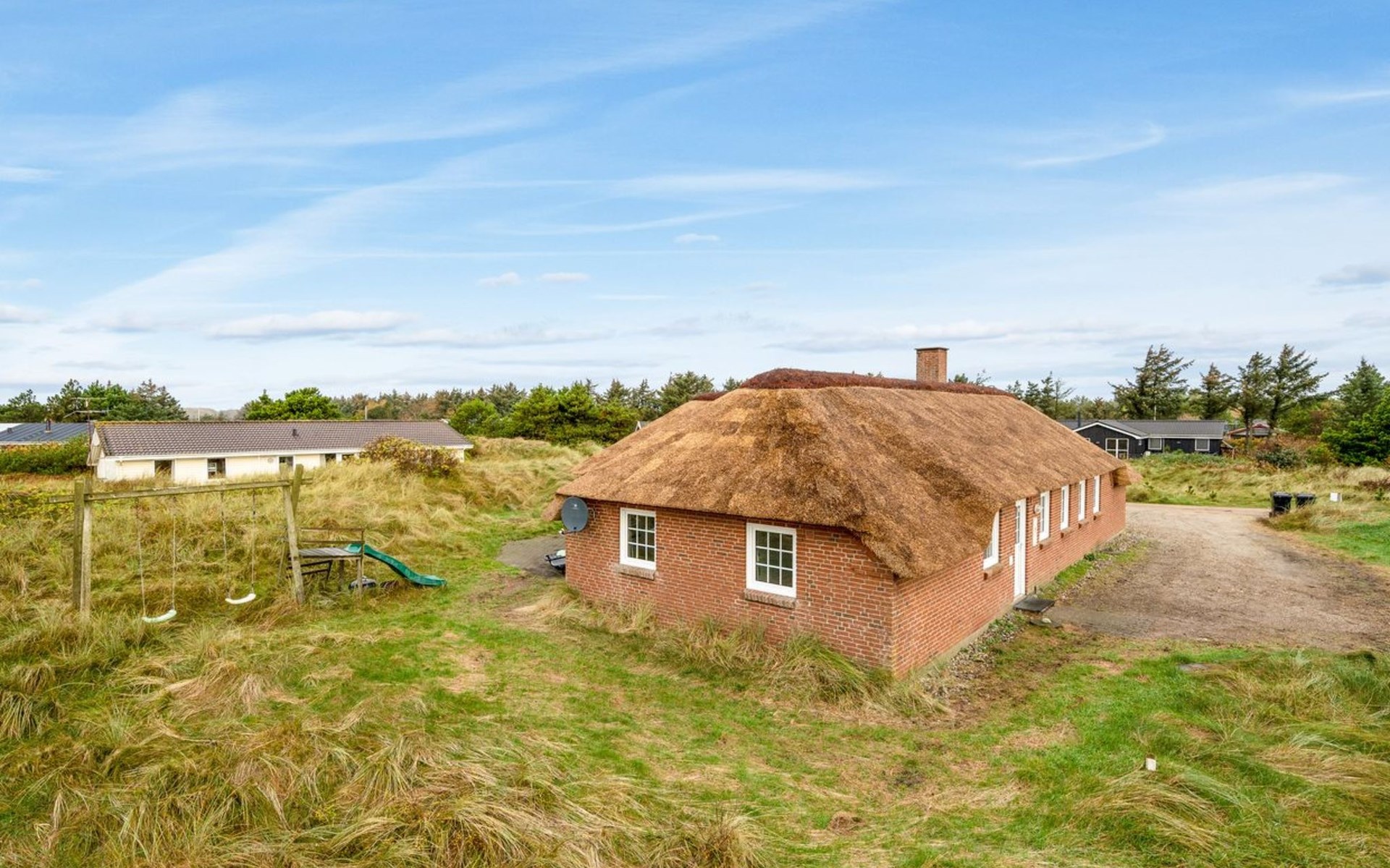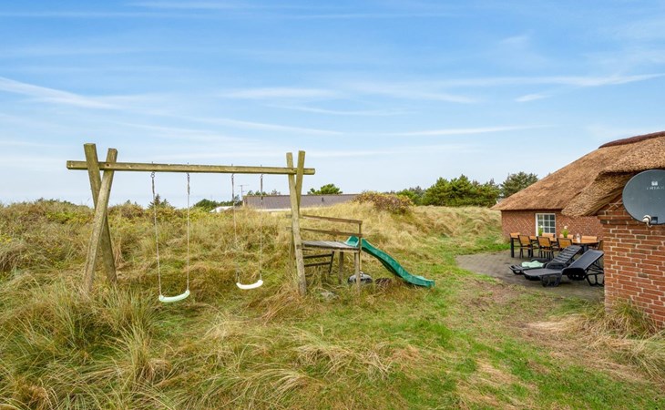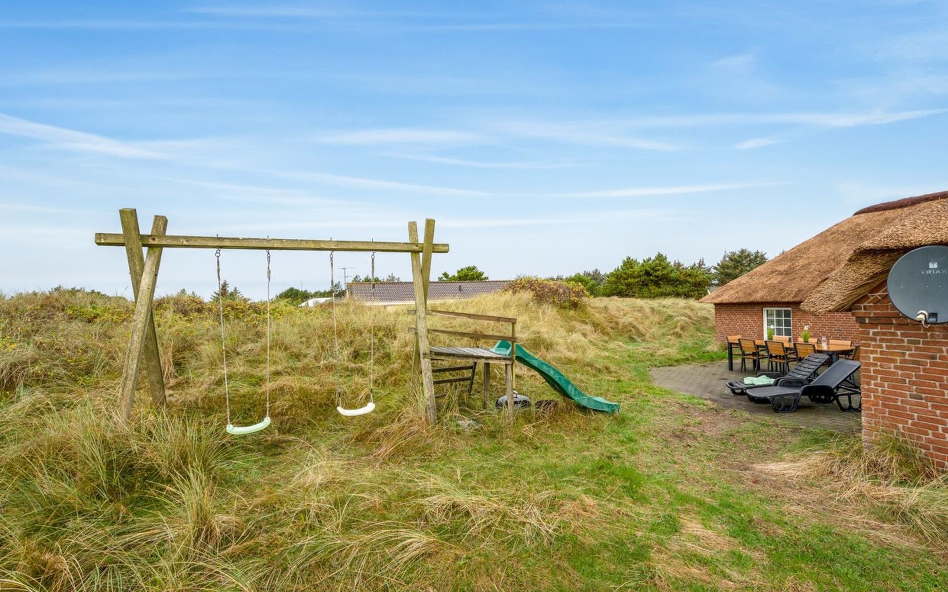 Einfamilienhaus, Baujahr 1994. 800 m vom Meer. Zur Alleinbenutzung: naturbelassenes Grundstück 2'001 m2, Hallenbad (3 x 7 m, 2'4.5 m2, 140 - 140 cm tief). Kinderspielplatz (Schaukel). Im Hause: Sauna, Waschmaschine, Wäschetrockner. Parkplatz beim Haus. Lebensmittelgeschäft 4.5 km. Golfplatz 6 km. Der Besitzer akzeptiert keine Jugendgruppen.
