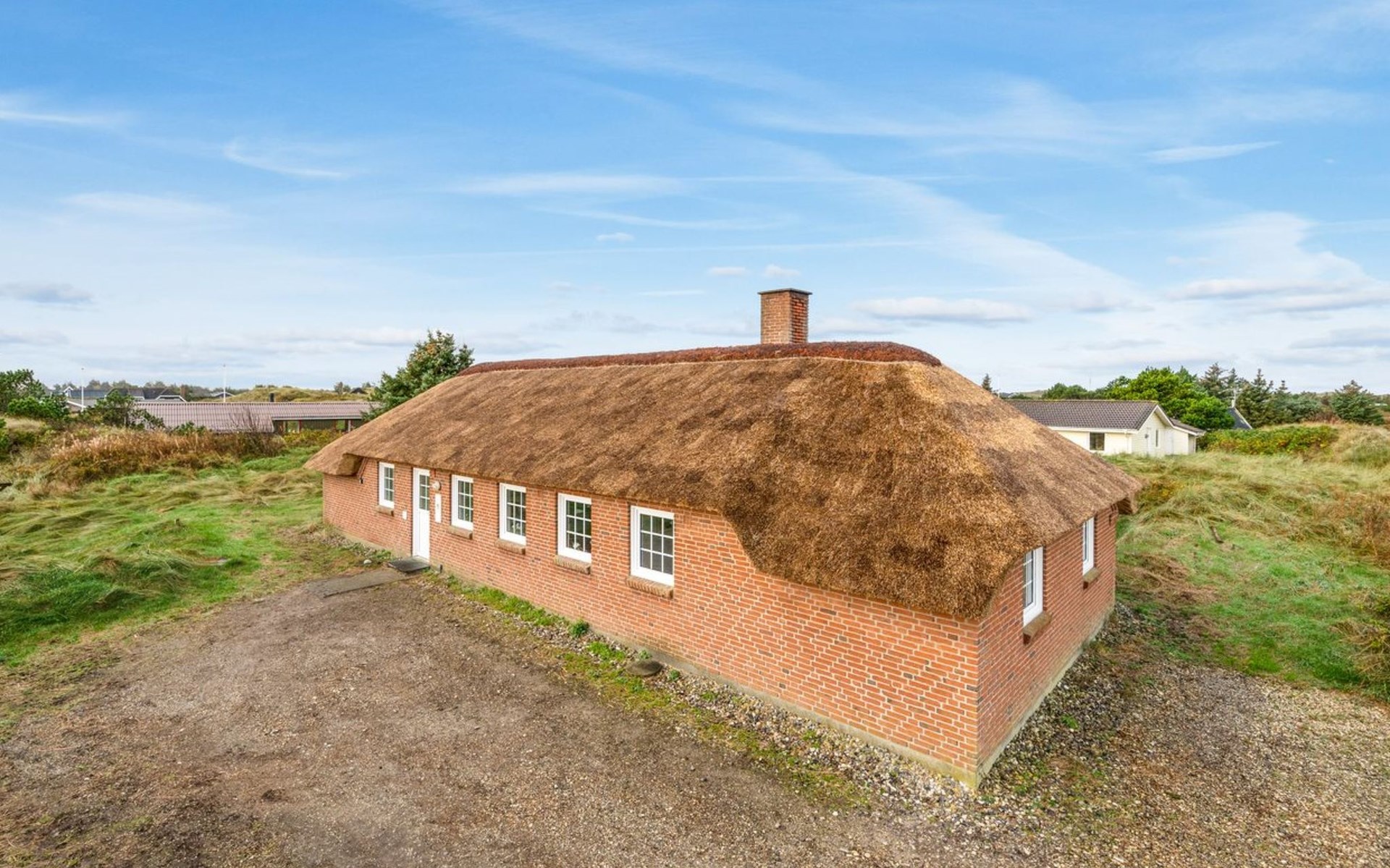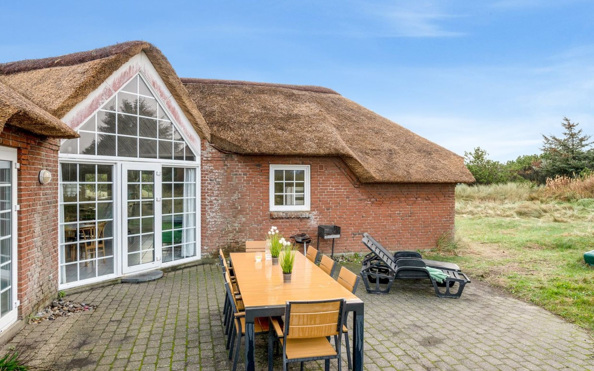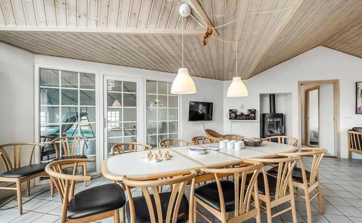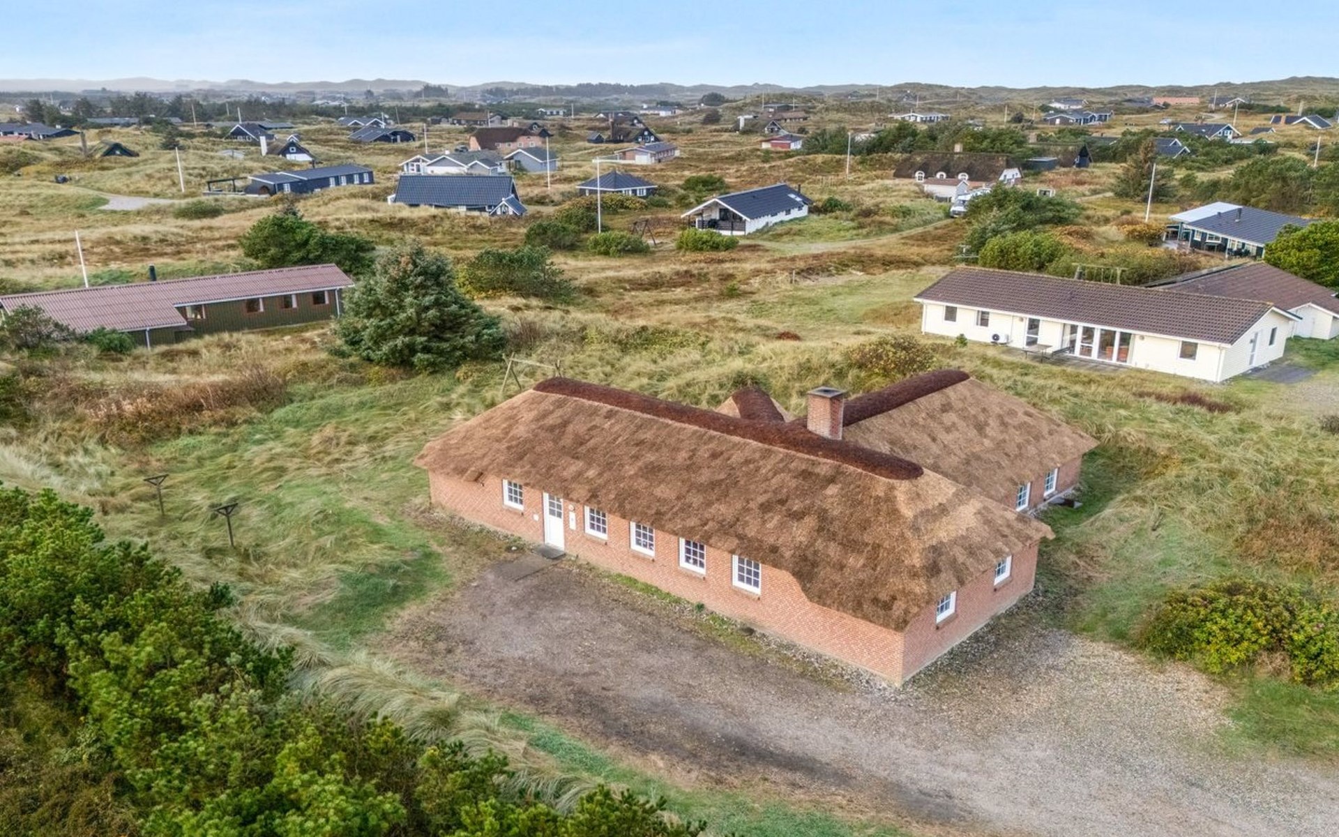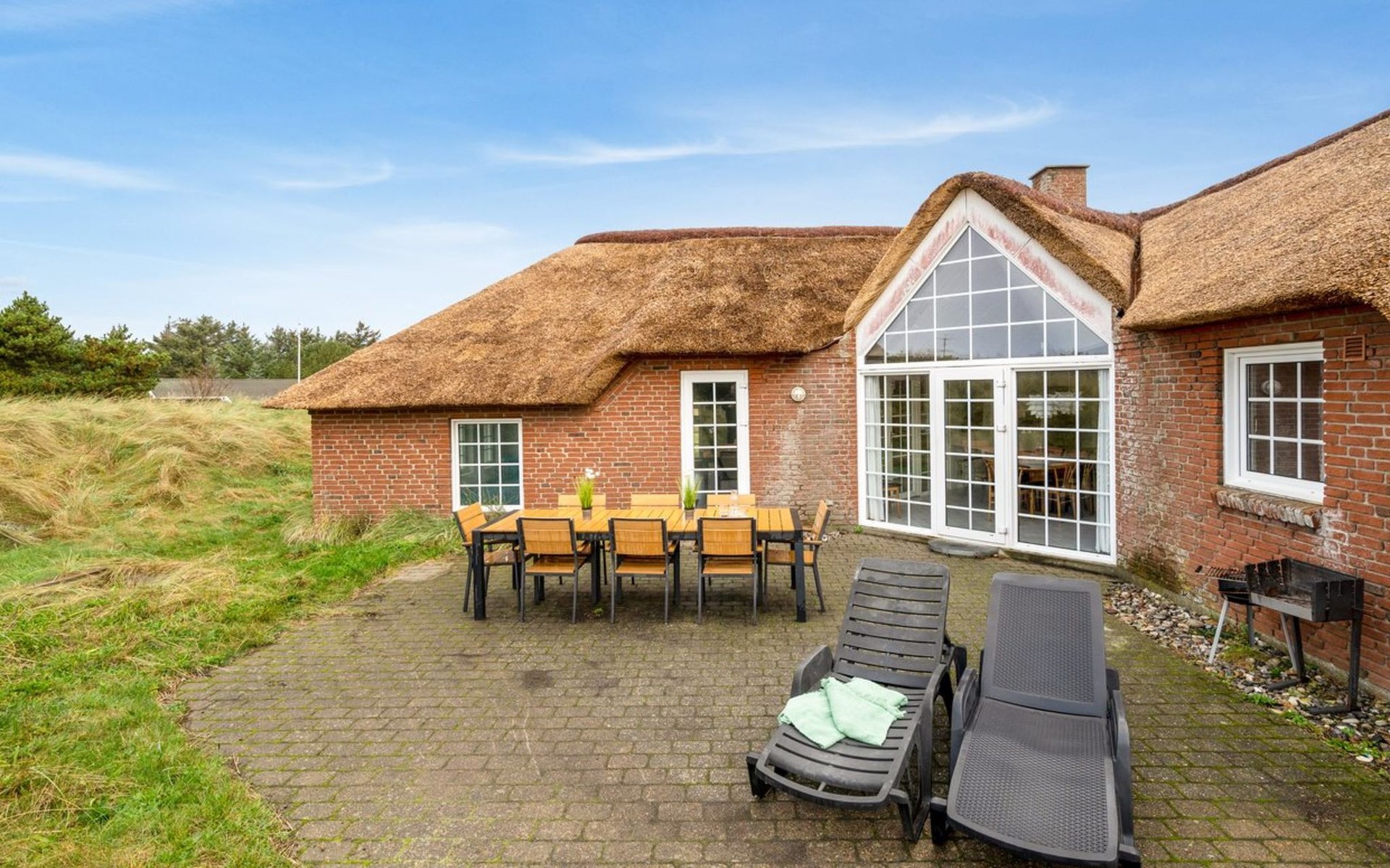 Einfamilienhaus, Baujahr 1994. 800 m vom Meer. Zur Alleinbenutzung: naturbelassenes Grundstück 2'001 m2, Hallenbad (3 x 7 m, 2'4.5 m2, 140 - 140 cm tief). Kinderspielplatz (Schaukel). Im Hause: Sauna, Waschmaschine, Wäschetrockner. Parkplatz beim Haus. Lebensmittelgeschäft 4.5 km. Golfplatz 6 km. Der Besitzer akzeptiert keine Jugendgruppen.