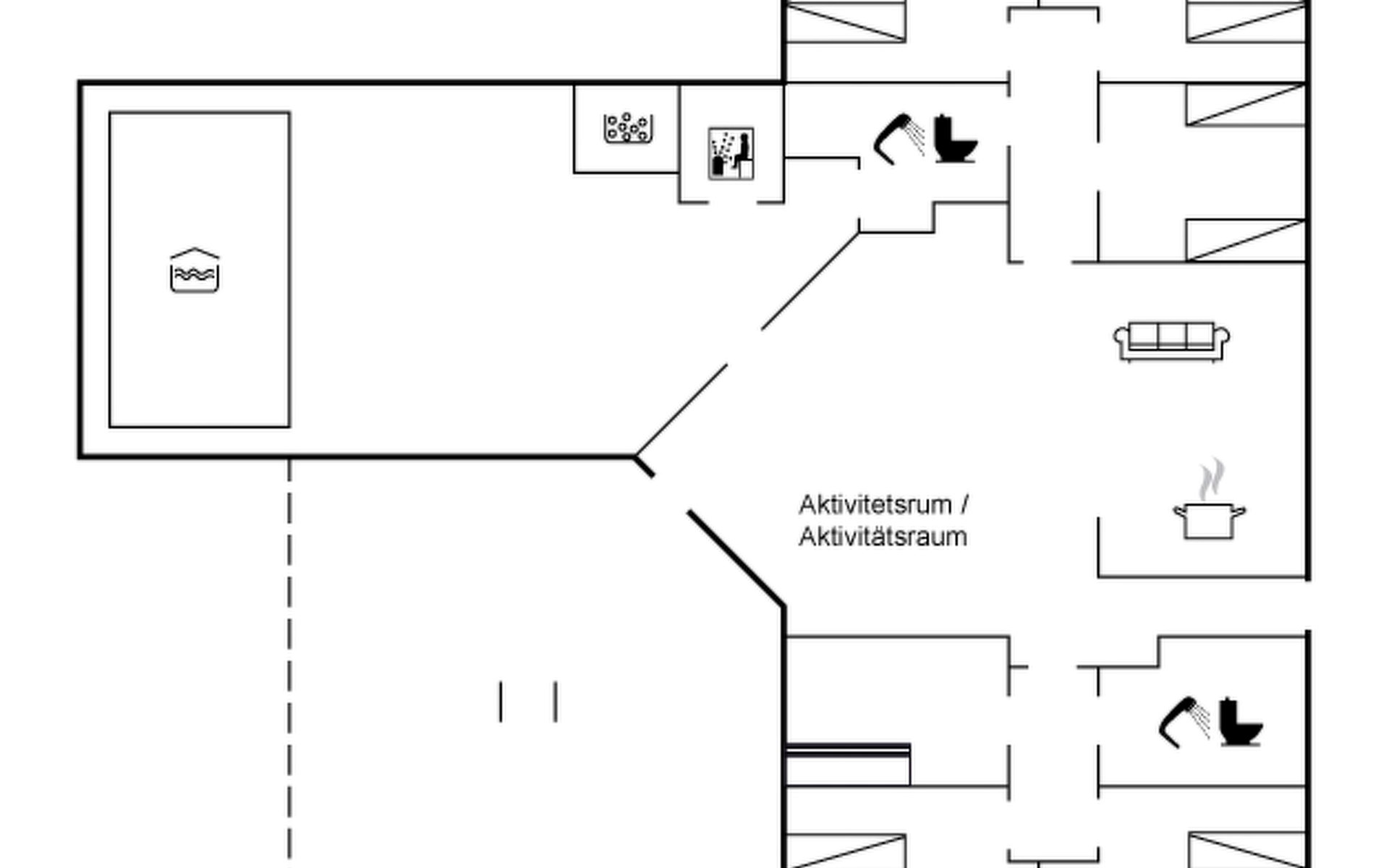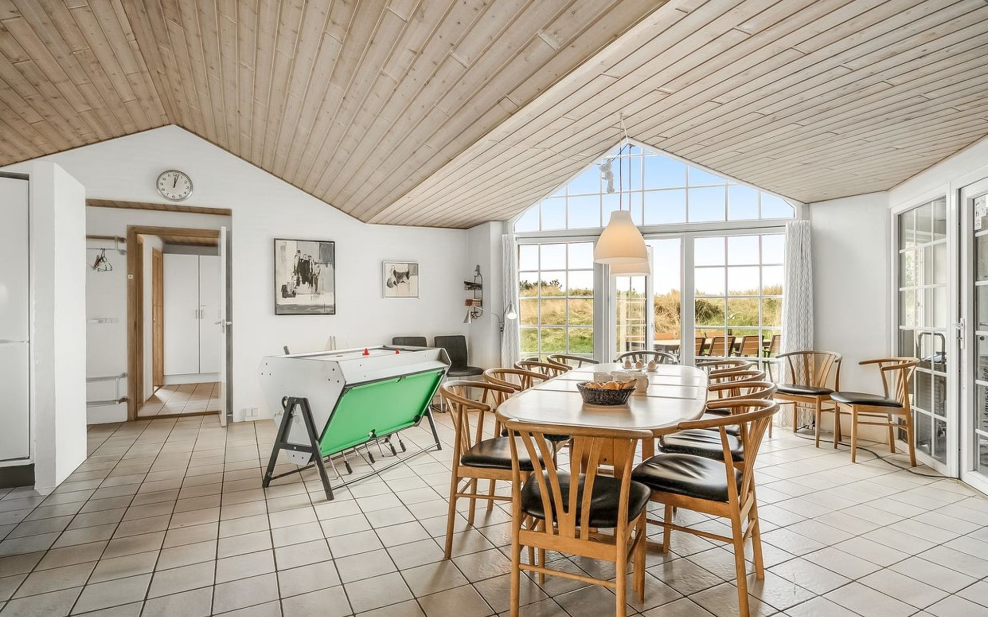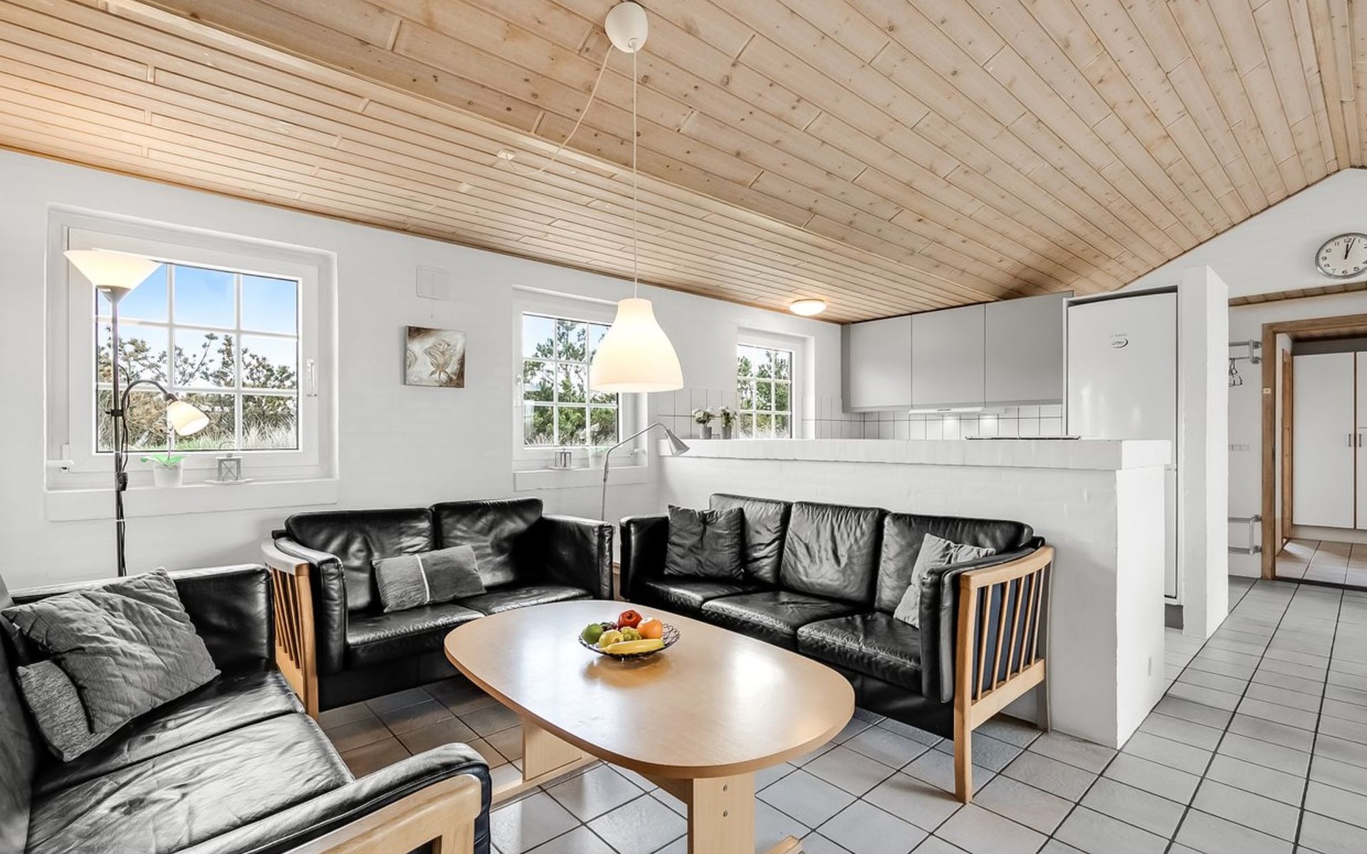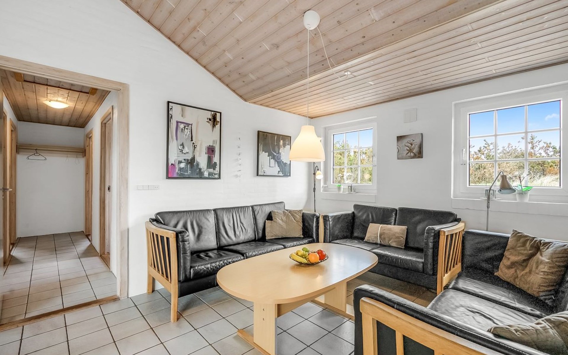 Einfamilienhaus, Baujahr 1994. 800 m vom Meer. Zur Alleinbenutzung: naturbelassenes Grundstück 2'001 m2, Hallenbad (3 x 7 m, 2'4.5 m2, 140 - 140 cm tief). Kinderspielplatz (Schaukel). Im Hause: Sauna, Waschmaschine, Wäschetrockner. Parkplatz beim Haus. Lebensmittelgeschäft 4.5 km. Golfplatz 6 km. Der Besitzer akzeptiert keine Jugendgruppen.