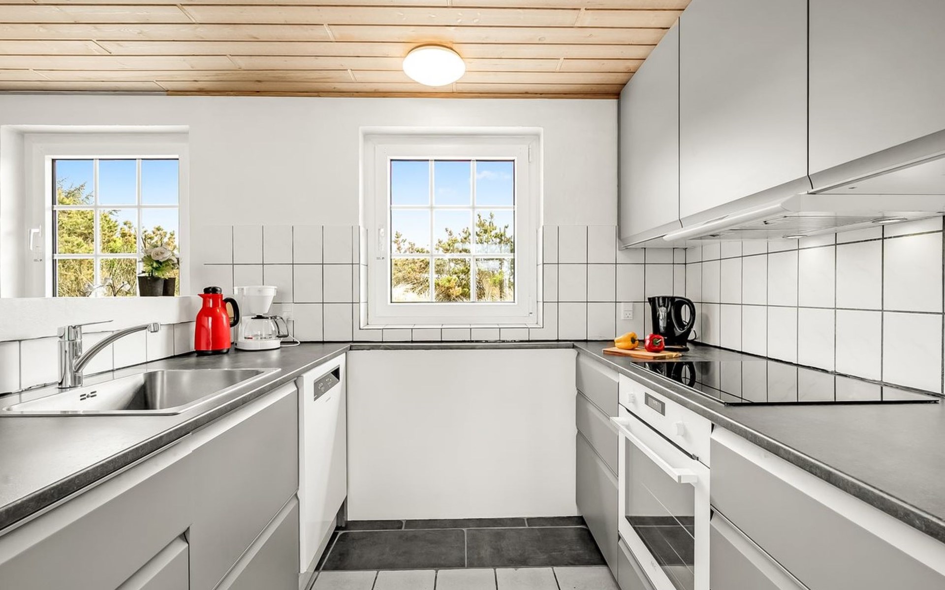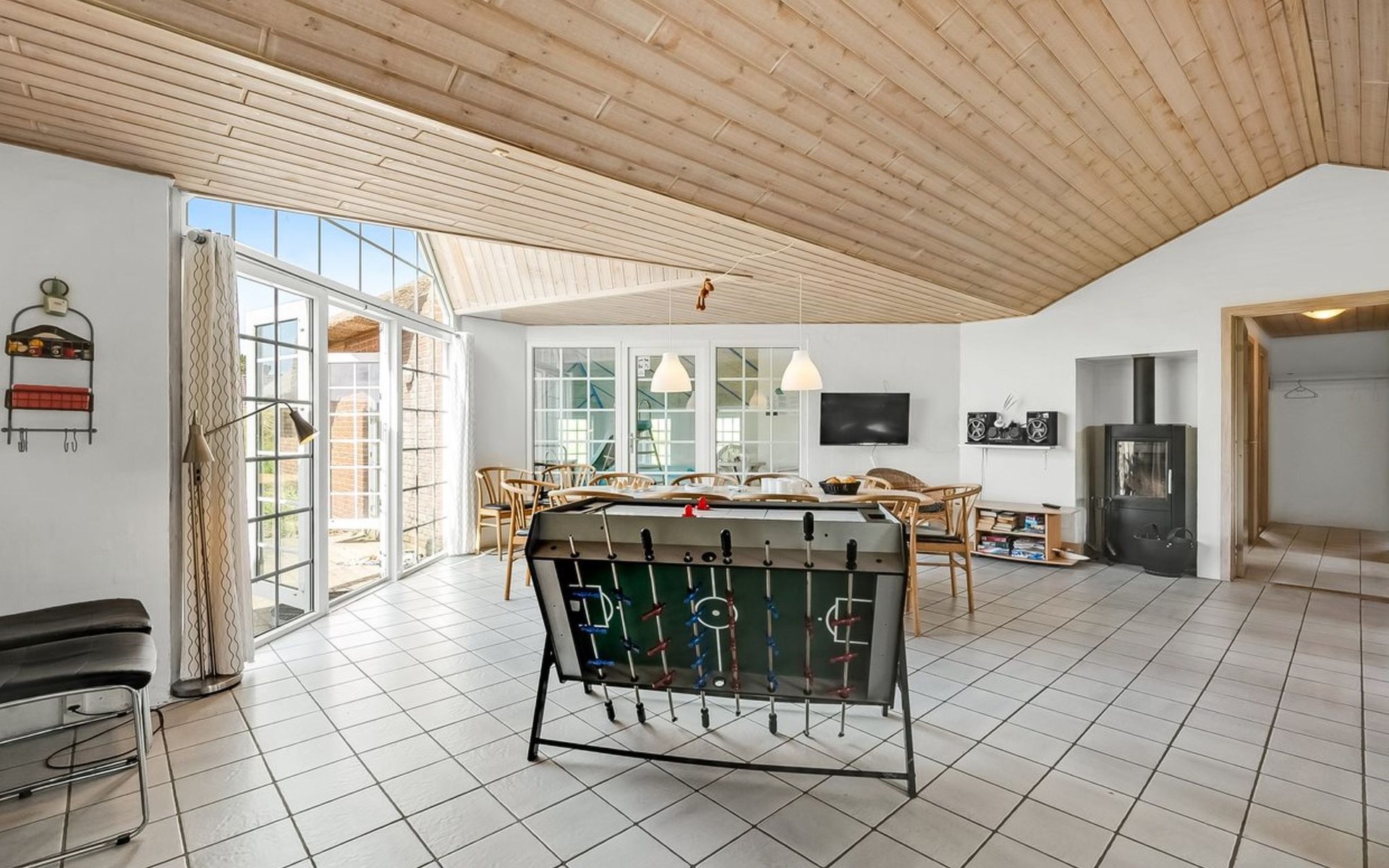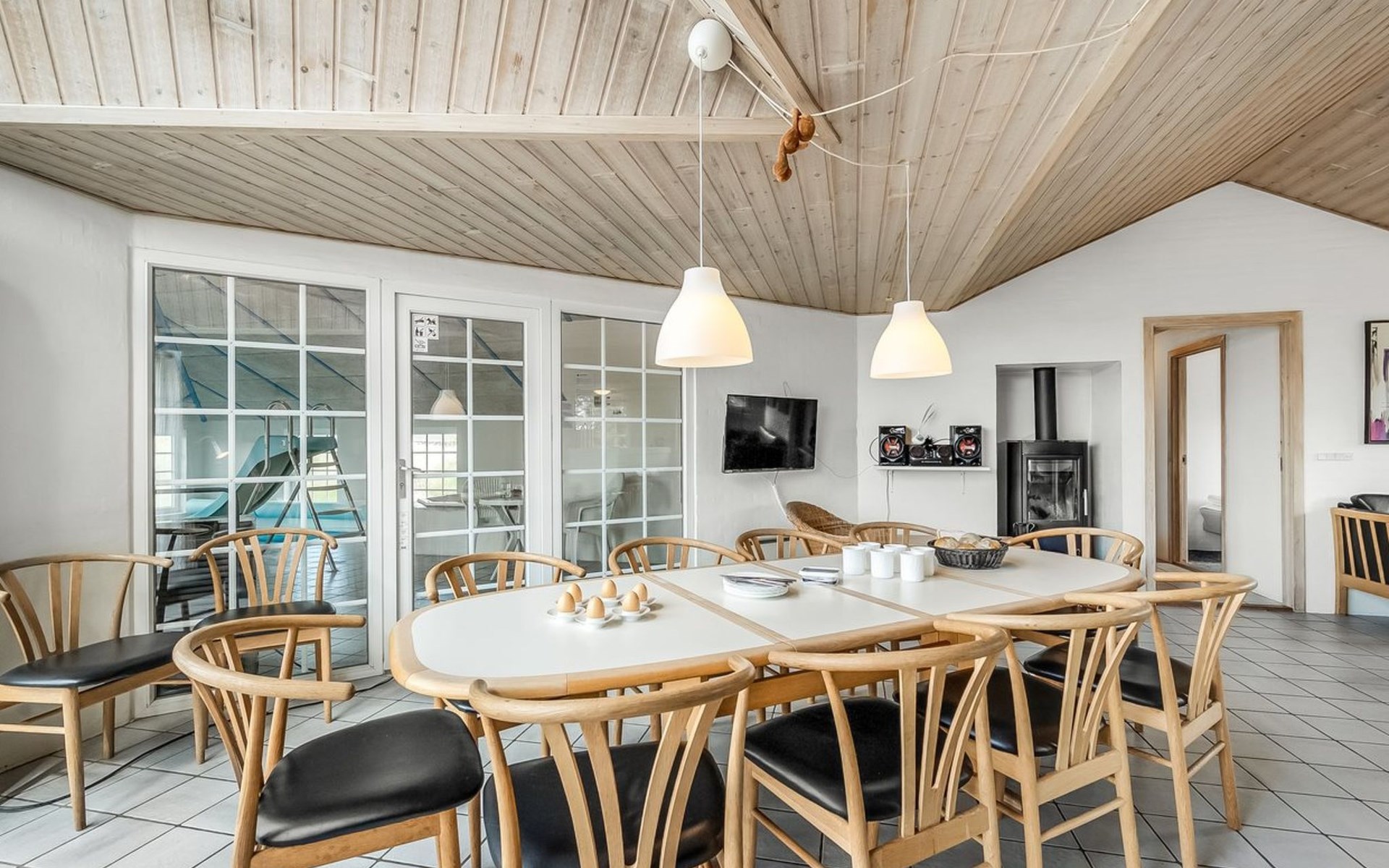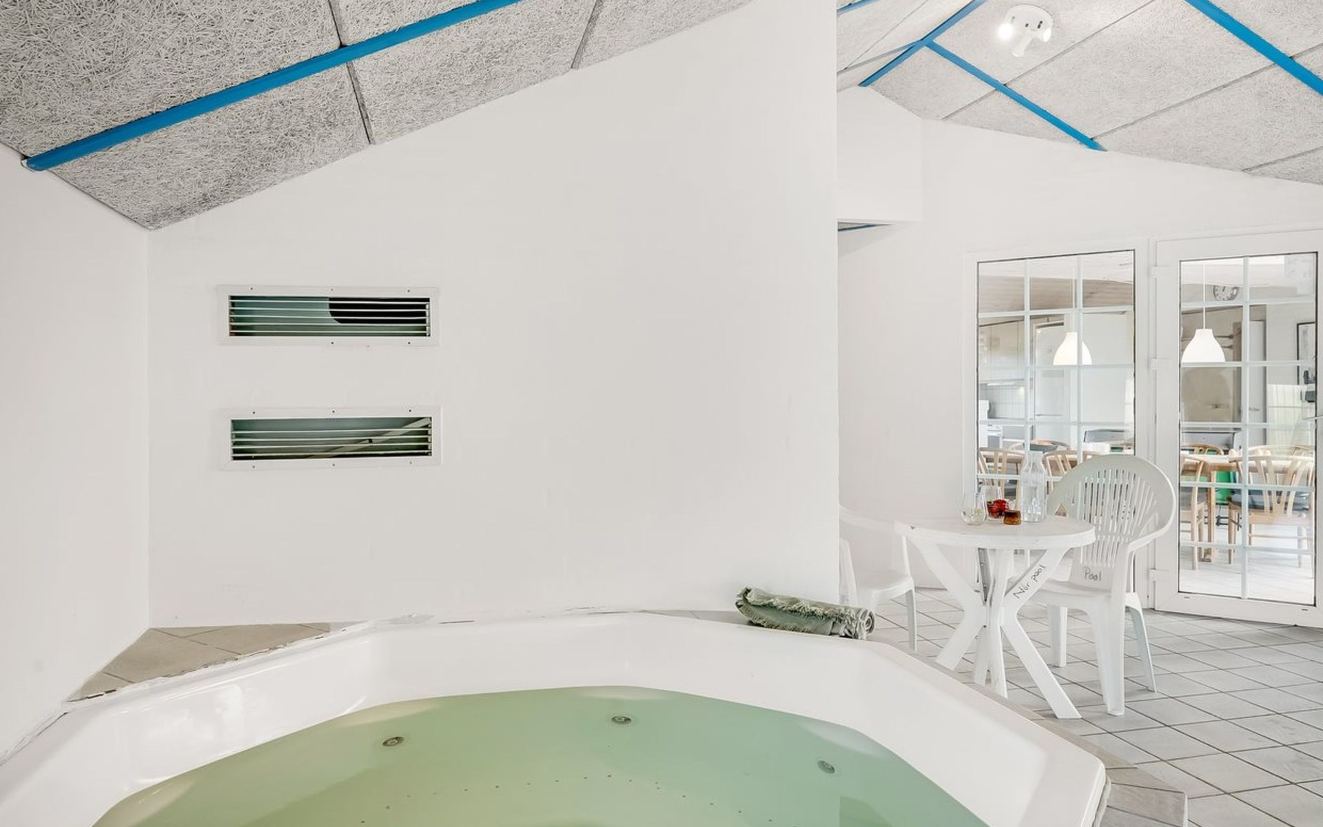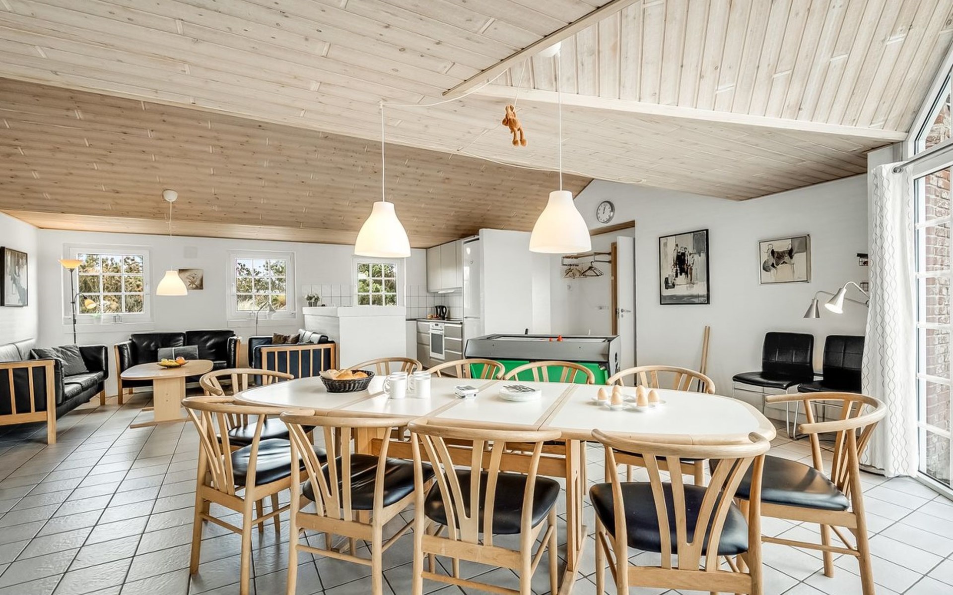Einfamilienhaus, Baujahr 1994. 800 m vom Meer. Zur Alleinbenutzung: naturbelassenes Grundstück 2'001 m2, Hallenbad (3 x 7 m, 2'4.5 m2, 140 - 140 cm tief). Kinderspielplatz (Schaukel). Im Hause: Sauna, Waschmaschine, Wäschetrockner. Parkplatz beim Haus. Lebensmittelgeschäft 4.5 km. Golfplatz 6 km. Der Besitzer akzeptiert keine Jugendgruppen.