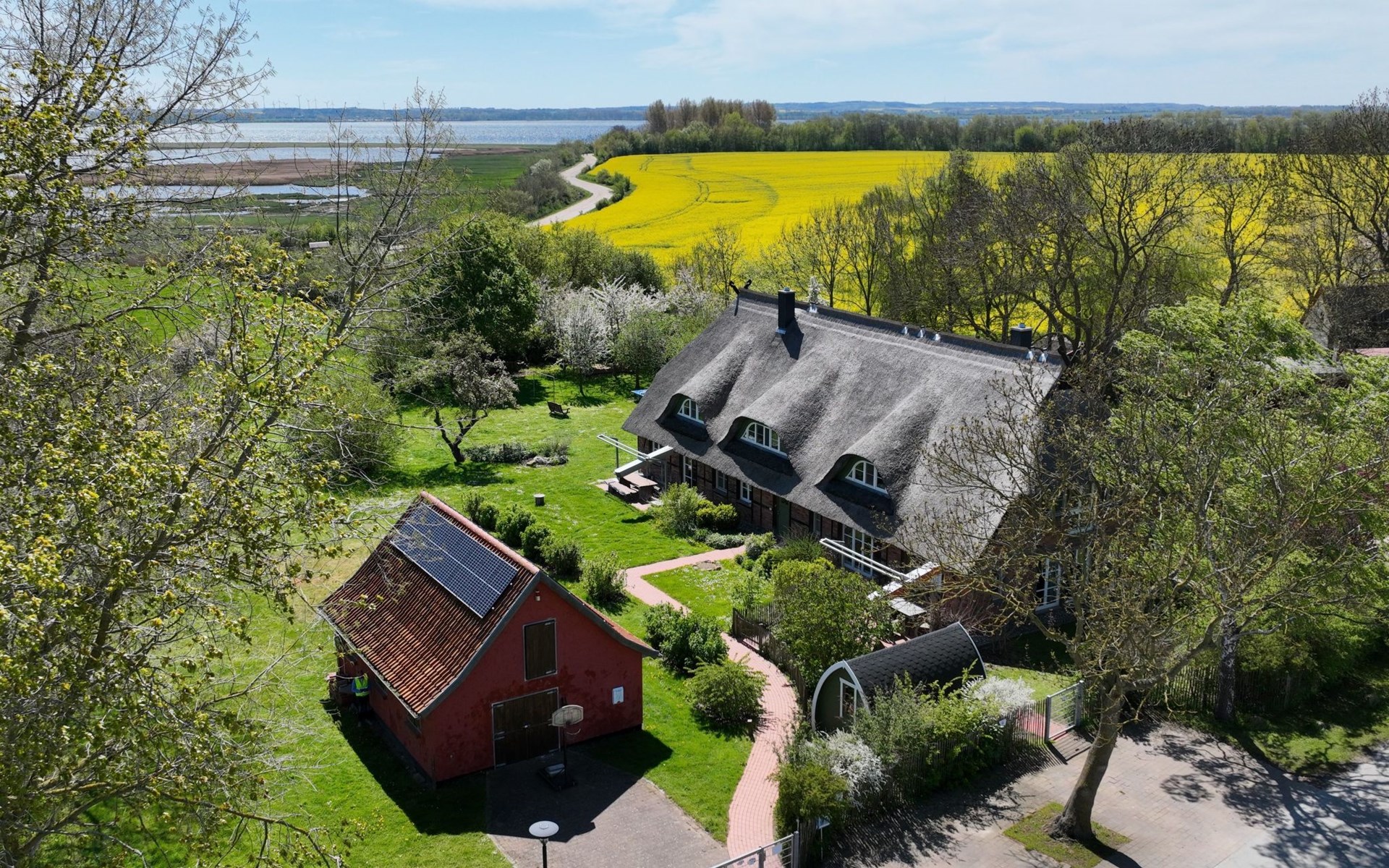Genießen Sie den Seeblick, da wir direkt am Strandzugang liegen und das Grundstück bis ans Wasser reicht. Ein idyllischer Fußweg durch das Naturschutzgebiet führt Sie zum Strand, nur ca. 800 m entfernt. Entspannung und Erholung sind hier garantiert.
