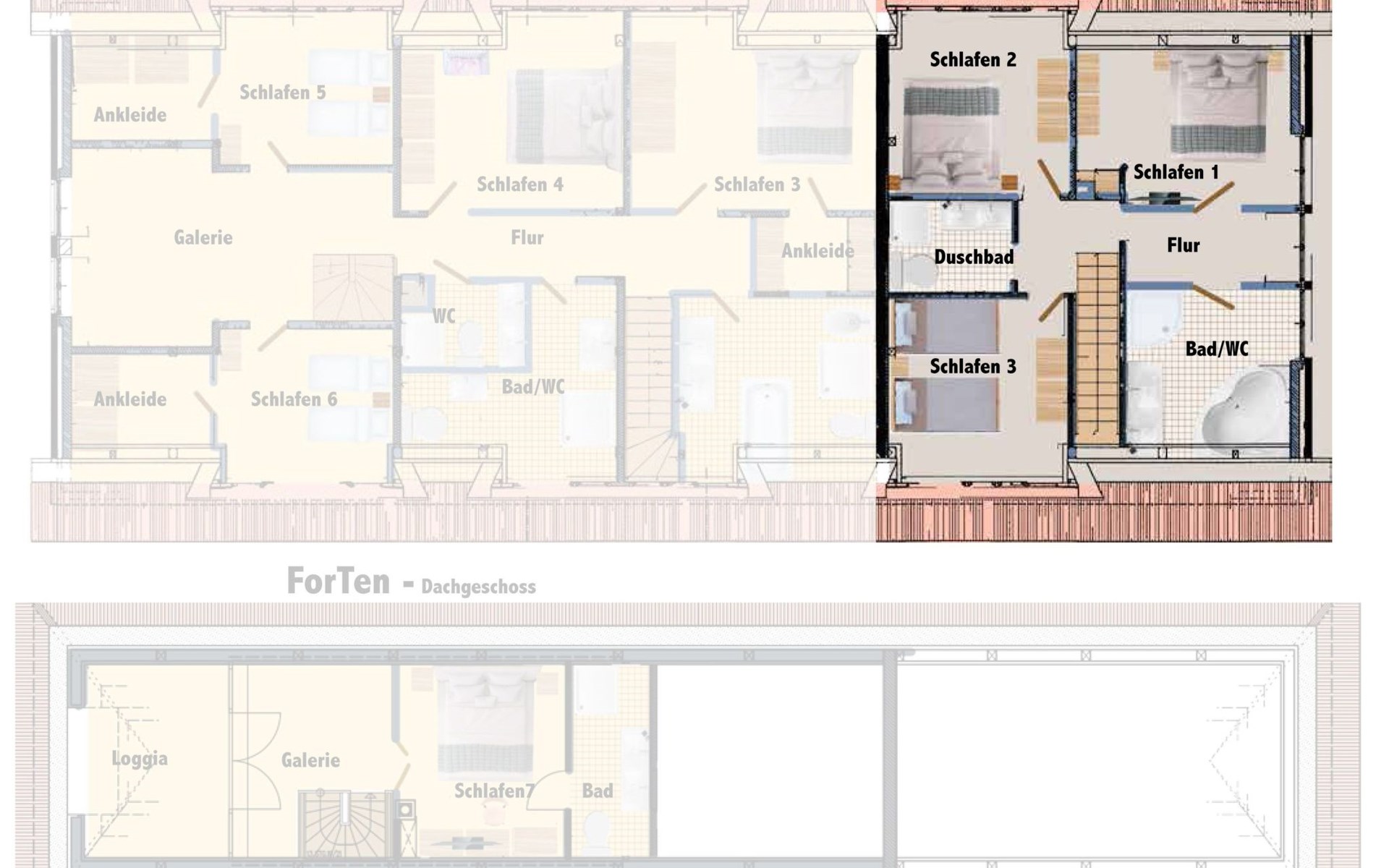 - Doppelbett (1,80m Breite)