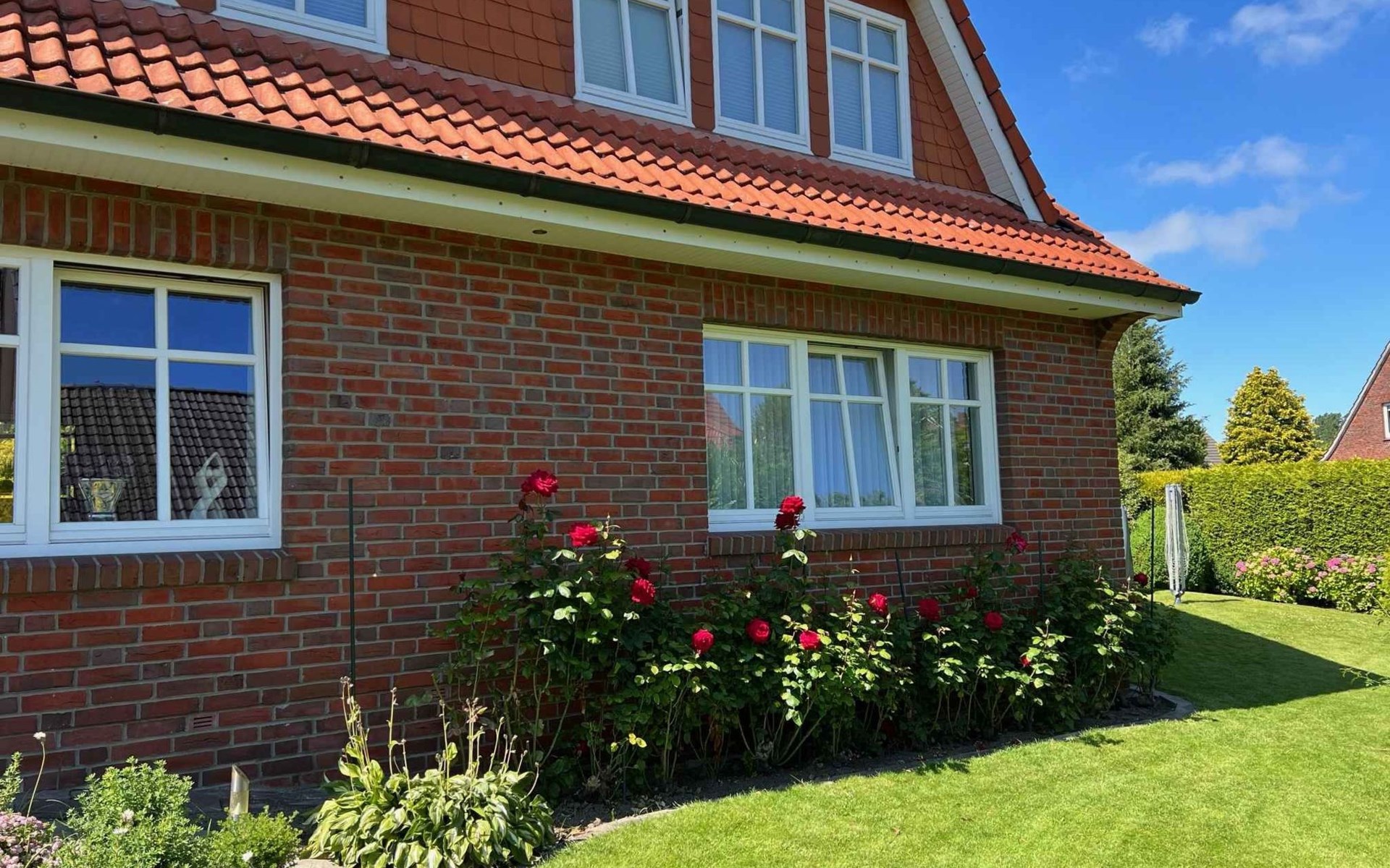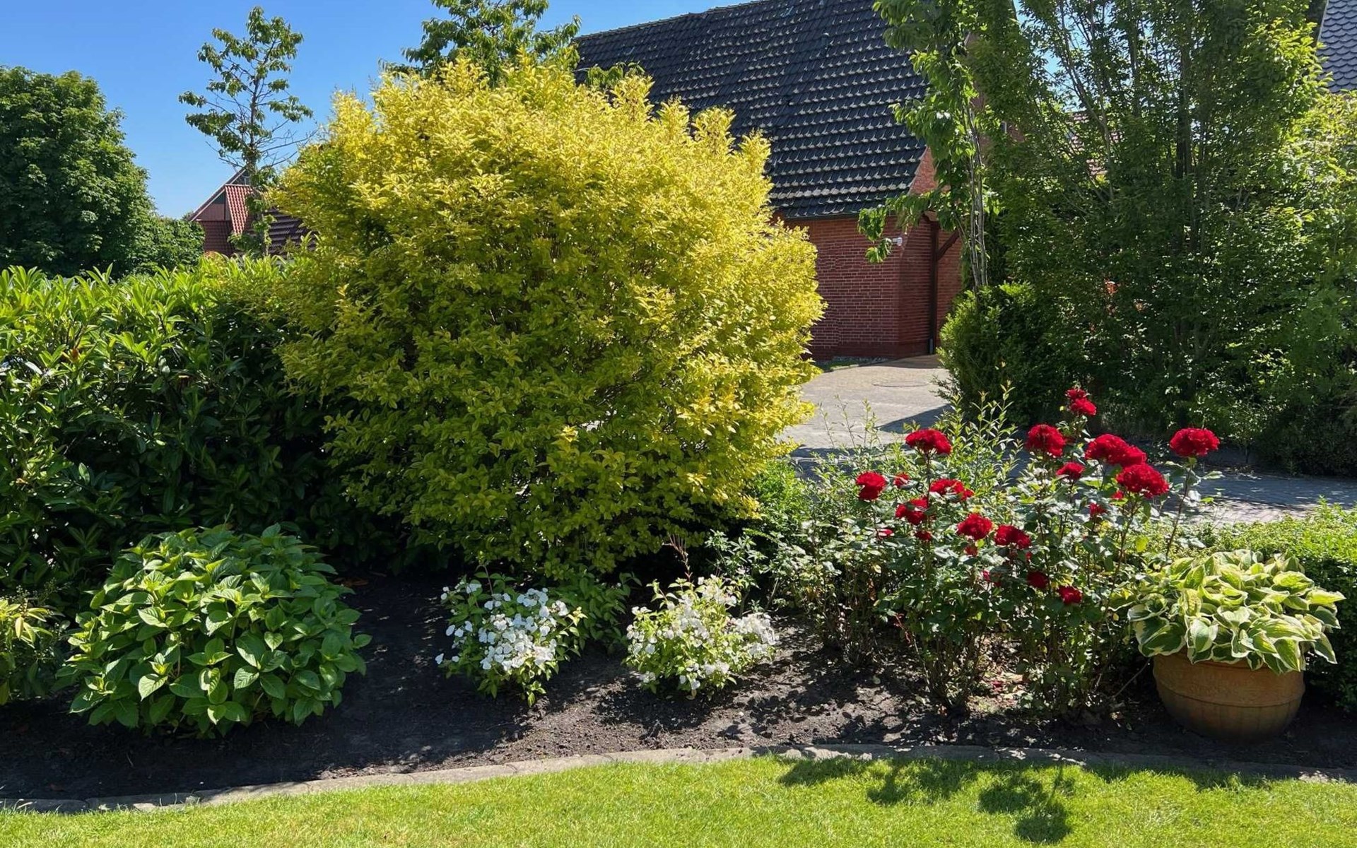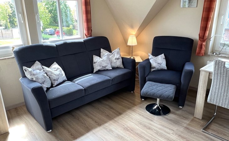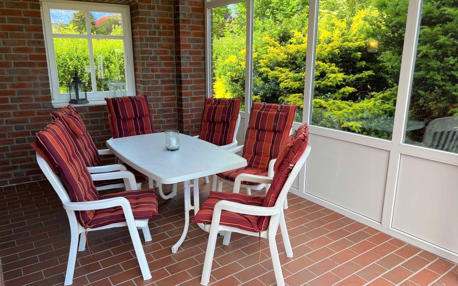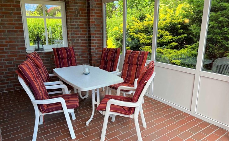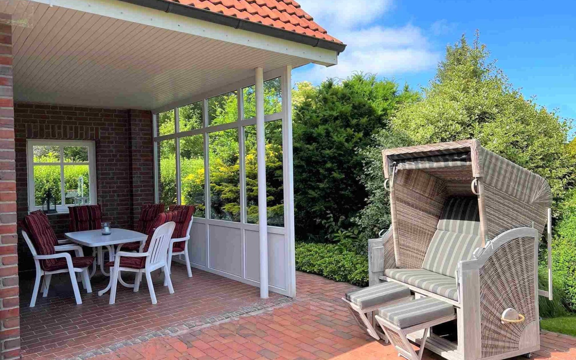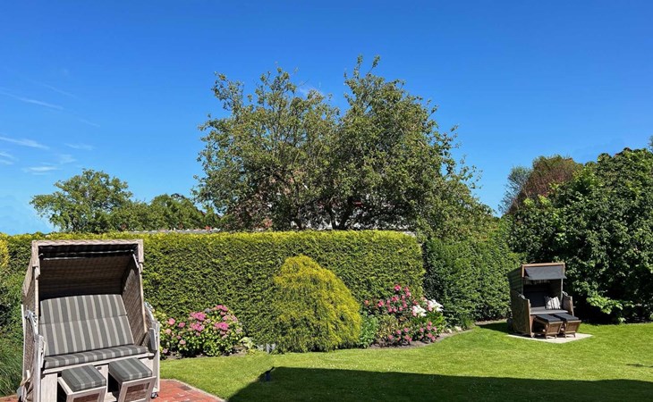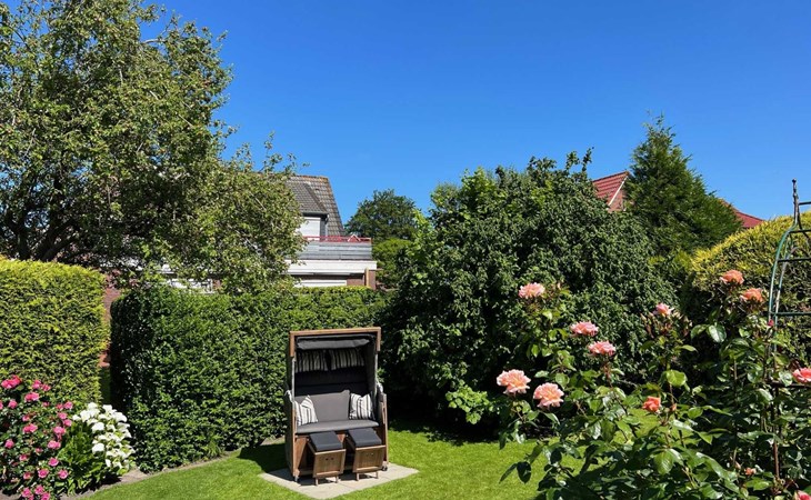 Der Außenbereich der Ferienwohnung lädt mit einem zur gemeinschaftlichen Nutzung bestimmten Garten mit überdachten Freisitzen und Strandkörben zum Verweilen im Freien ein. Der E-Bike-Fahrradabstellplatz in der Garage bietet zudem die Möglichkeit, mitgebrachte oder geliehene Fahrräder sicher und trocken zu parken. So steht auch einer Erkundungstour auf zwei Rädern nichts im Wege.
