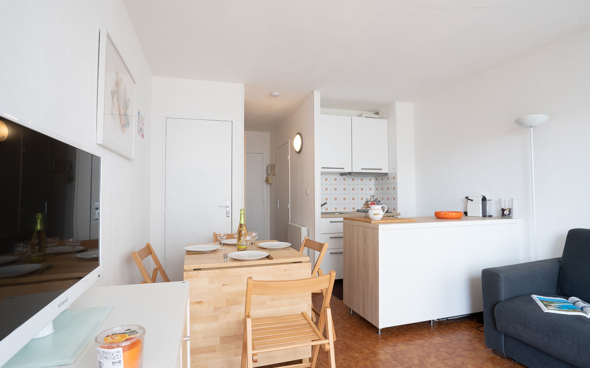 Residenz "Saint Patrick", auf 2 Stockwerken. Im Ortsteil Boucanet, 2 km vom Zentrum von Grau Du Roi, vom Meer, 500 m vom Strand. Parkplatz. Einkaufsgeschäft 550 m, Einkaufszentrum 1 km, Restaurant 500 m, Freibad 3 km, Thermalbad "Thalazur Les Bains de Camargue" 9 km. Reitstall 1 km. Nahe gelegene Sehenswürdigkeiten: Seaquarium 4.2 km, Casino Flamingo 4.4 km, Aigues Mortes 5 km, La Grande Motte 3.9 km, Les Saintes-Marie-De-La-Mer 38 km, Nîmes 52 km. Wandergebiete: Réserve Naturelle de Camargue. Bitte beachten: Fahrzeug empfohlen. Die Schlüsselübergabe findet bei der Agentur Interhome in Port Camargue statt, 5 km. Flugplatz 25 km vom Haus.