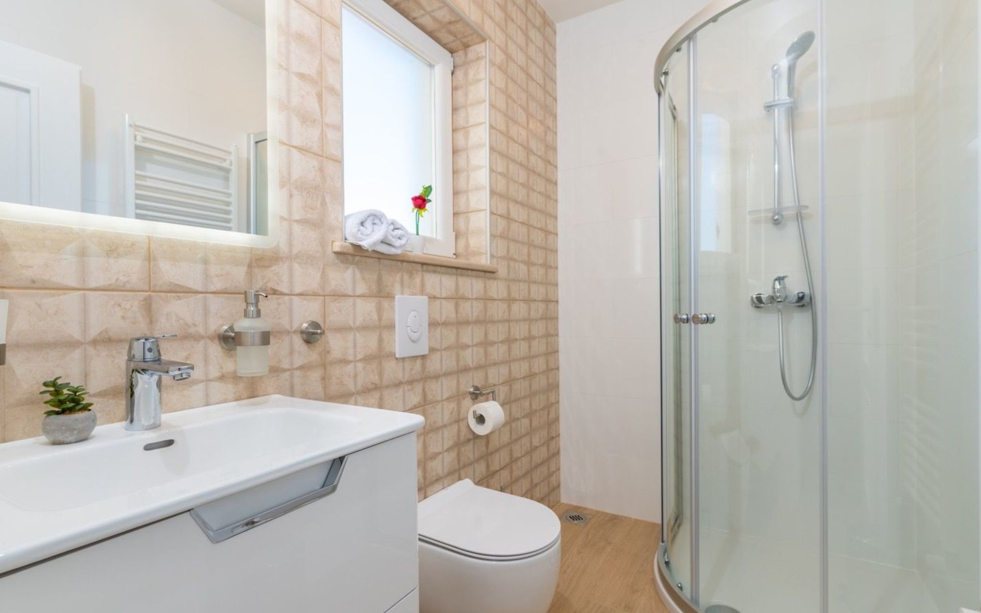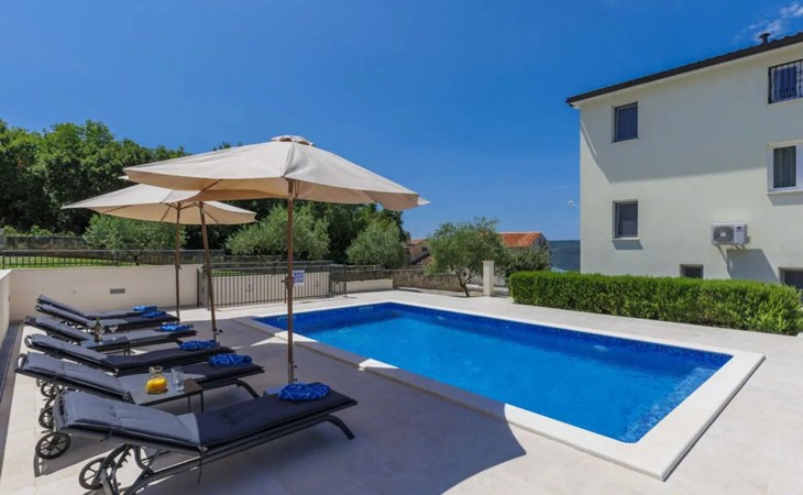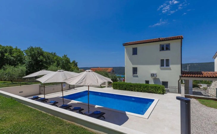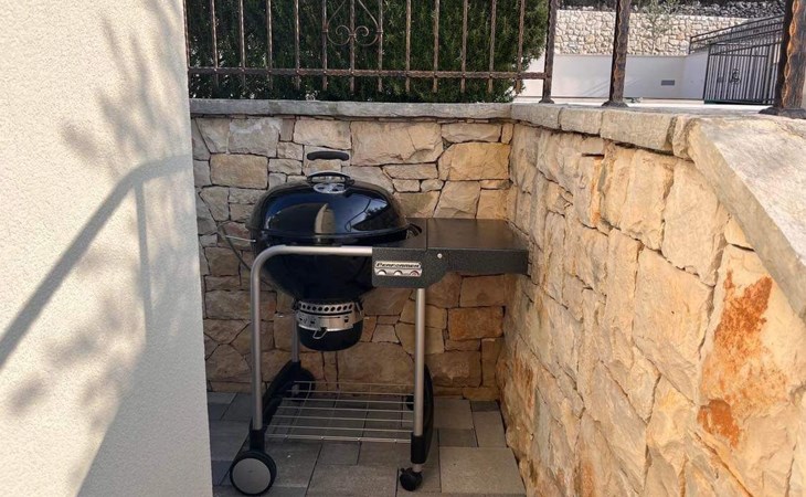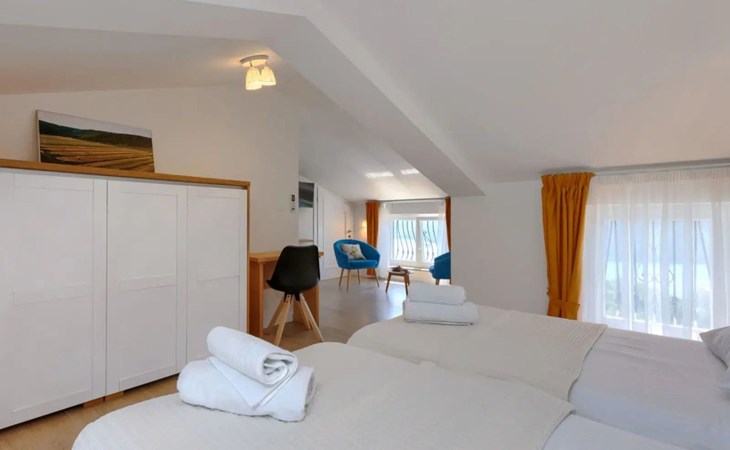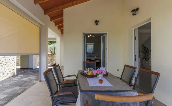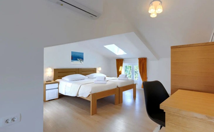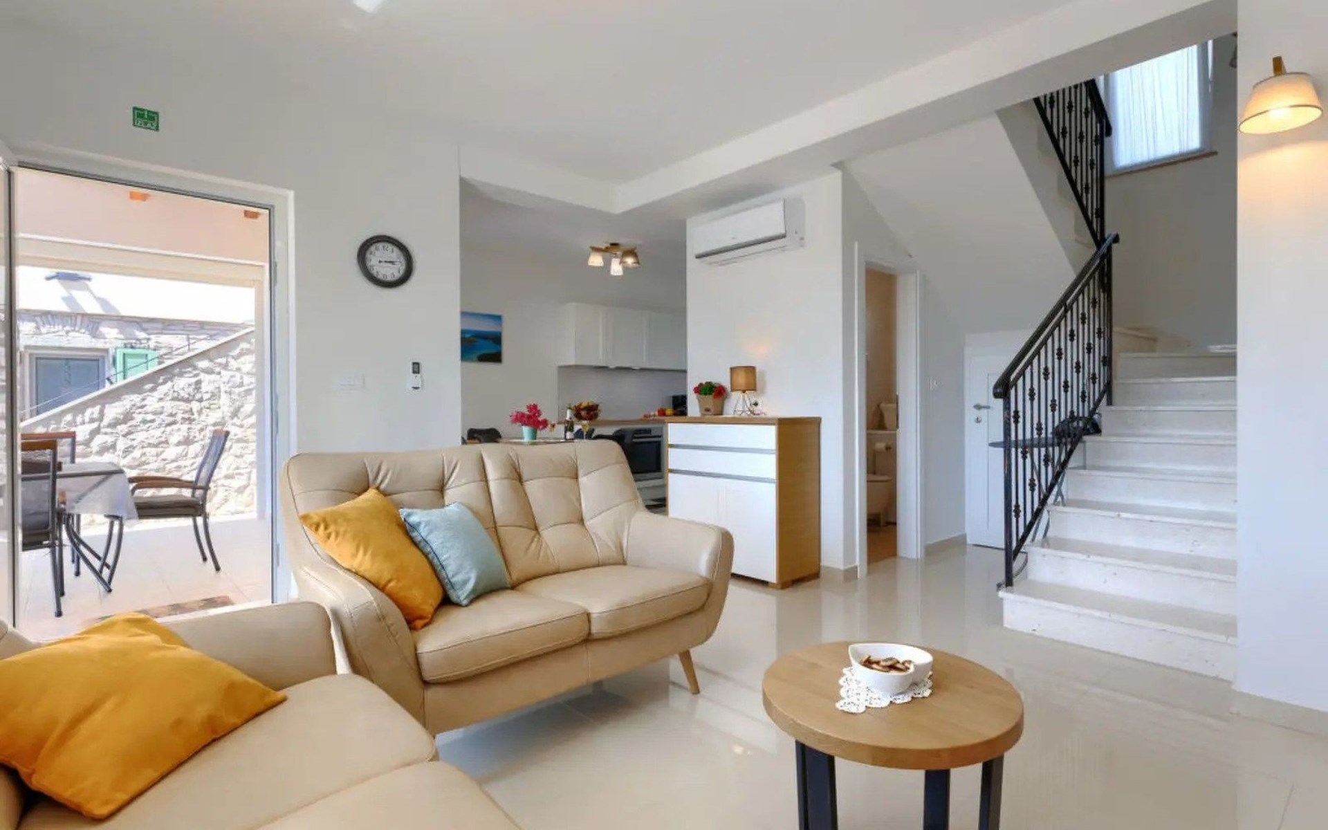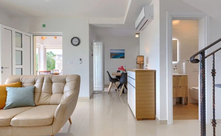 Das 130 m² große Haus ist ideal für Familien oder Freunde, die ihren Urlaub gemeinsam verbringen möchten, ohne auf Privatsphäre verzichten zu müssen. Das Wohnzimmer verfügt über Kabel-/Satellitenfernsehen und eine Klimaanlage. Es gibt zwei Schlafzimmer mit je einem Doppelbett und ein Schlafzimmer mit zwei Einzelbetten. Alle Schlafzimmer sind mit einem Kleiderschrank, Klimaanlage und Satellitenfernsehen ausgestattet, Bettwäsche wird gestellt. Die Küche ist mit Herd, Backofen, Toaster, Wasserkocher, Kaffeemaschine, Geschirrspüler, Kühlschrank und Gefrierschrank ausgestattet. Das erste Badezimmer hat eine Dusche, Toilette, Bidet, Handtücher und ein Waschbecken, das zweite hat eine Dusche, Toilette, Handtücher und ein Waschbecken, das dritte hat eine Toilette, Dusche, Bidet, Handtücher und ein Waschbecken. Das vierte hat ein Waschbecken, eine Toilette und eine Waschmaschine.