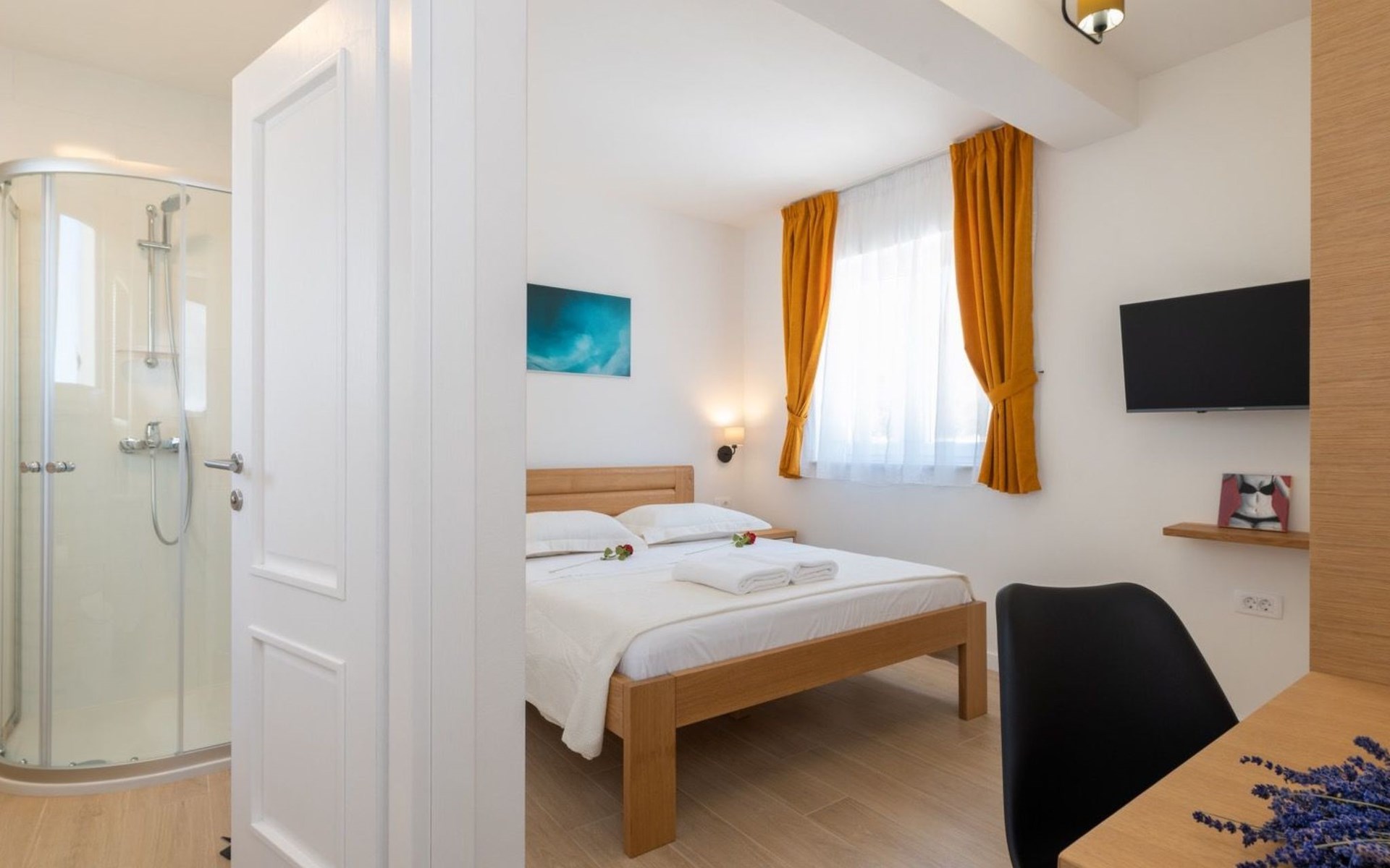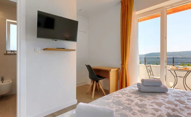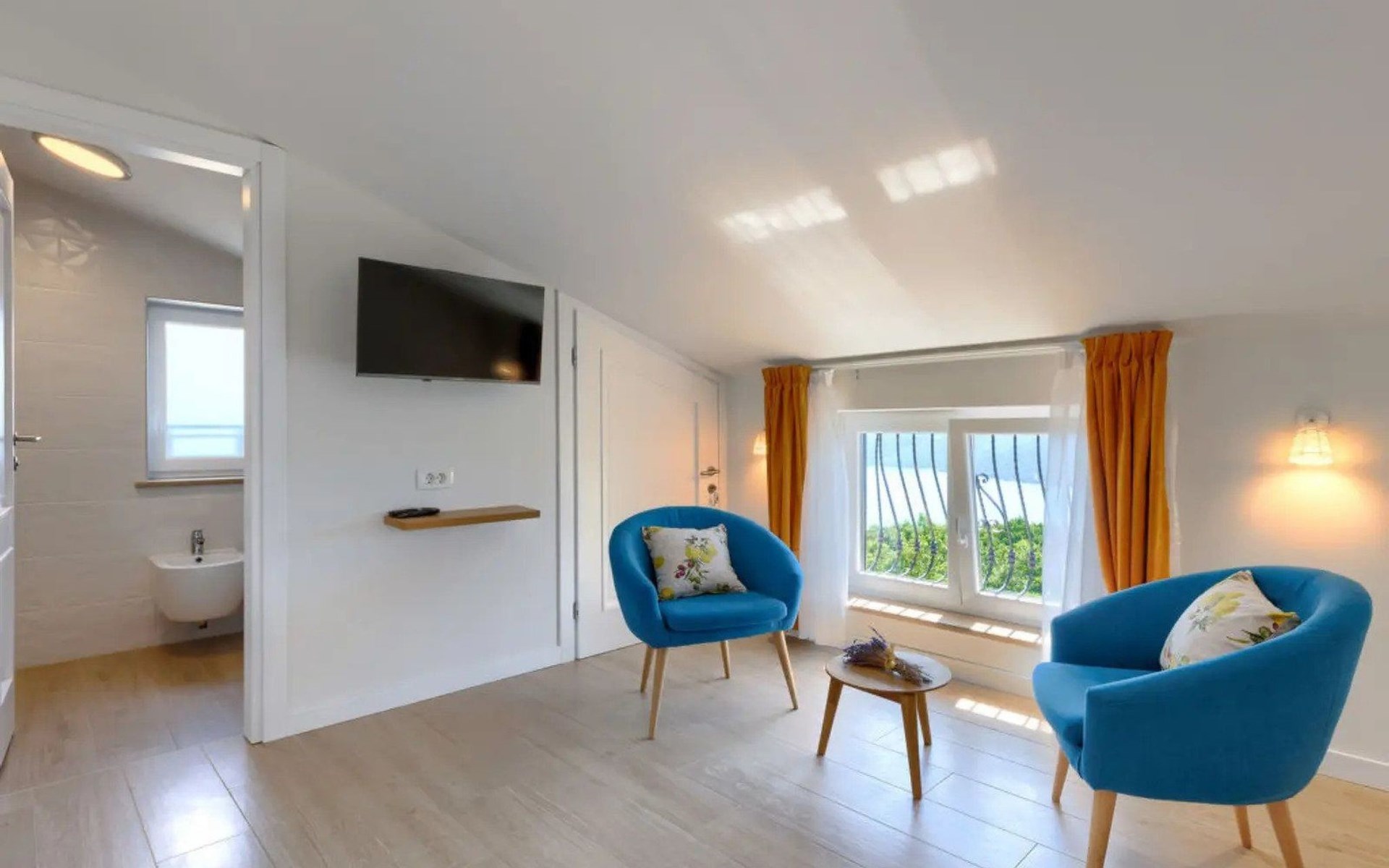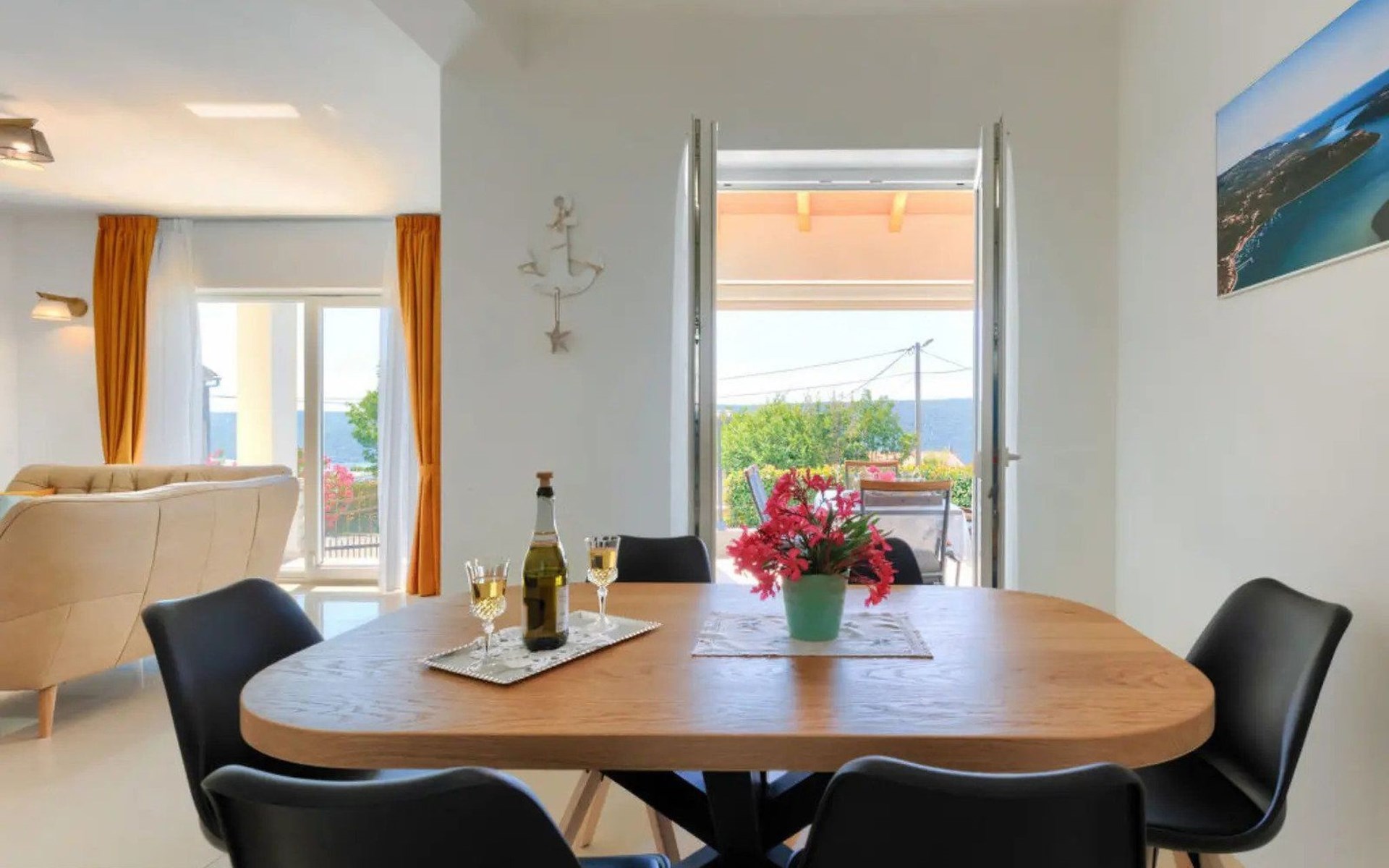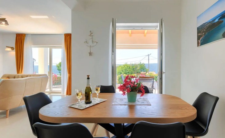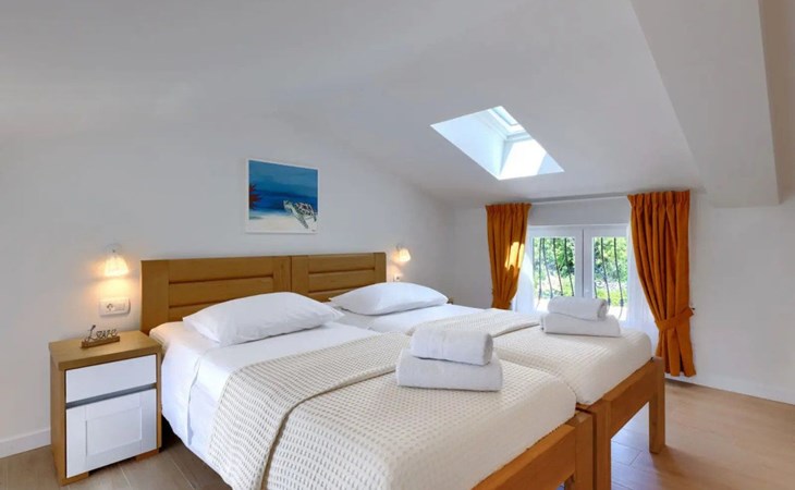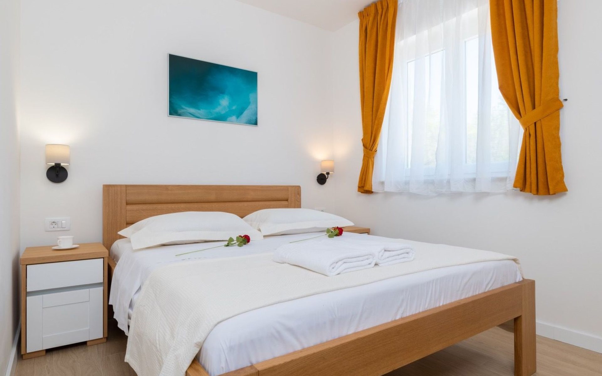Das 130 m² große Haus ist ideal für Familien oder Freunde, die ihren Urlaub gemeinsam verbringen möchten, ohne auf Privatsphäre verzichten zu müssen. Das Wohnzimmer verfügt über Kabel-/Satellitenfernsehen und eine Klimaanlage. Es gibt zwei Schlafzimmer mit je einem Doppelbett und ein Schlafzimmer mit zwei Einzelbetten. Alle Schlafzimmer sind mit einem Kleiderschrank, Klimaanlage und Satellitenfernsehen ausgestattet, Bettwäsche wird gestellt. Die Küche ist mit Herd, Backofen, Toaster, Wasserkocher, Kaffeemaschine, Geschirrspüler, Kühlschrank und Gefrierschrank ausgestattet. Das erste Badezimmer hat eine Dusche, Toilette, Bidet, Handtücher und ein Waschbecken, das zweite hat eine Dusche, Toilette, Handtücher und ein Waschbecken, das dritte hat eine Toilette, Dusche, Bidet, Handtücher und ein Waschbecken. Das vierte hat ein Waschbecken, eine Toilette und eine Waschmaschine.