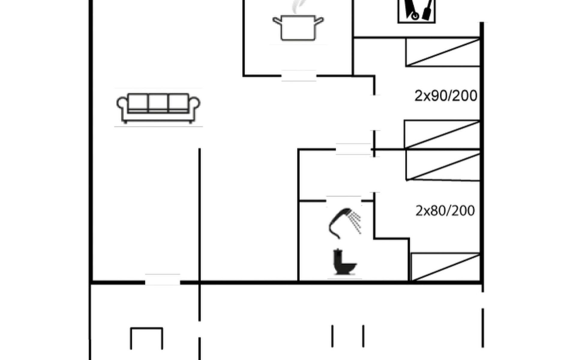 Einfamilienhaus, Baujahr 1967. 300 m vom Meer. Zur Alleinbenutzung: naturbelassenes Grundstück 1'000 m2. Terrasse (20 m2), Kinderspielplatz (Schaukel). Im Hause: Waschmaschine. Parkplatz beim Haus. Lebensmittelgeschäft 1.2 km.