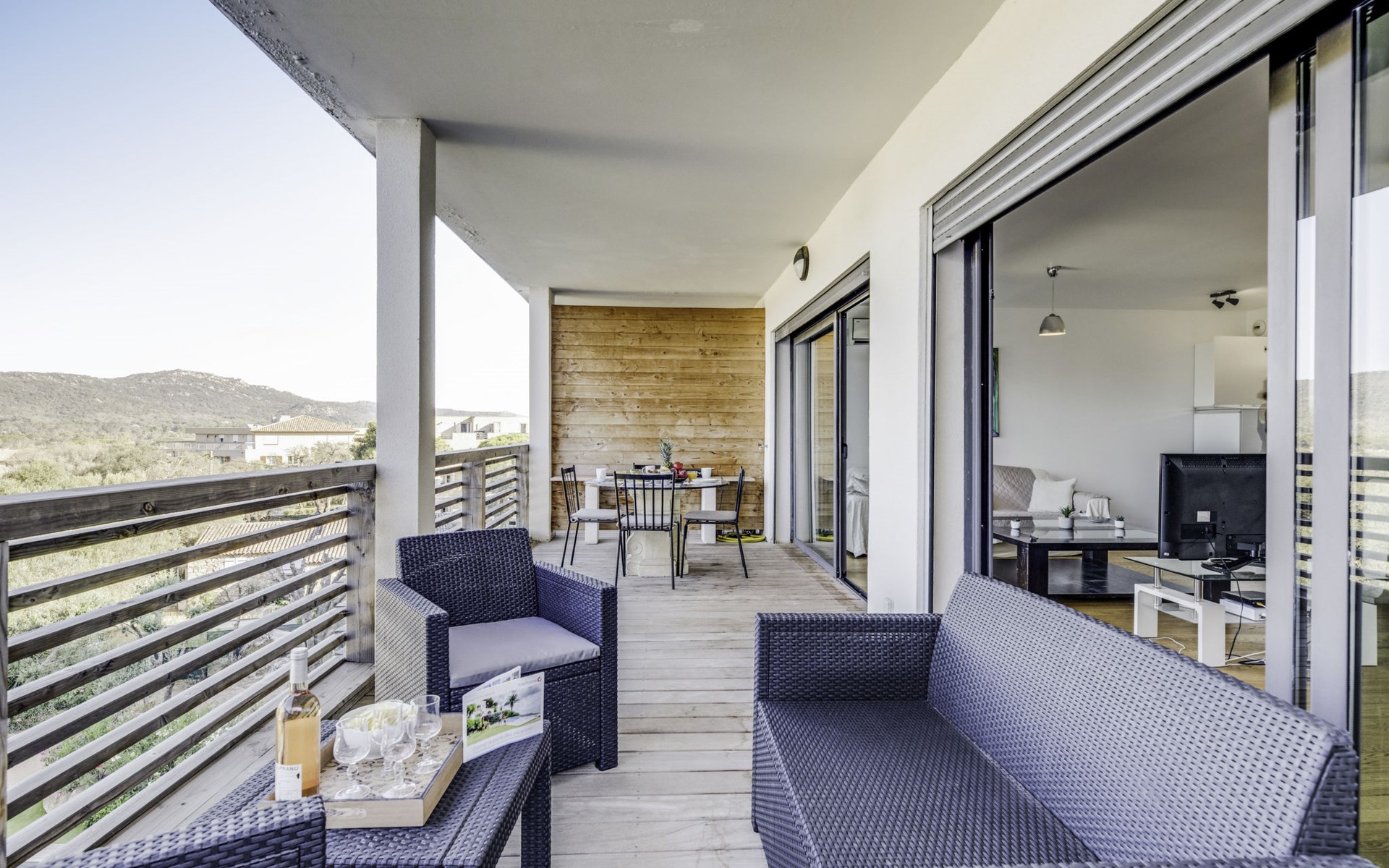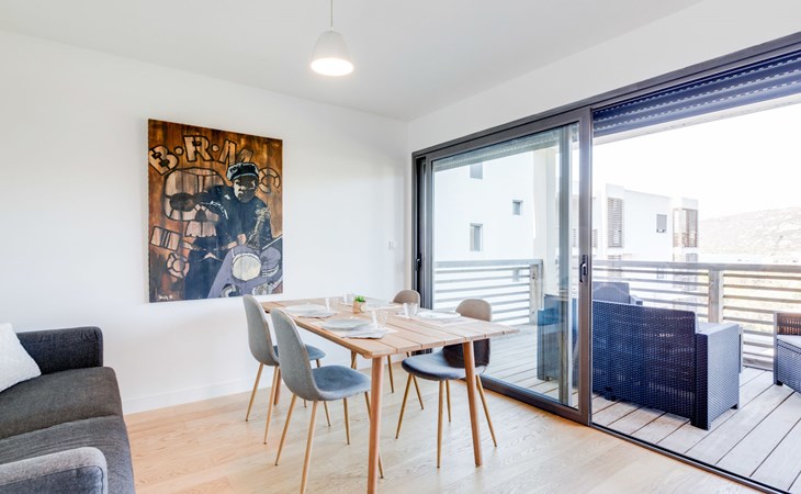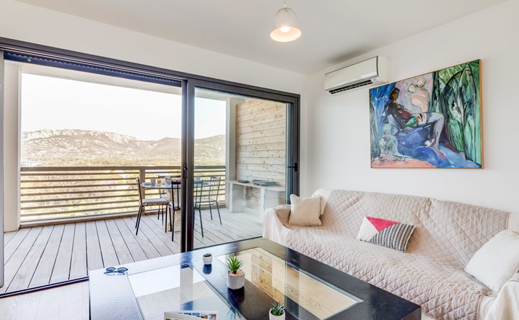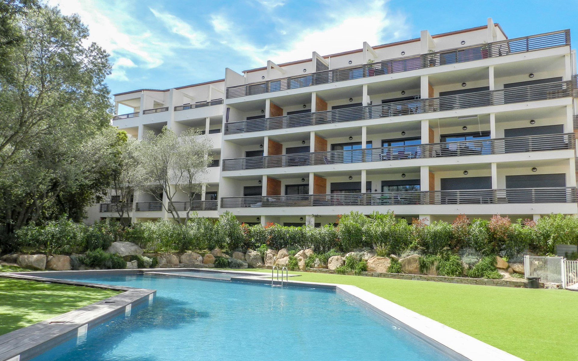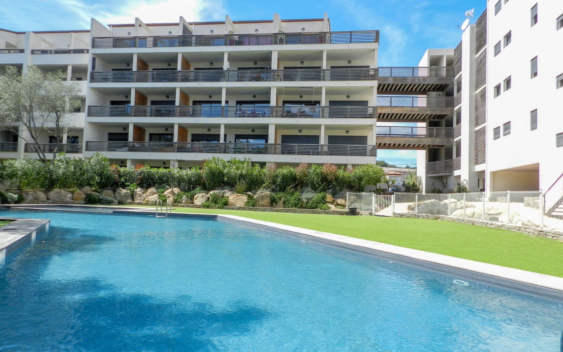 Moderne Residenz "Résidence Cita di Sali". Im Ortsteil Vignola, am Ortsrand, zentrale Lage, 500 m vom Meer, 8 km vom Strand. Zur Mitbenutzung: Schwimmbad (16 x 5 m, 140 cm tief, saisonale Verfügbarkeit: 15.Mai. - 30.Sep.). Poolpflege durch den Besitzer/Gärtner. Zufahrt bis 20 m zum Haus. Parkplatz (beschränkte Anzahl) beim Haus. Einkaufsgeschäft, Lebensmittelgeschäft 100 m, Supermarkt 2 km, Restaurant 100 m, Bushaltestelle 80 m, Sandstrand "Santa Giulia" 8 km. Sporthafen 200 m, Golfplatz (18 Loch) 6 km, Reitstall 3 km. Nahe gelegene Sehenswürdigkeiten: Figari 22 km, Bonifacio 25 km, Solenzara 40 km, Iles Lavezzi. Bitte beachten: Fahrzeug empfohlen. Die Residenz wird durch elektrische Tore geschlossen.