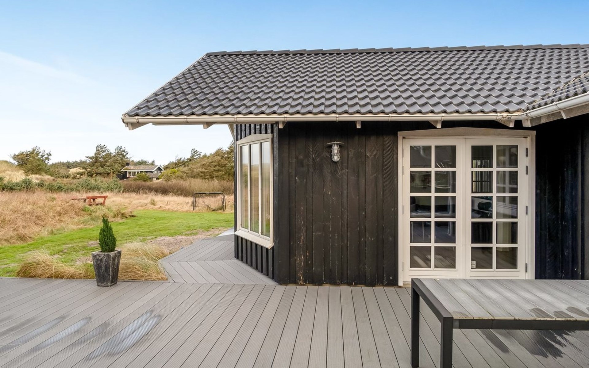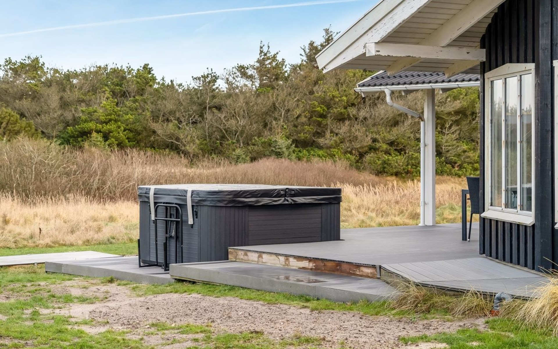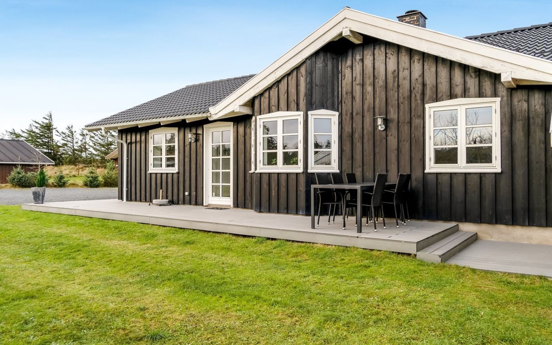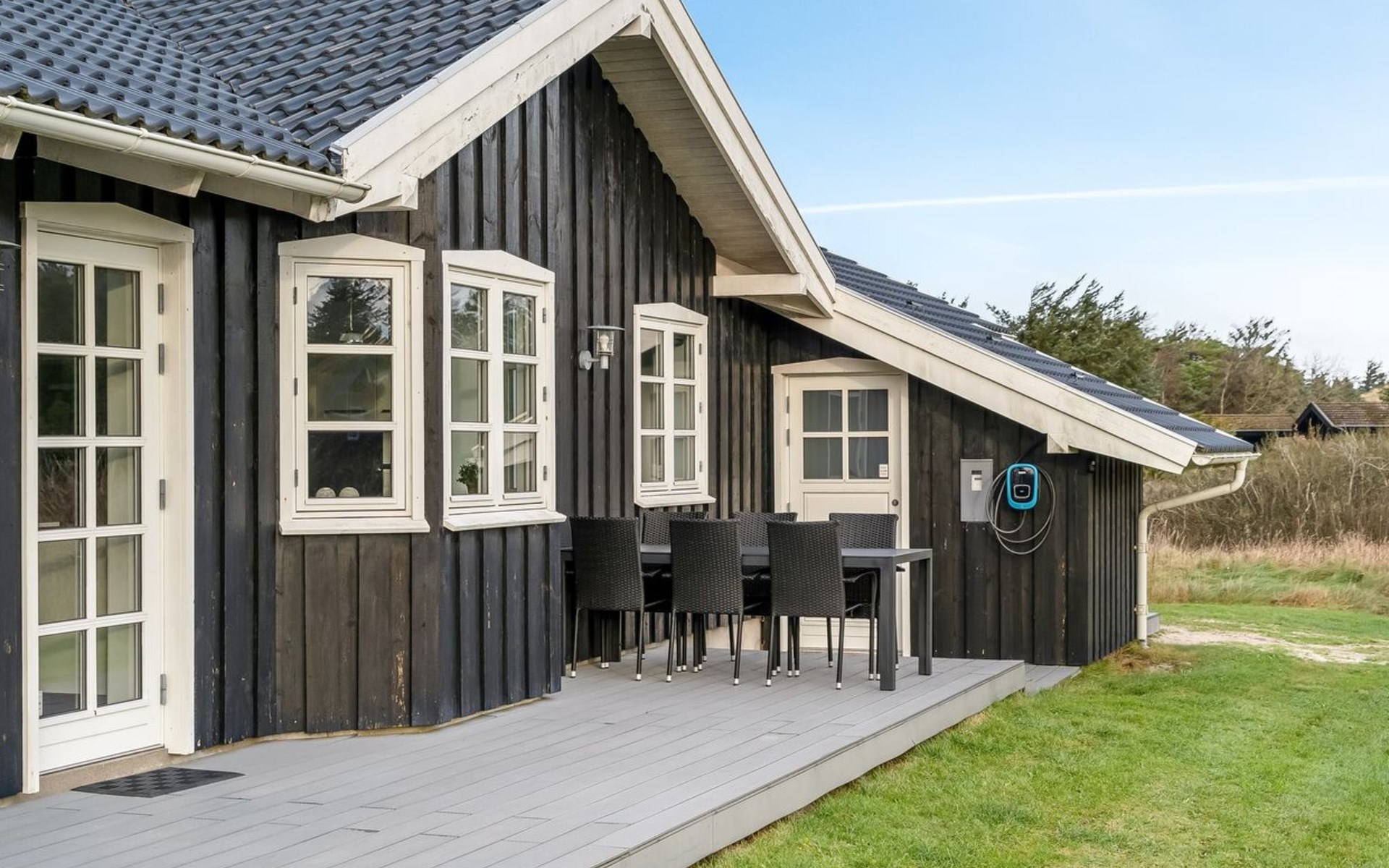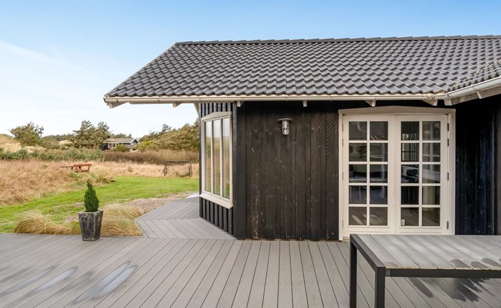 Einfamilienhaus, Baujahr 2017. 550 m vom Meer. Zur Alleinbenutzung: Grundstück 1'594 m2, gepflegter Garten. Aussendusche, Grill, Kinderspielplatz (Schaukel). Im Hause: Sauna, Tischfussball, Waschmaschine, Wäschetrockner. Parkplatz beim Haus. E-Ladestation. Lebensmittelgeschäft 4 km. Der Besitzer akzeptiert keine Jugendgruppen.