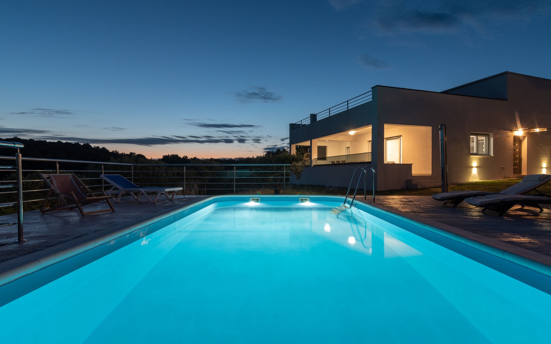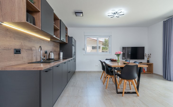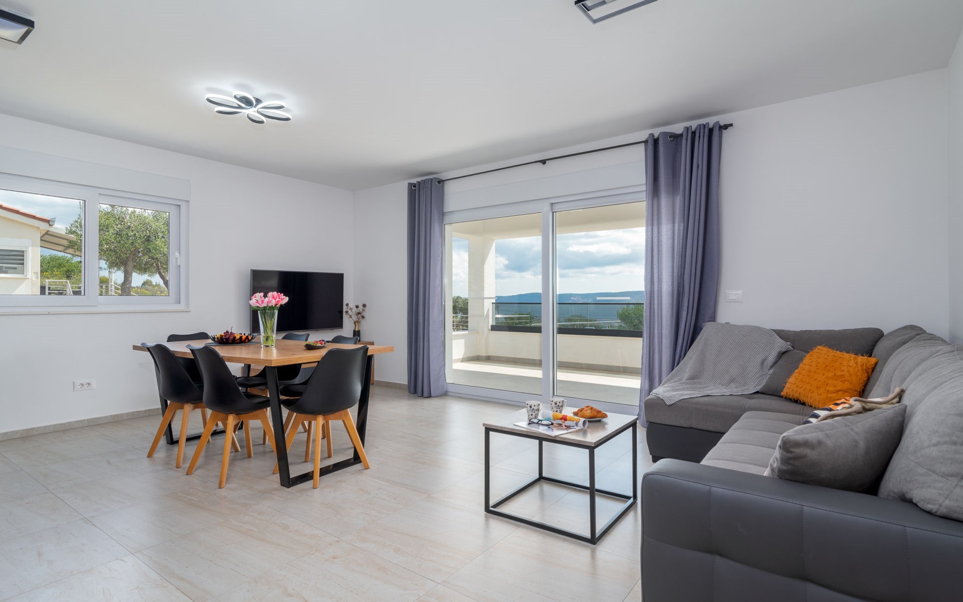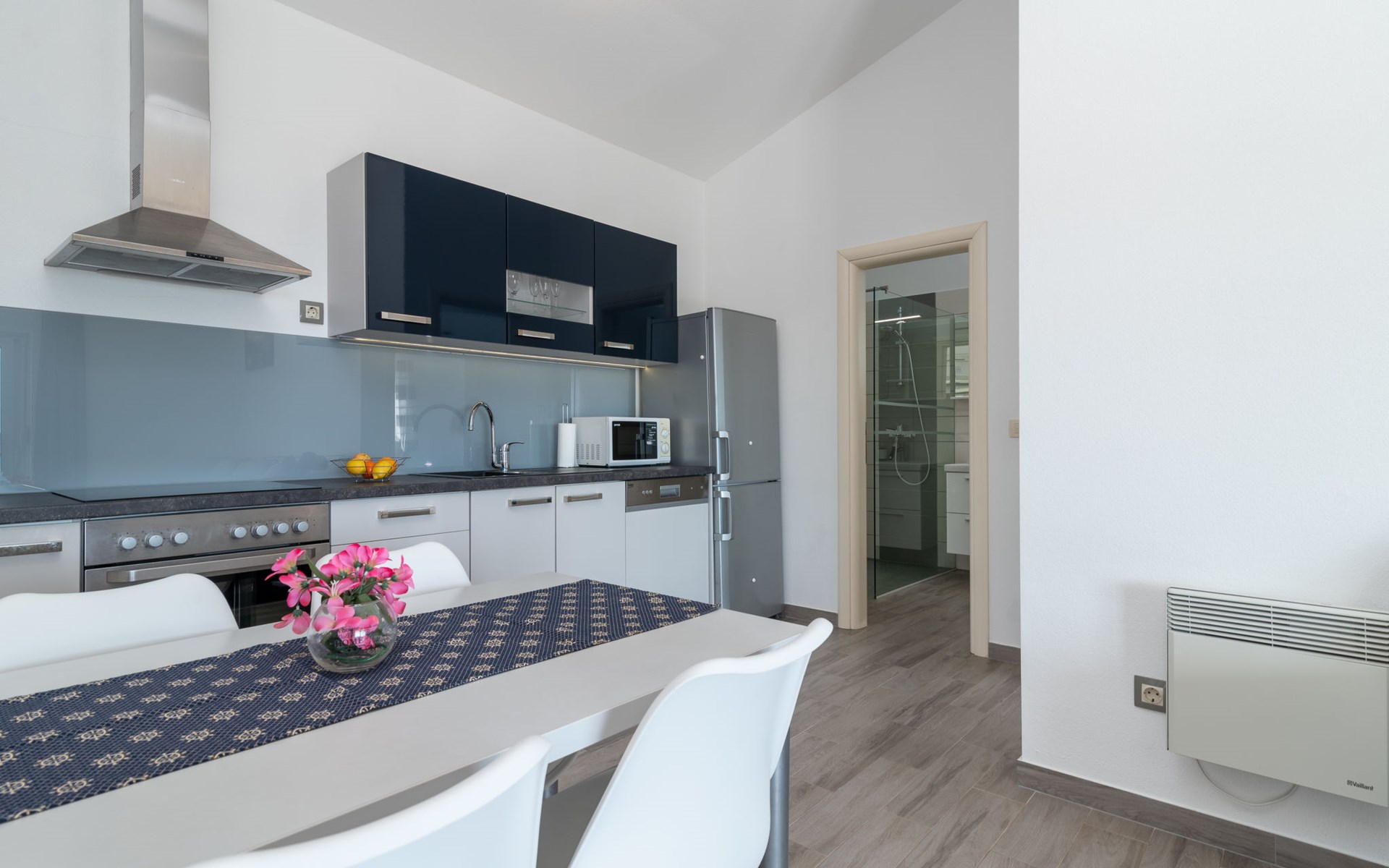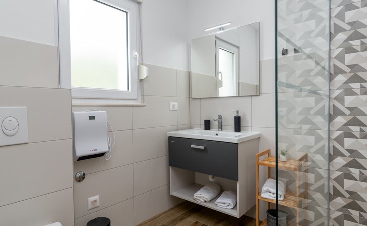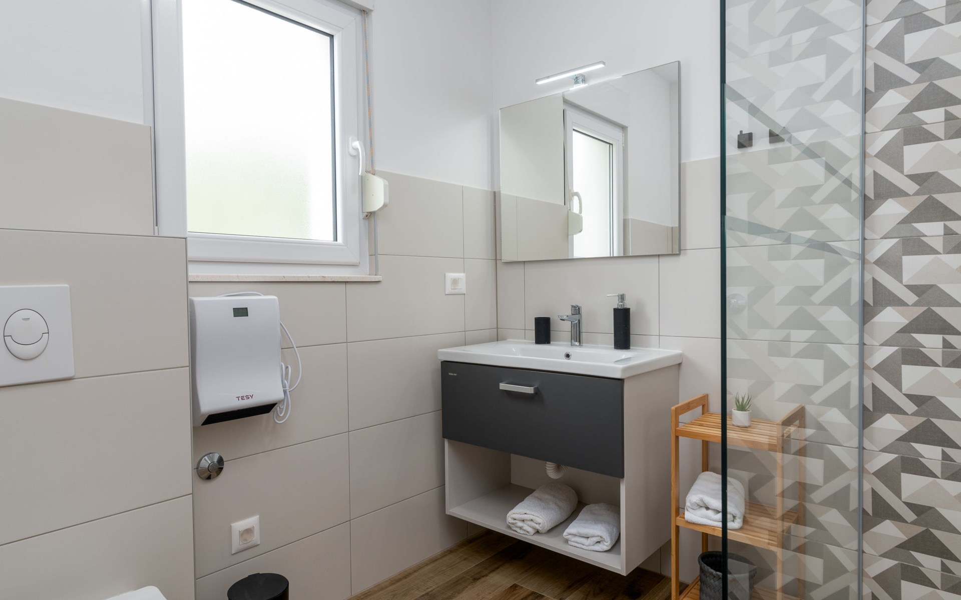 Okrug Gornji (Čiovo): Haus "Ria with heated pool". 1.5 km vom Zentrum von Okrug Gornji, 5 km vom Zentrum von Trogir, ruhige, sonnige Lage, 180 m vom Meer, 180 m vom Strand. Zur Alleinbenutzung: Grundstück 1'200 m2 (eingezäunt), Bäumen, Schwimmbad beheizt (26 m2, 150 cm tief, saisonale Verfügbarkeit: 04.Apr. - 06.Nov.). Aussendusche, Gartenmöbel, Grill. Im Hause: Internetzugang, Dachterrasse, Waschmaschine. Zufahrt bis zum Haus (50 m Naturweg). Parkplatz (für 3 Autos) beim Haus auf dem Grundstück. Einkaufsgeschäft 500 m, Supermarkt 1.5 km, Restaurant 1.5 km, Bushaltestelle 500 m, Kieselstrand 180 m. Bitte beachten: Flugplatz 10 km vom Haus. Die Anlage besteht aus einem grossen Haupthaus (100 m2) und einem kleinen Haus (46 m2) welche zusammen vermietet werden.