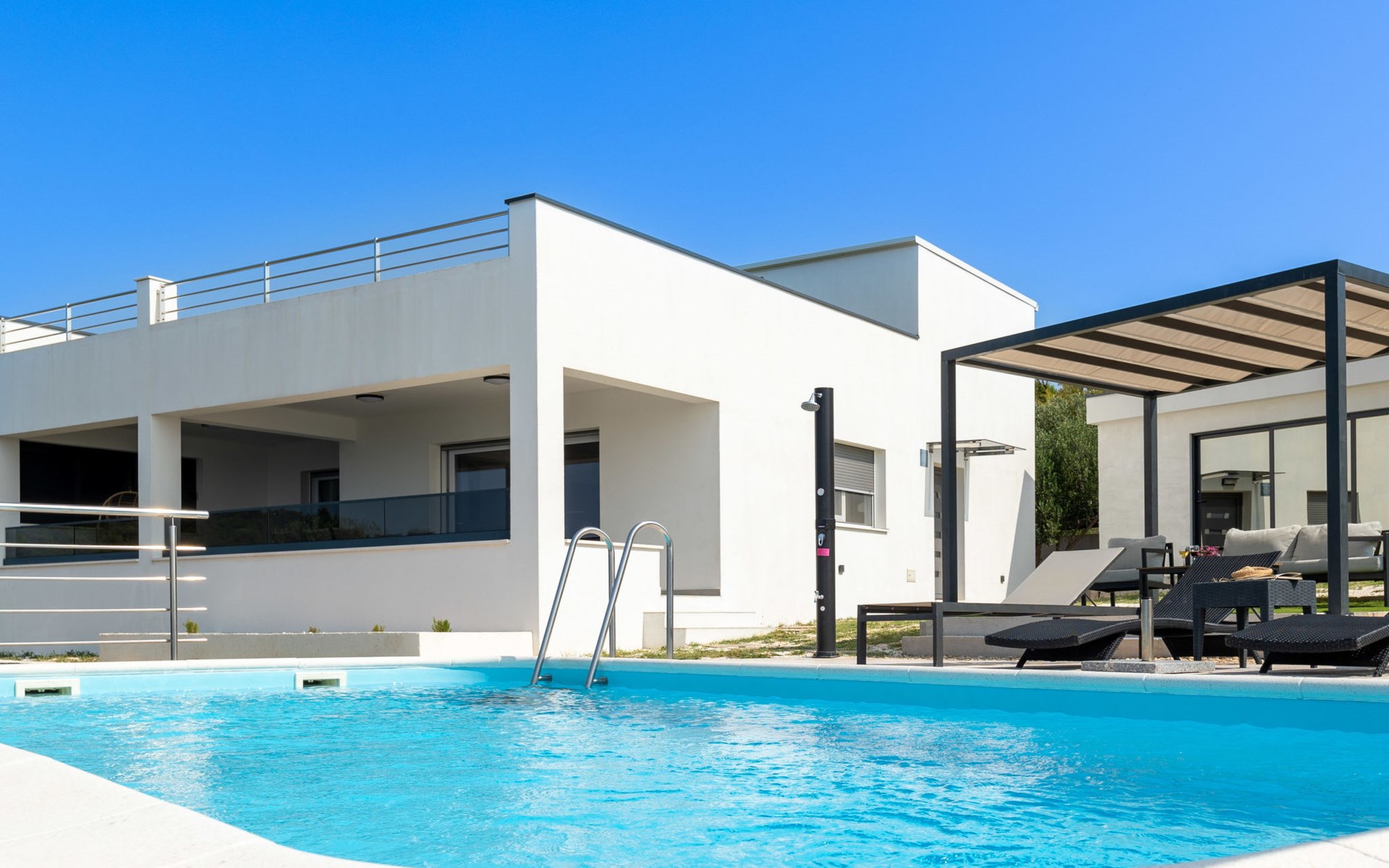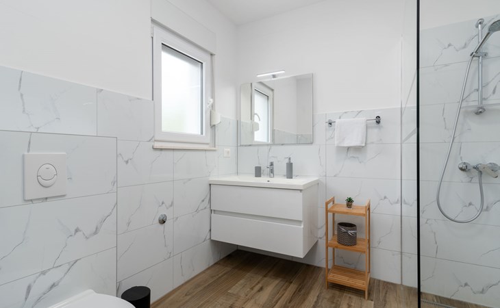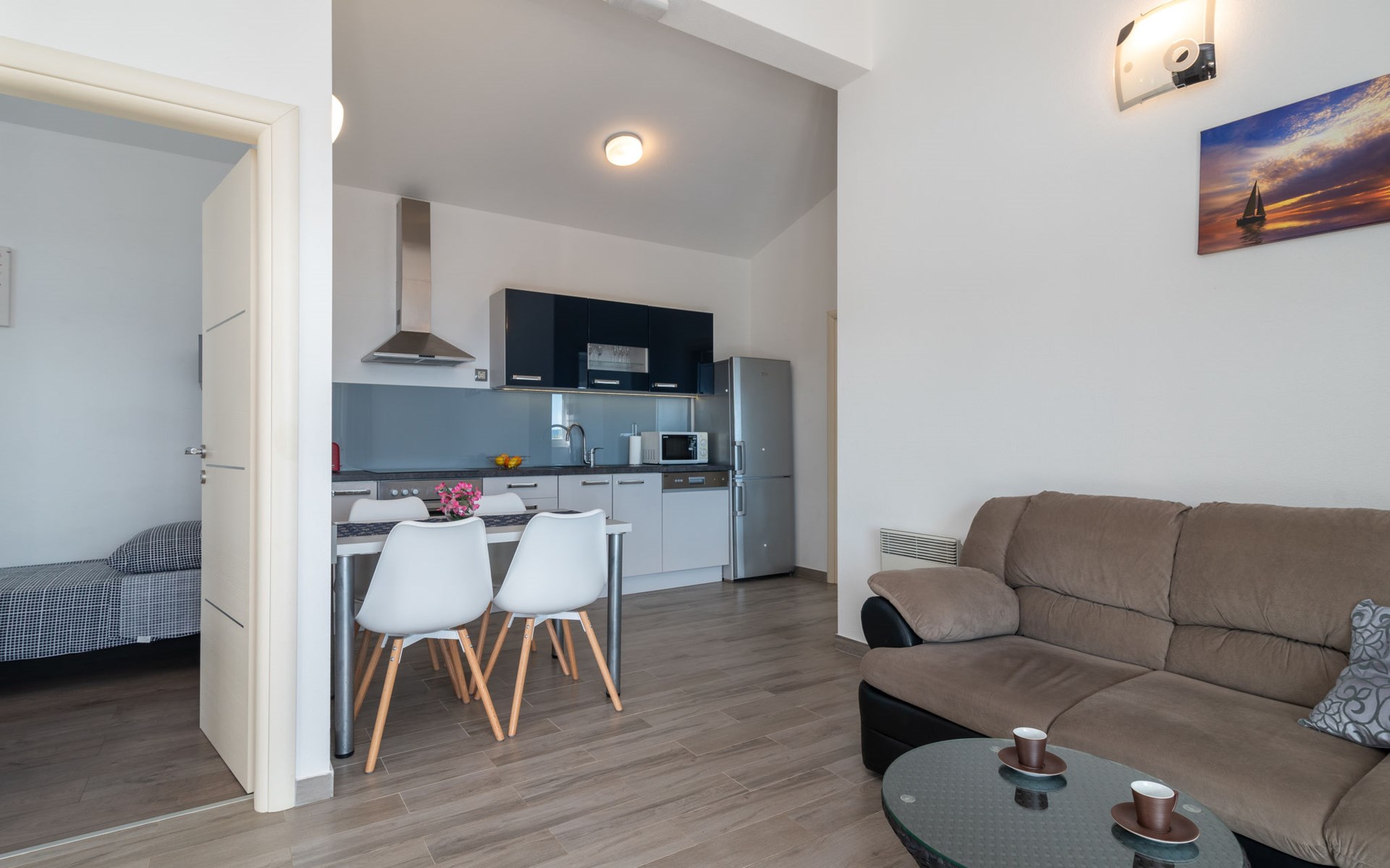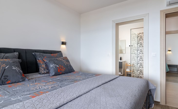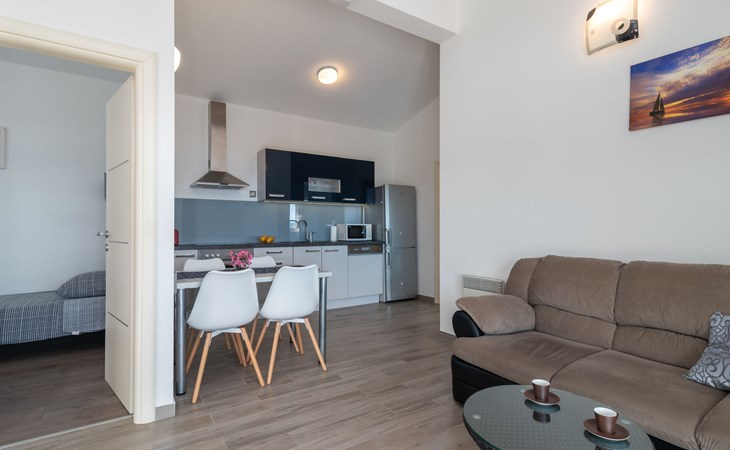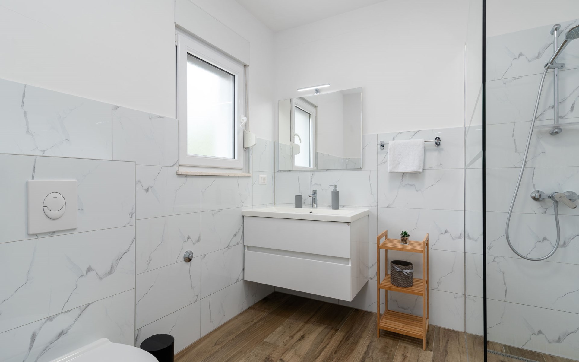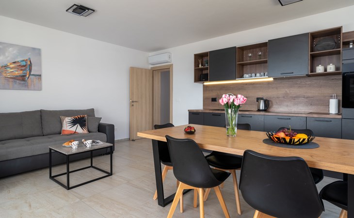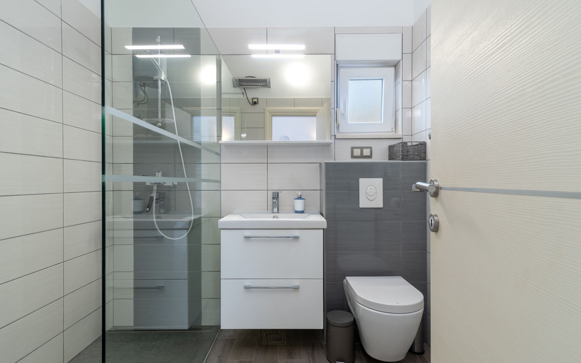 Okrug Gornji (Čiovo): Haus "Ria with heated pool". 1.5 km vom Zentrum von Okrug Gornji, 5 km vom Zentrum von Trogir, ruhige, sonnige Lage, 180 m vom Meer, 180 m vom Strand. Zur Alleinbenutzung: Grundstück 1'200 m2 (eingezäunt), Bäumen, Schwimmbad beheizt (26 m2, 150 cm tief, saisonale Verfügbarkeit: 04.Apr. - 06.Nov.). Aussendusche, Gartenmöbel, Grill. Im Hause: Internetzugang, Dachterrasse, Waschmaschine. Zufahrt bis zum Haus (50 m Naturweg). Parkplatz (für 3 Autos) beim Haus auf dem Grundstück. Einkaufsgeschäft 500 m, Supermarkt 1.5 km, Restaurant 1.5 km, Bushaltestelle 500 m, Kieselstrand 180 m. Bitte beachten: Flugplatz 10 km vom Haus. Die Anlage besteht aus einem grossen Haupthaus (100 m2) und einem kleinen Haus (46 m2) welche zusammen vermietet werden.