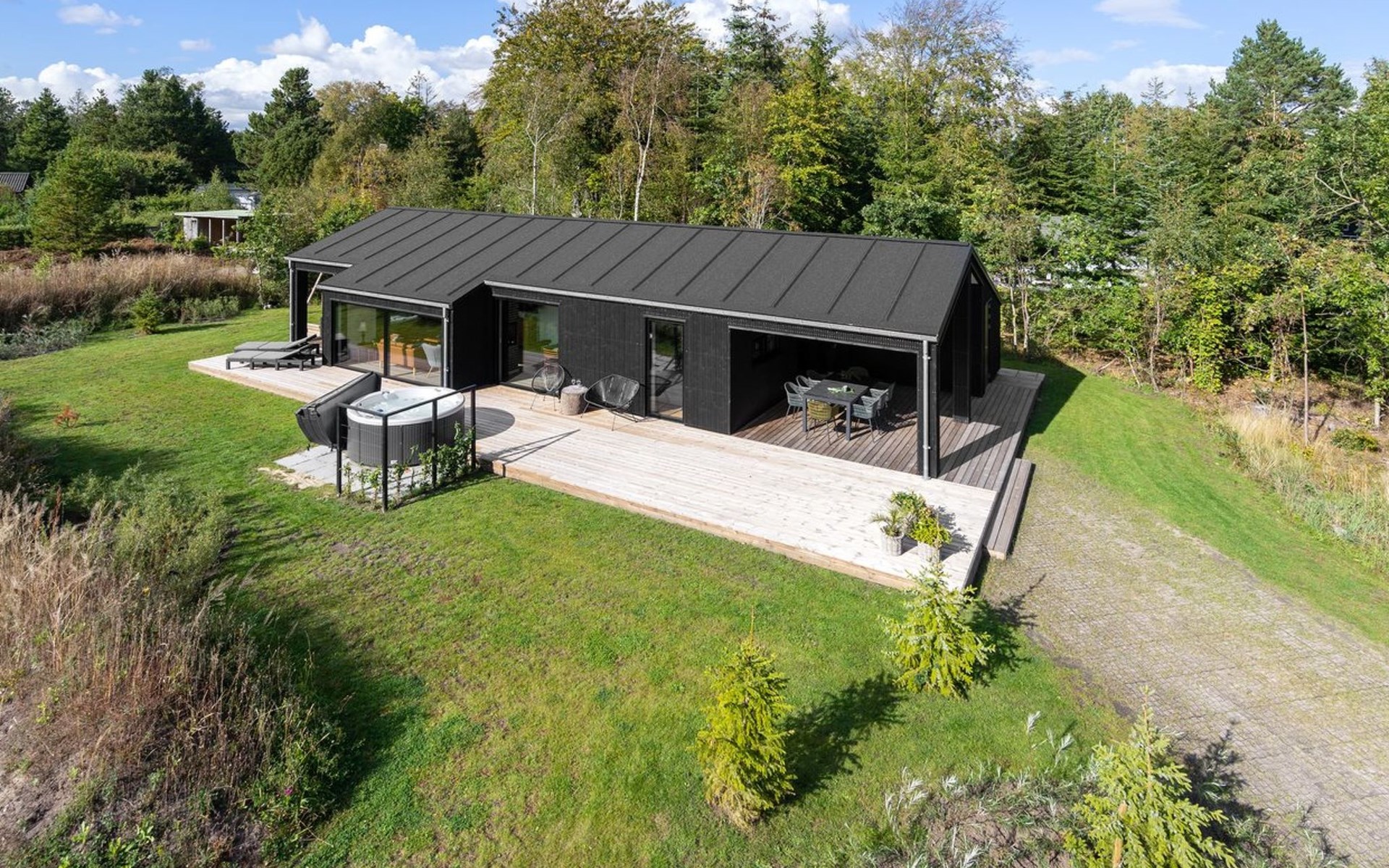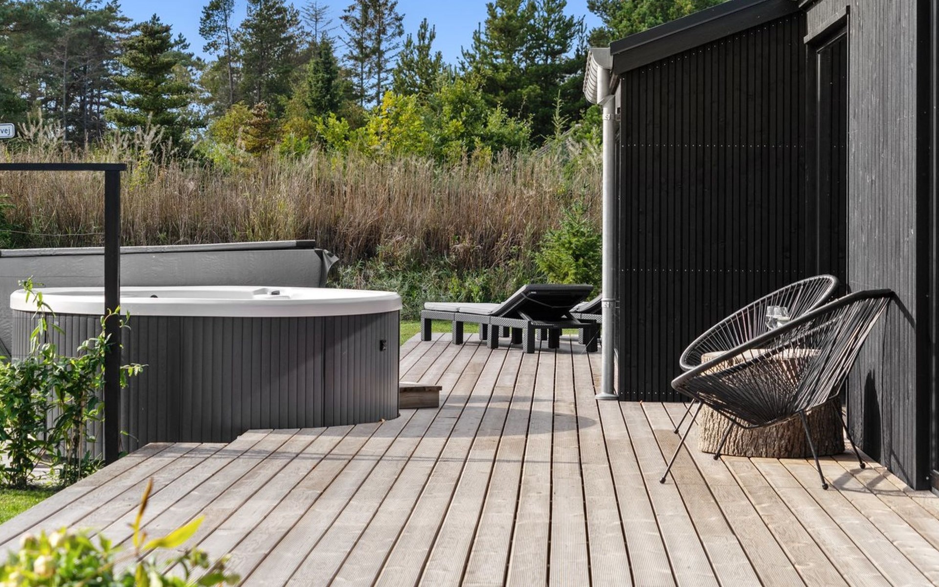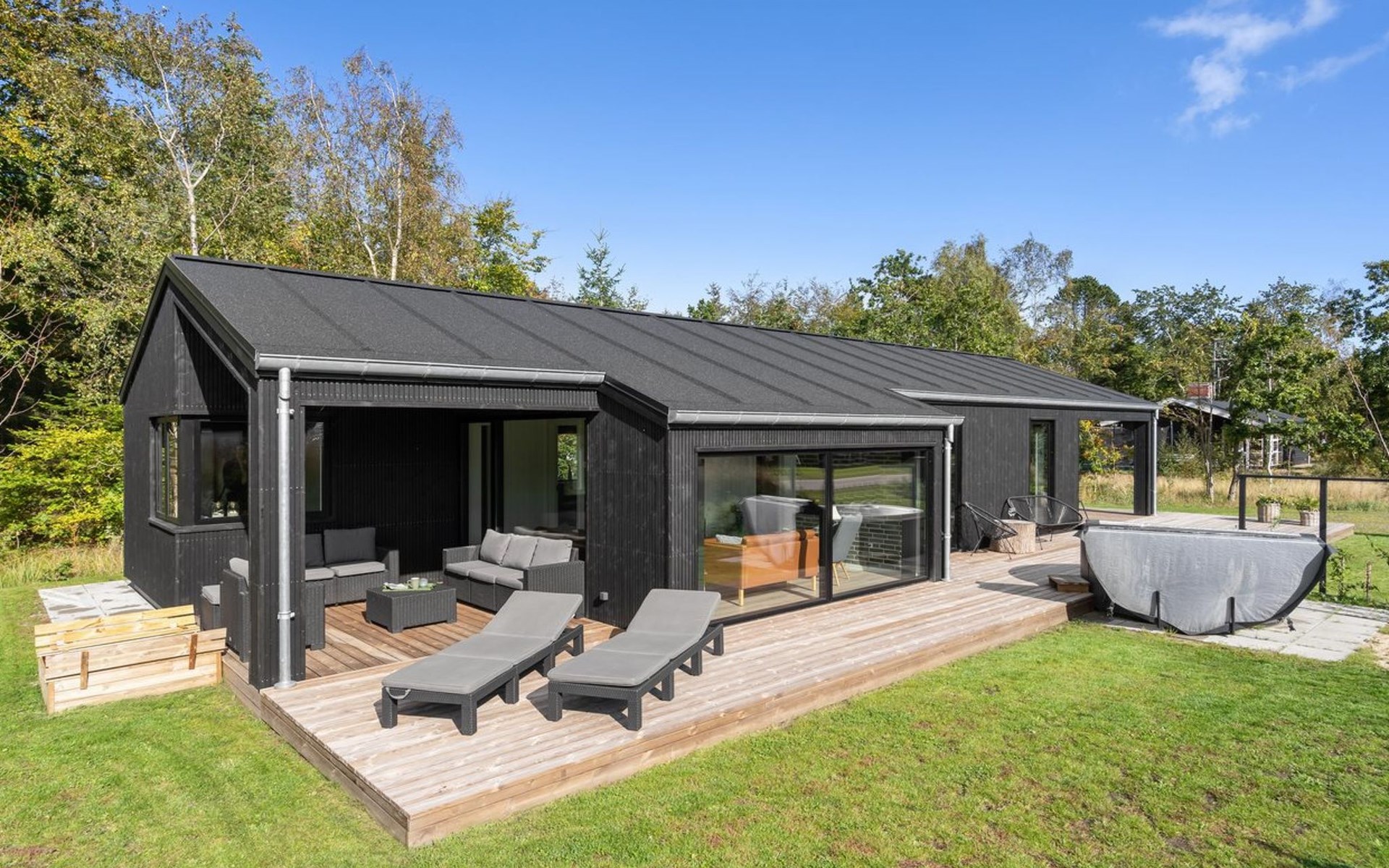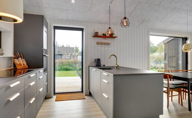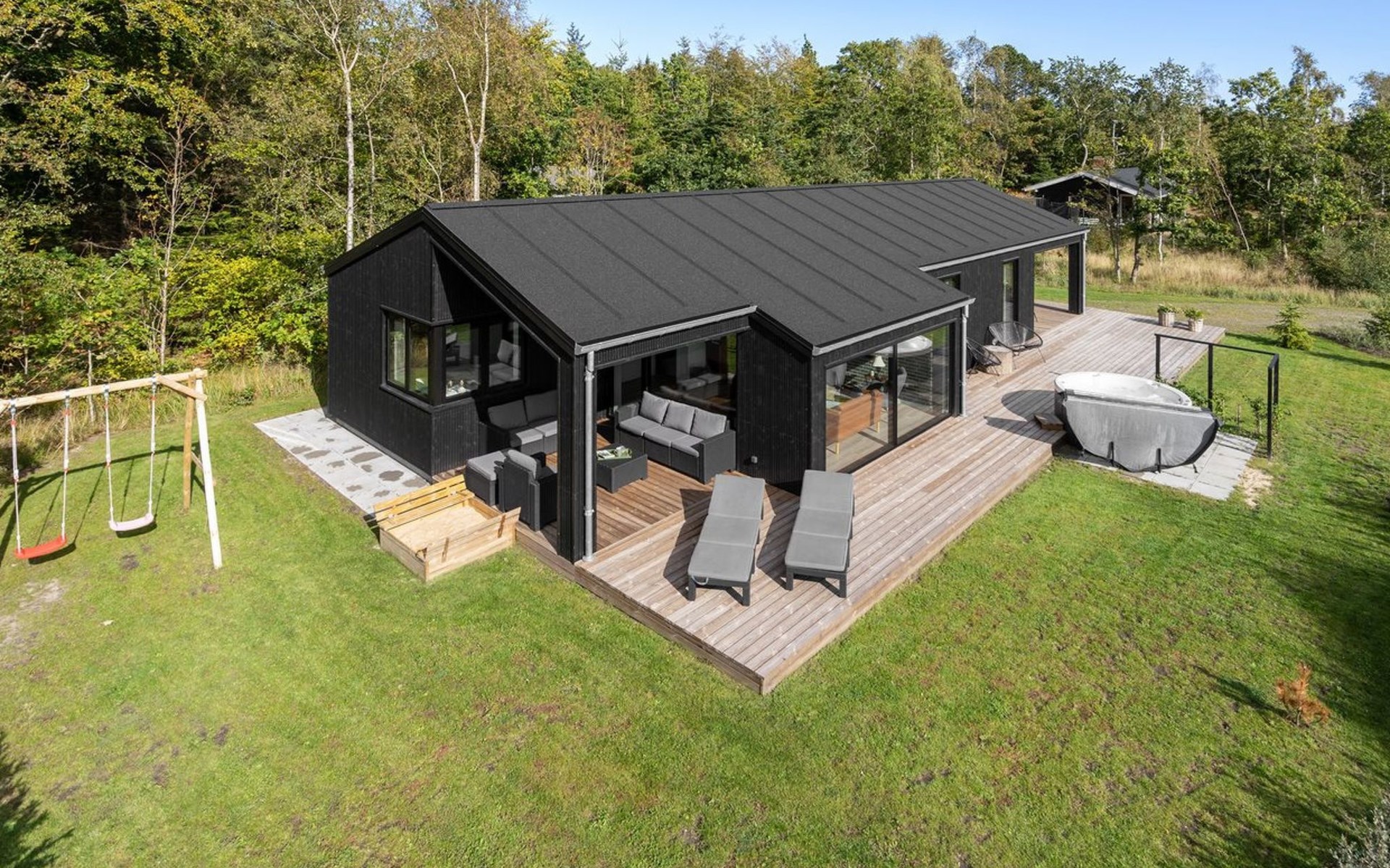 Einfamilienhaus, Baujahr 2022. 400 m vom Meer. Zur Alleinbenutzung: Grundstück 1'066 m2, gepflegter Garten. Grill, Kinderspielplatz (Schaukel). Im Hause: Waschmaschine, Wäschetrockner. Parkplatz beim Haus. Lebensmittelgeschäft 1.5 km. Golfplatz 4.5 km. Der Besitzer akzeptiert keine Jugendgruppen.