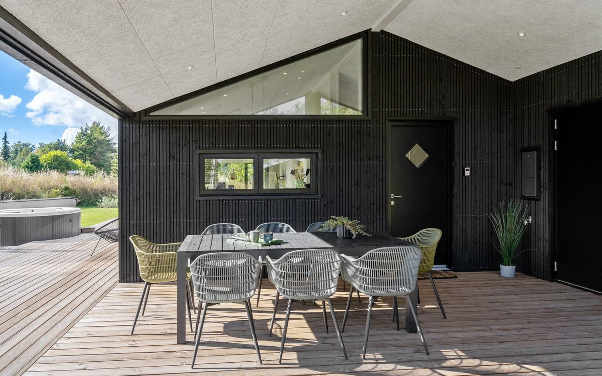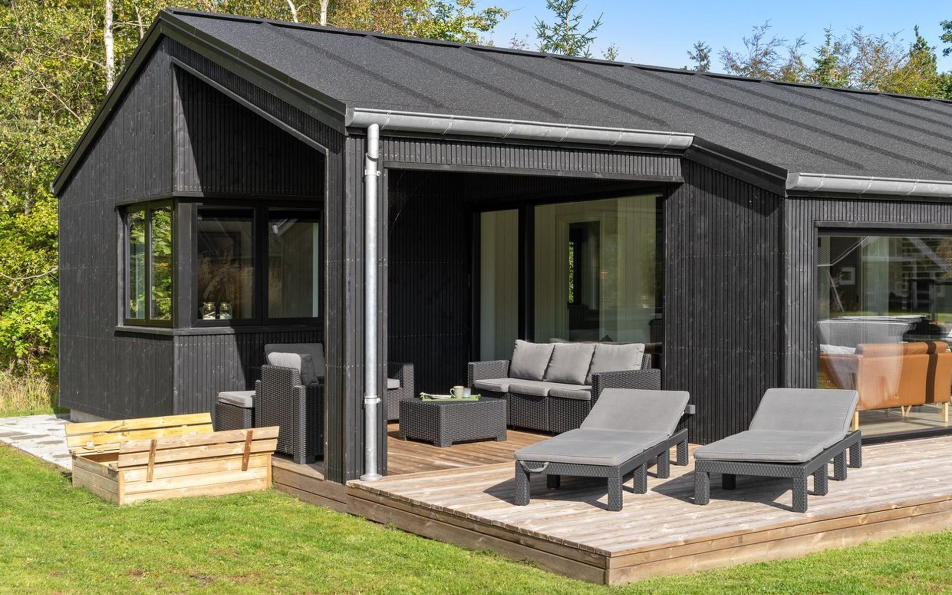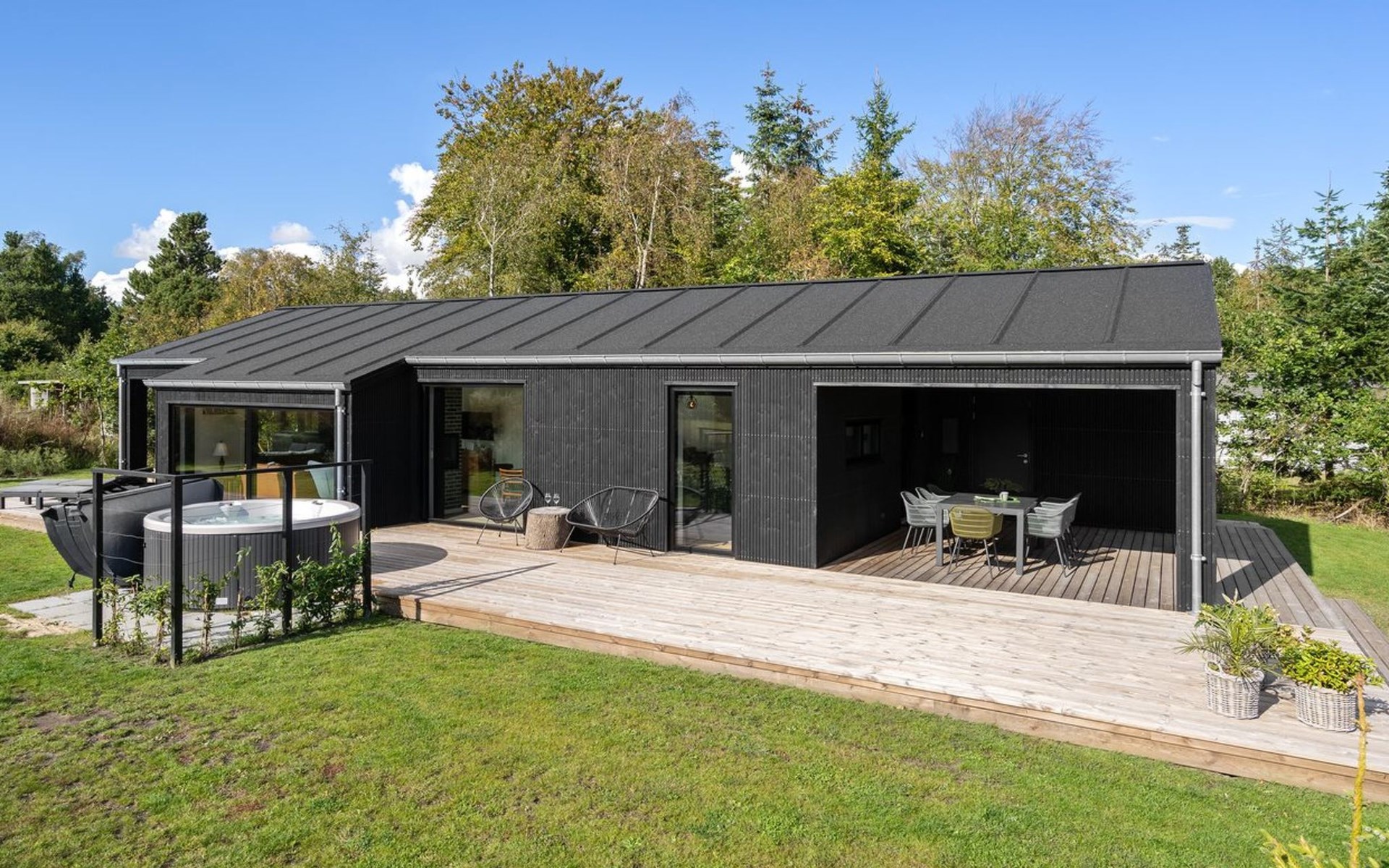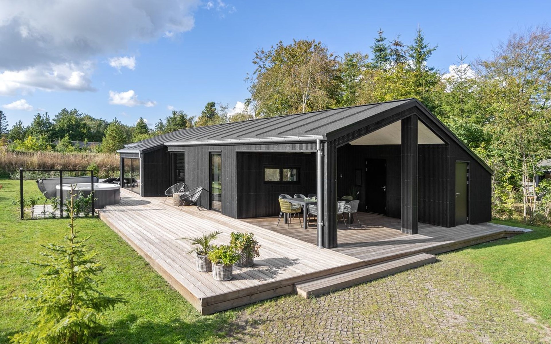 Einfamilienhaus, Baujahr 2022. 400 m vom Meer. Zur Alleinbenutzung: Grundstück 1'066 m2, gepflegter Garten. Grill, Kinderspielplatz (Schaukel). Im Hause: Waschmaschine, Wäschetrockner. Parkplatz beim Haus. Lebensmittelgeschäft 1.5 km. Golfplatz 4.5 km. Der Besitzer akzeptiert keine Jugendgruppen.