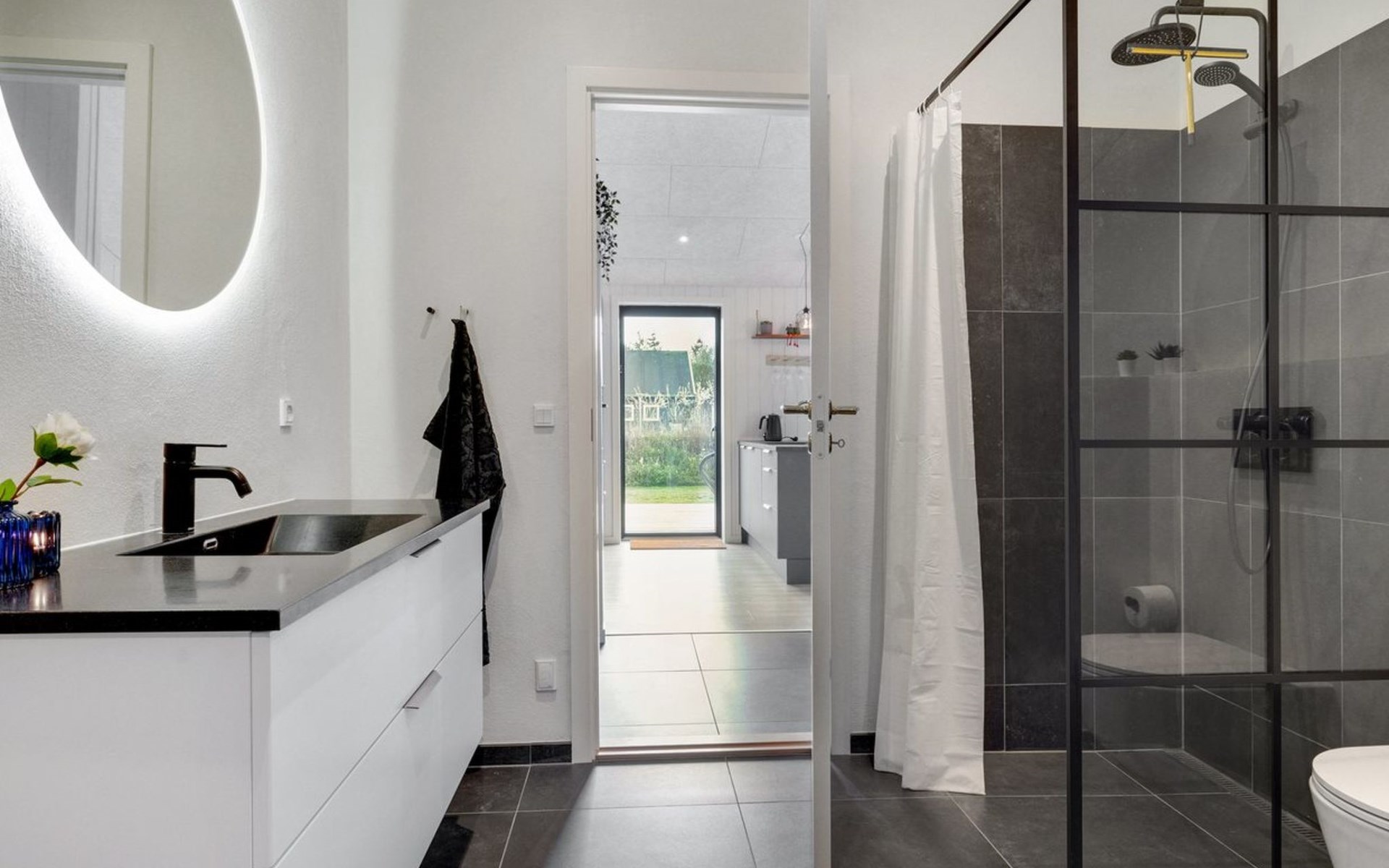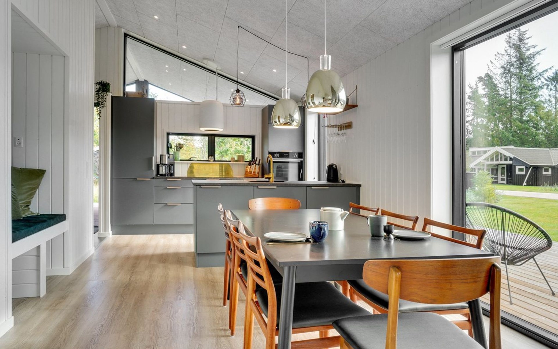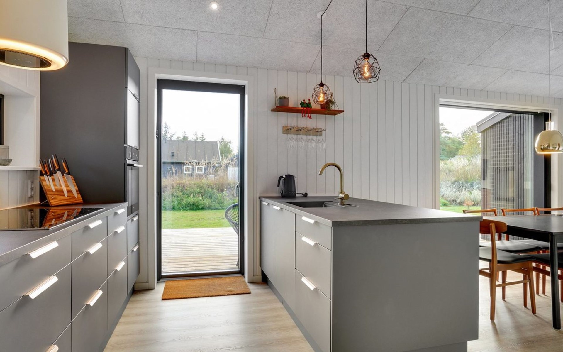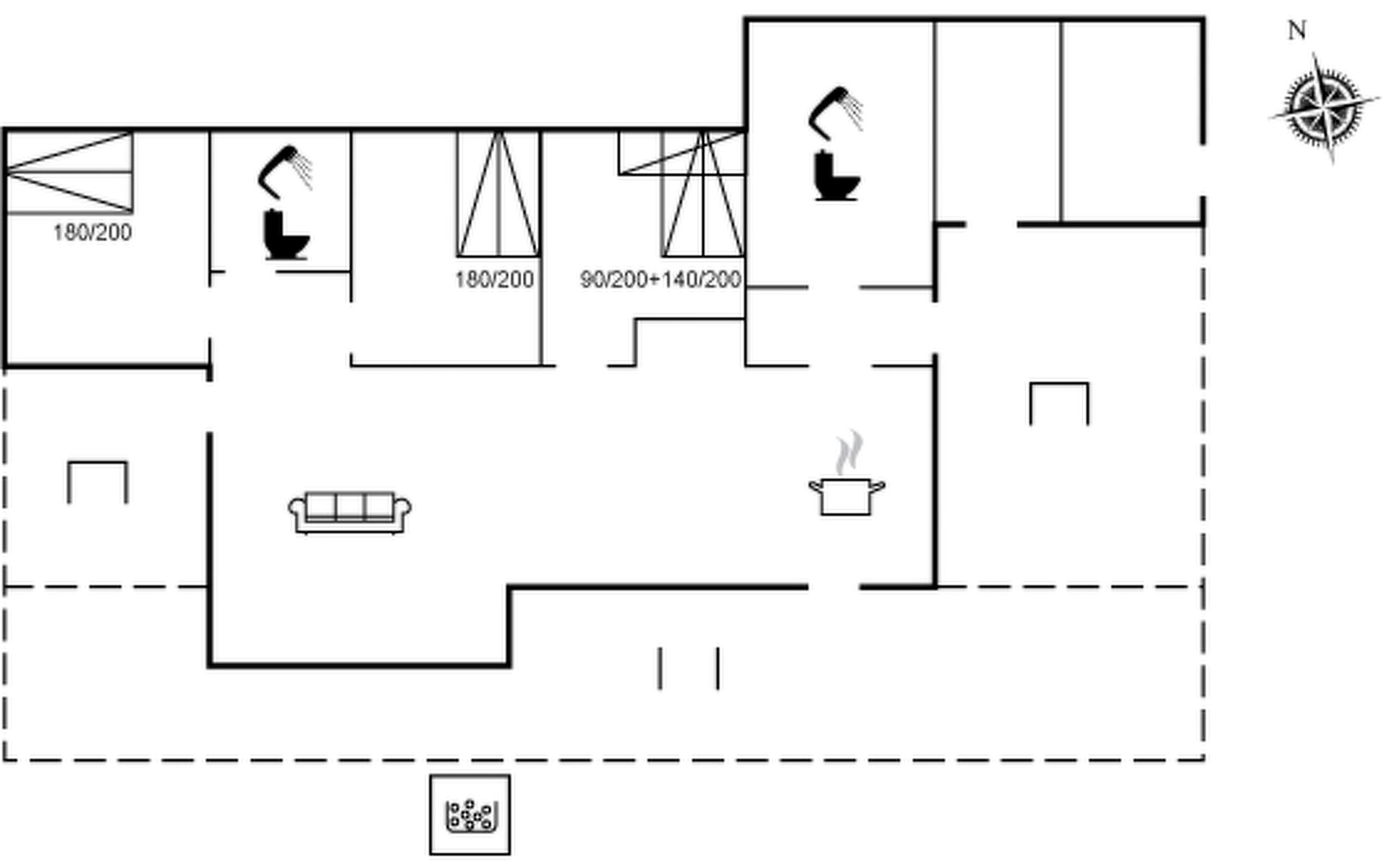 Einfamilienhaus, Baujahr 2022. 400 m vom Meer. Zur Alleinbenutzung: Grundstück 1'066 m2, gepflegter Garten. Grill, Kinderspielplatz (Schaukel). Im Hause: Waschmaschine, Wäschetrockner. Parkplatz beim Haus. Lebensmittelgeschäft 1.5 km. Golfplatz 4.5 km. Der Besitzer akzeptiert keine Jugendgruppen.