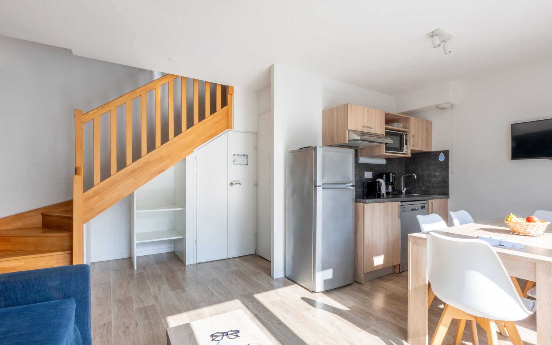 Ferienanlage "Le Domaine des Pins", auf 3 Stockwerken, Baujahr 2016. 87 Wohnungen in der Residenz. 1.5 km vom Zentrum von Noirmoutier, 44 km vom Zentrum von Challans, 91 km vom Zentrum von Nantes, 400 m vom Meer, 700 m vom Strand. Zur Mitbenutzung: Grundstück 10'000 m2 (eingezäunt), Hallenbad beheizt, eingezäunt (15 x 8 m, 145 - 155 cm tief, saisonale Verfügbarkeit: 15.Apr. - 31.Okt.) mit Innentreppe. Kinderbecken, Kinderspielplatz. In der Anlage: Empfang, Fitnessraum, Dampfbad (extra). Tischtennis, Waschmaschine, Wäschetrockner (zur Mitbenutzung, extra). Parkplatz. Einkaufsgeschäft 1.5 km, Bushaltestelle " Noirmoutier - Gare Routière" 1.9 km, Sandstrand 400 m. Nahe gelegene Sehenswürdigkeiten: Ecoles de voile au Fort St Pierre, Sports de glisse (paddle, char à voile), Pêche à pied tout autour de l’ile, Pistes cyclables (80 km de piste), Randonnées. Bitte beachten: Das Foto ist nur ein Hausbeispiel. Die Mietobjekte können sich in Wohnfläche, Raumaufteilung, Ausstattung und Einrichtung unterscheiden.
