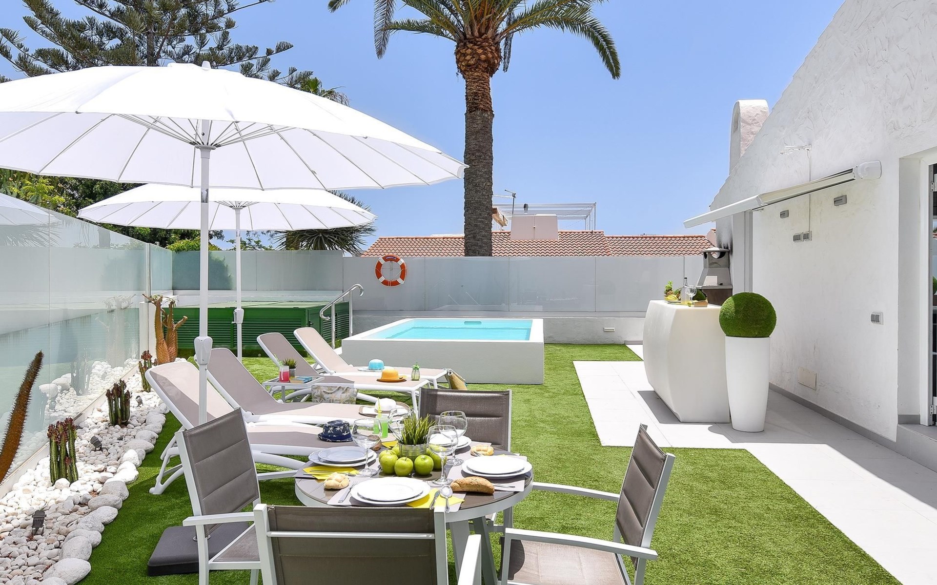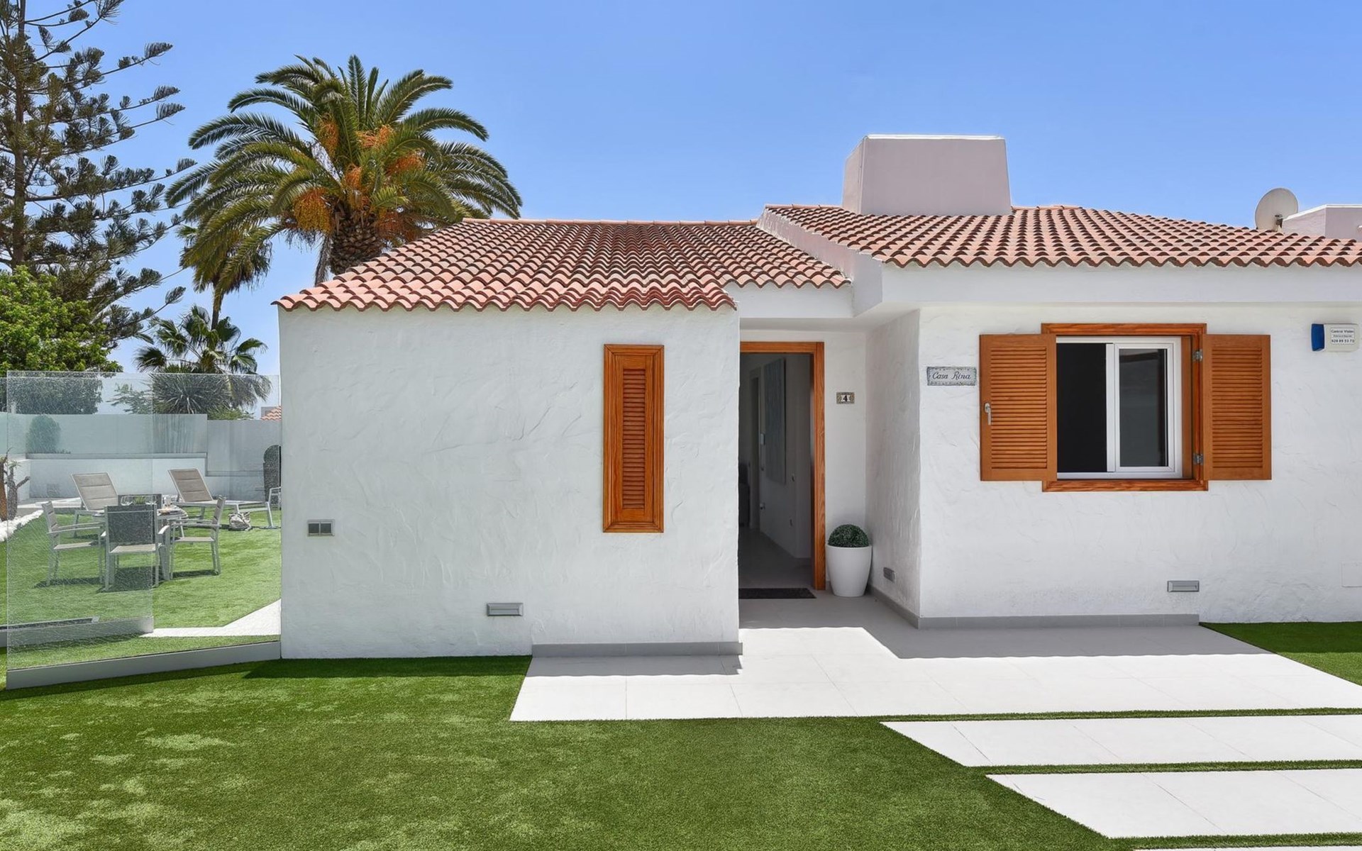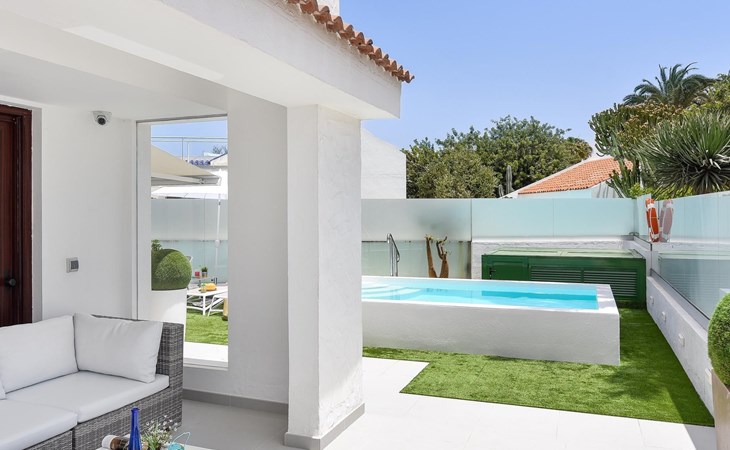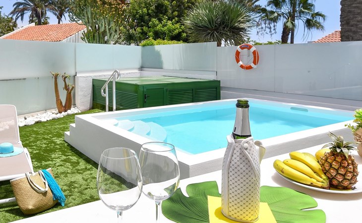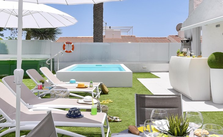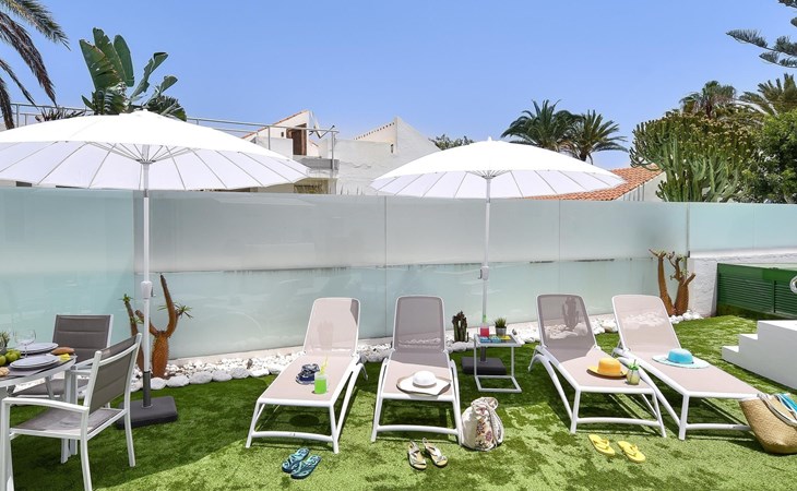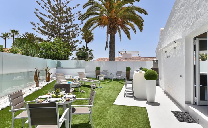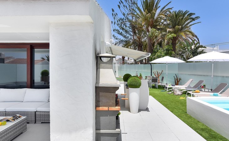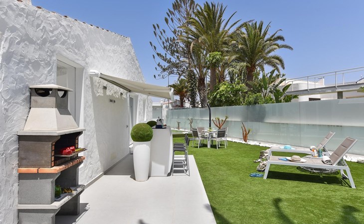 Moderner, komfortabler Bungalow "Villa Rina MC". Im Ortszentrum von Playa del Ingles, in einem Wohnquartier, direkt am Meer. Zur Alleinbenutzung: Schwimmbad (saisonale Verfügbarkeit: 01.Jan. - 31.Dez.). Im Hause: Wireless LAN, Solarium, Waschmaschine, Wäschetrockner. Bushaltestelle "Shopping Center Cita" 400 m. Bitte beachten: Fahrzeug empfohlen. Geeignet für Familien, geeignet für Senioren Babyausstattung auf Anfrage. Der Besitzer akzeptiert keine Jugendgruppen.