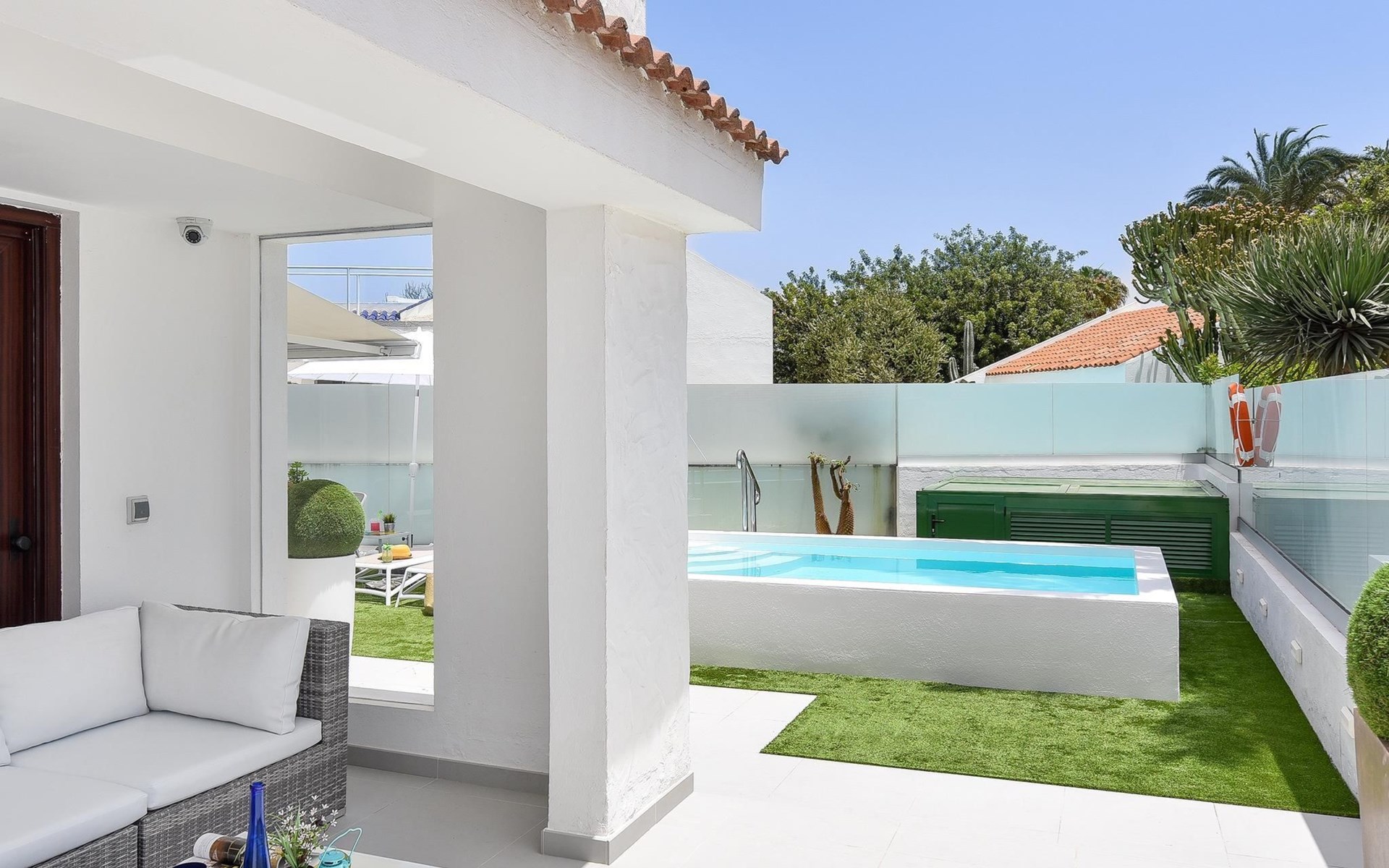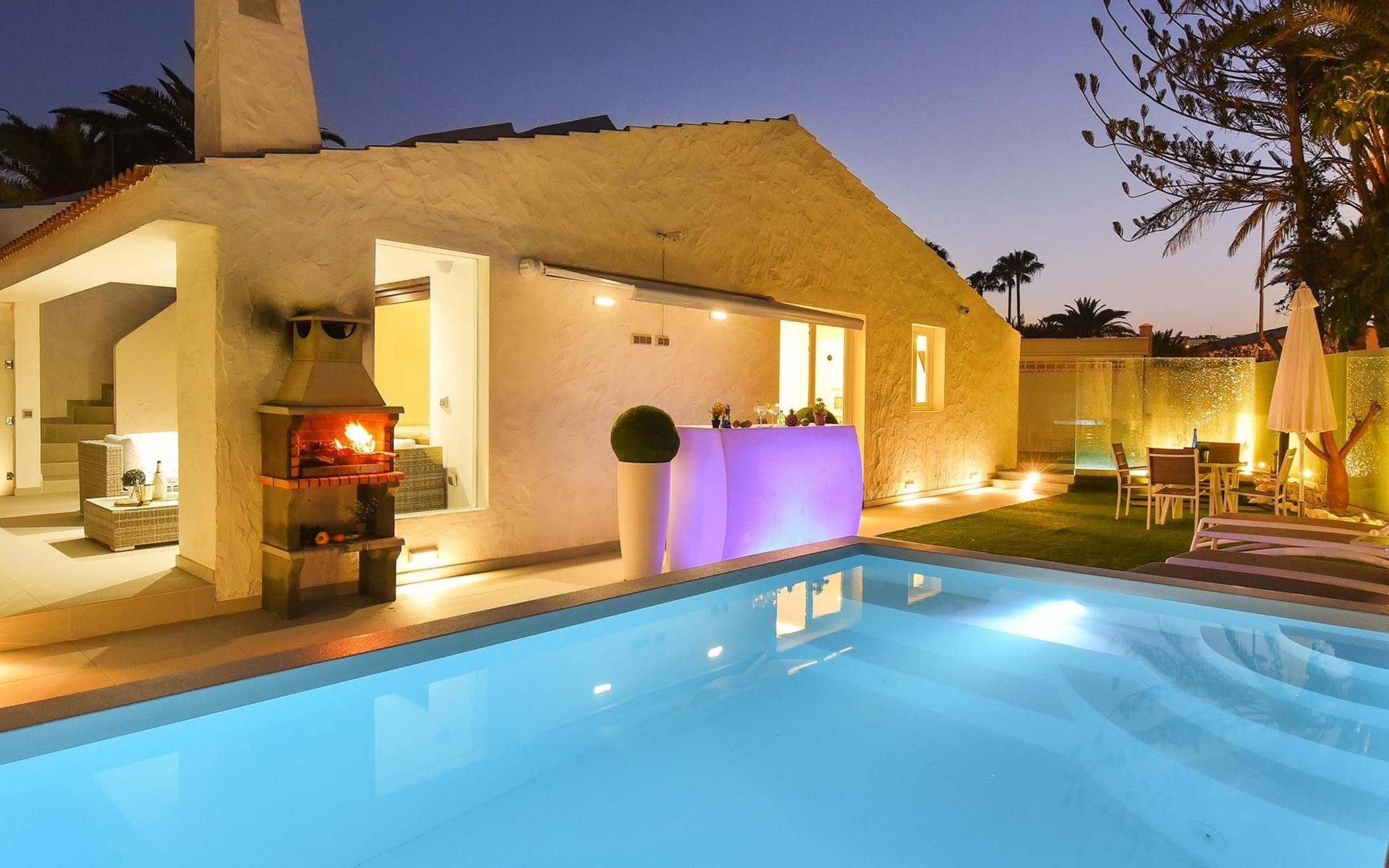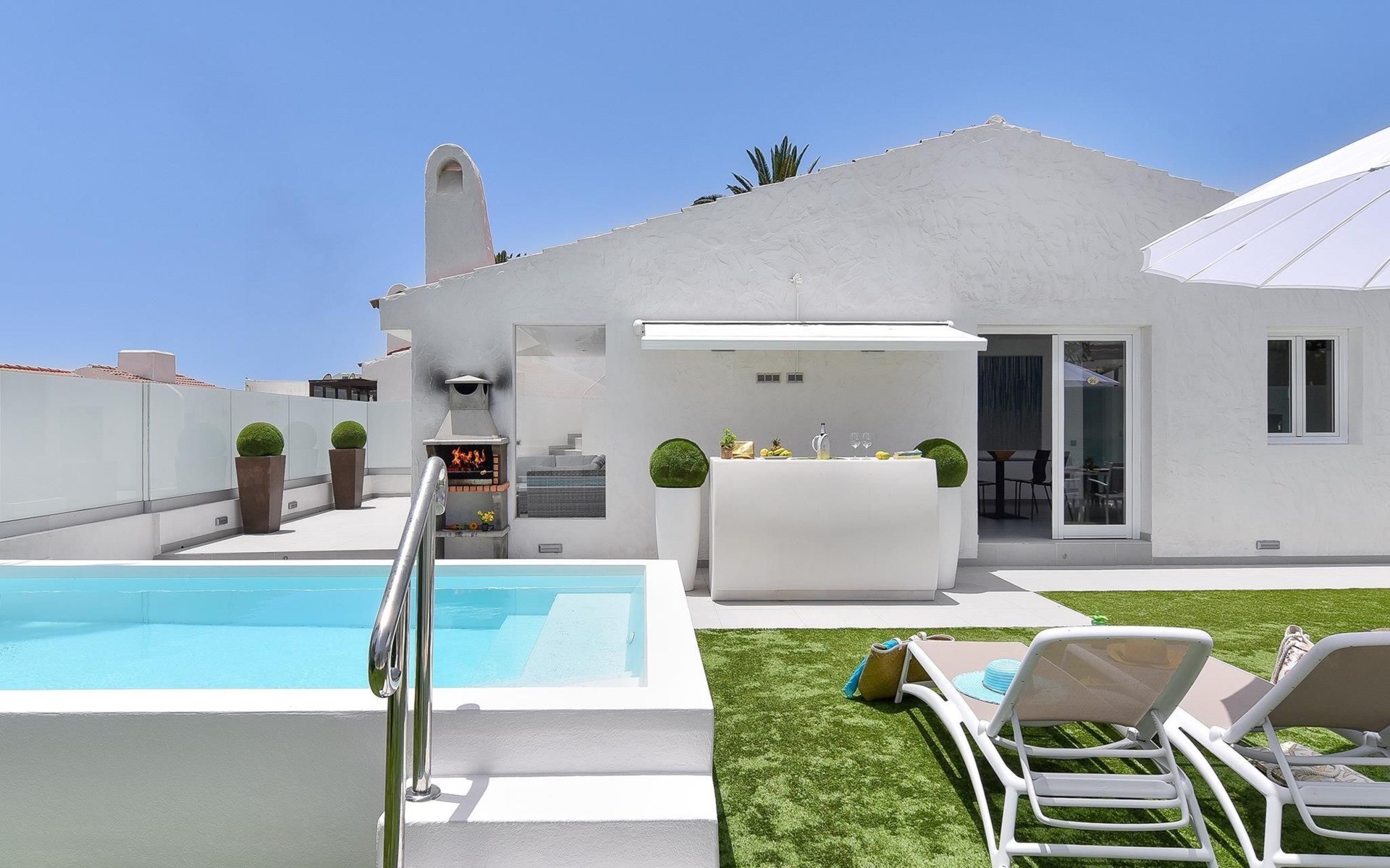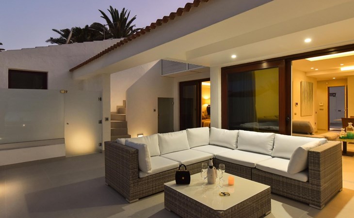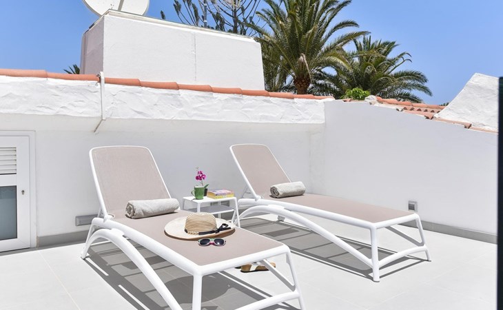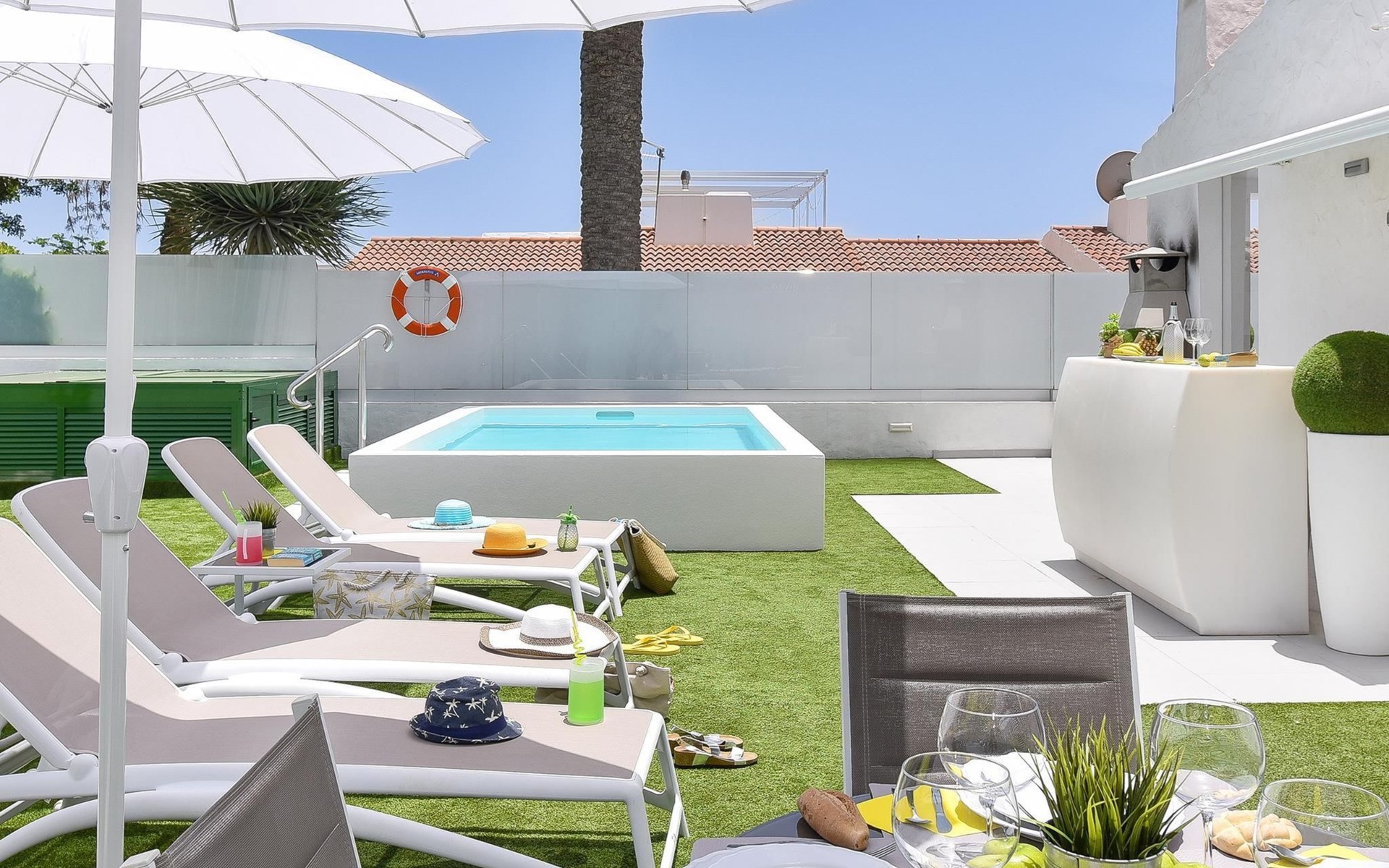 Moderner, komfortabler Bungalow "Villa Rina MC". Im Ortszentrum von Playa del Ingles, in einem Wohnquartier, direkt am Meer. Zur Alleinbenutzung: Schwimmbad (saisonale Verfügbarkeit: 01.Jan. - 31.Dez.). Im Hause: Wireless LAN, Solarium, Waschmaschine, Wäschetrockner. Bushaltestelle "Shopping Center Cita" 400 m. Bitte beachten: Fahrzeug empfohlen. Geeignet für Familien, geeignet für Senioren Babyausstattung auf Anfrage. Der Besitzer akzeptiert keine Jugendgruppen.