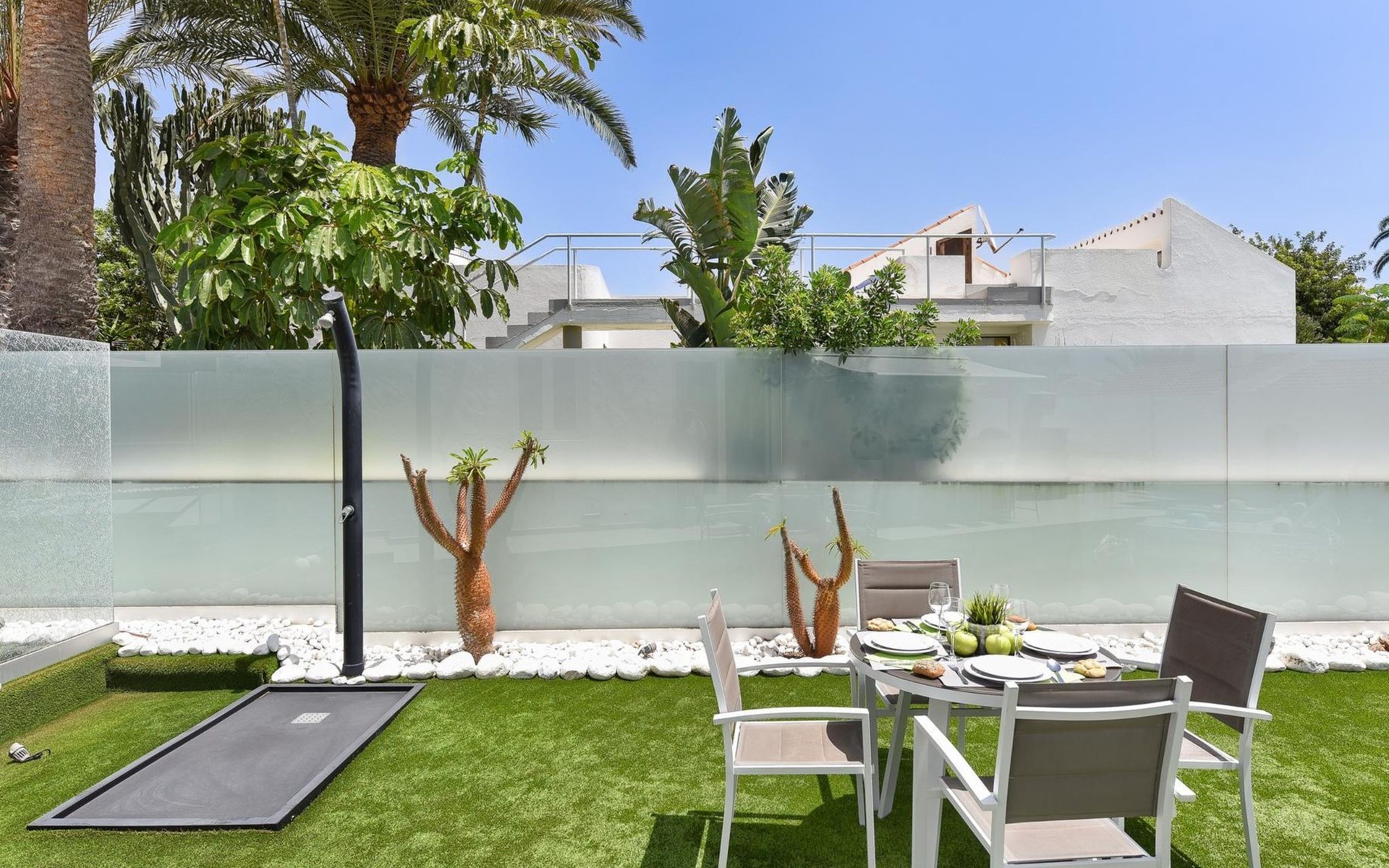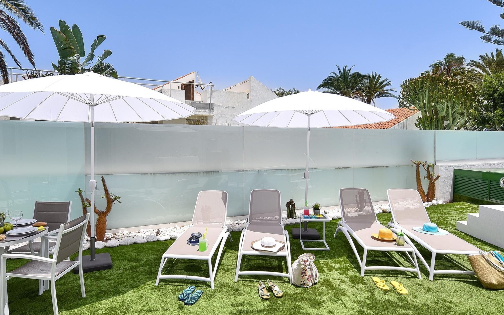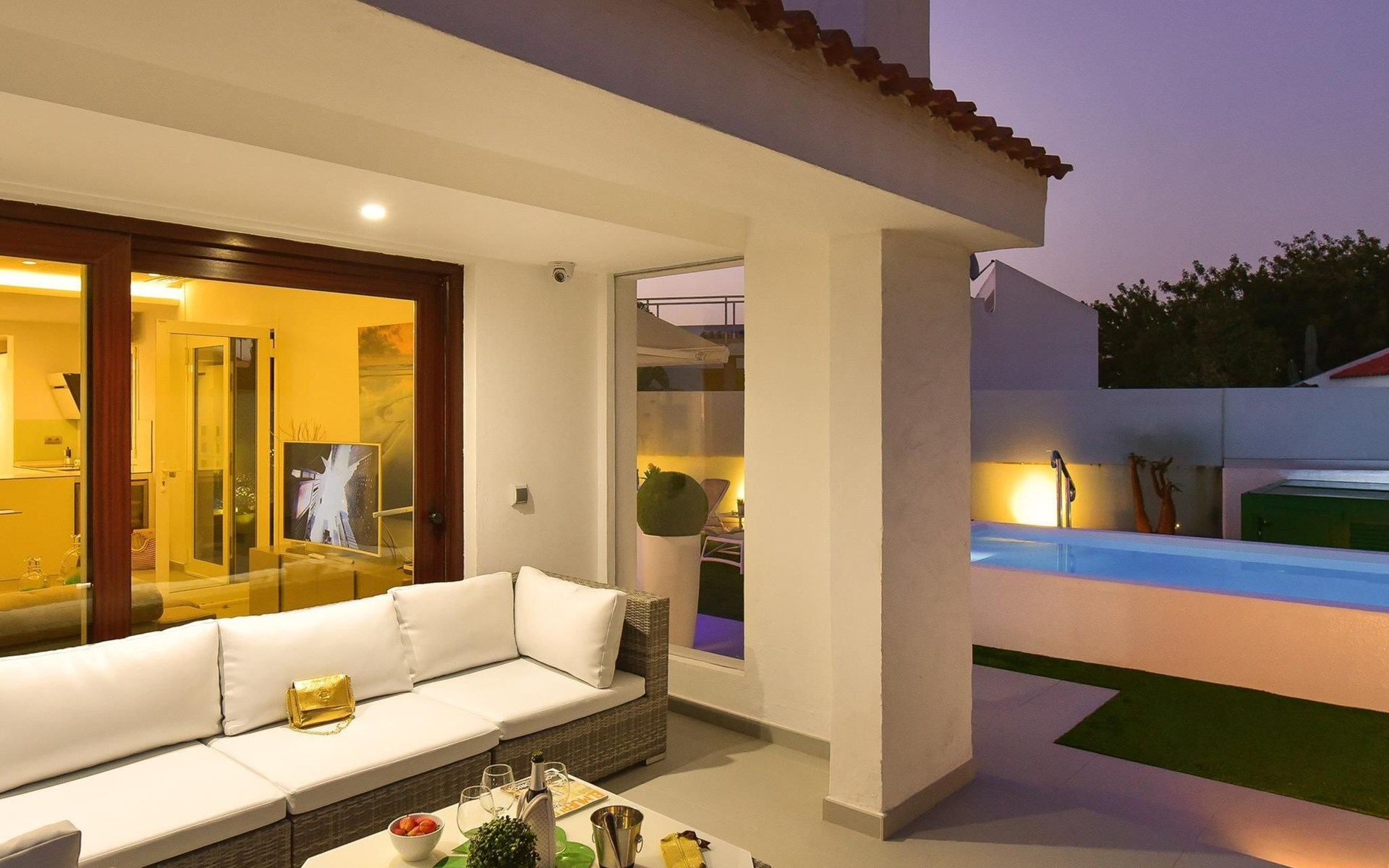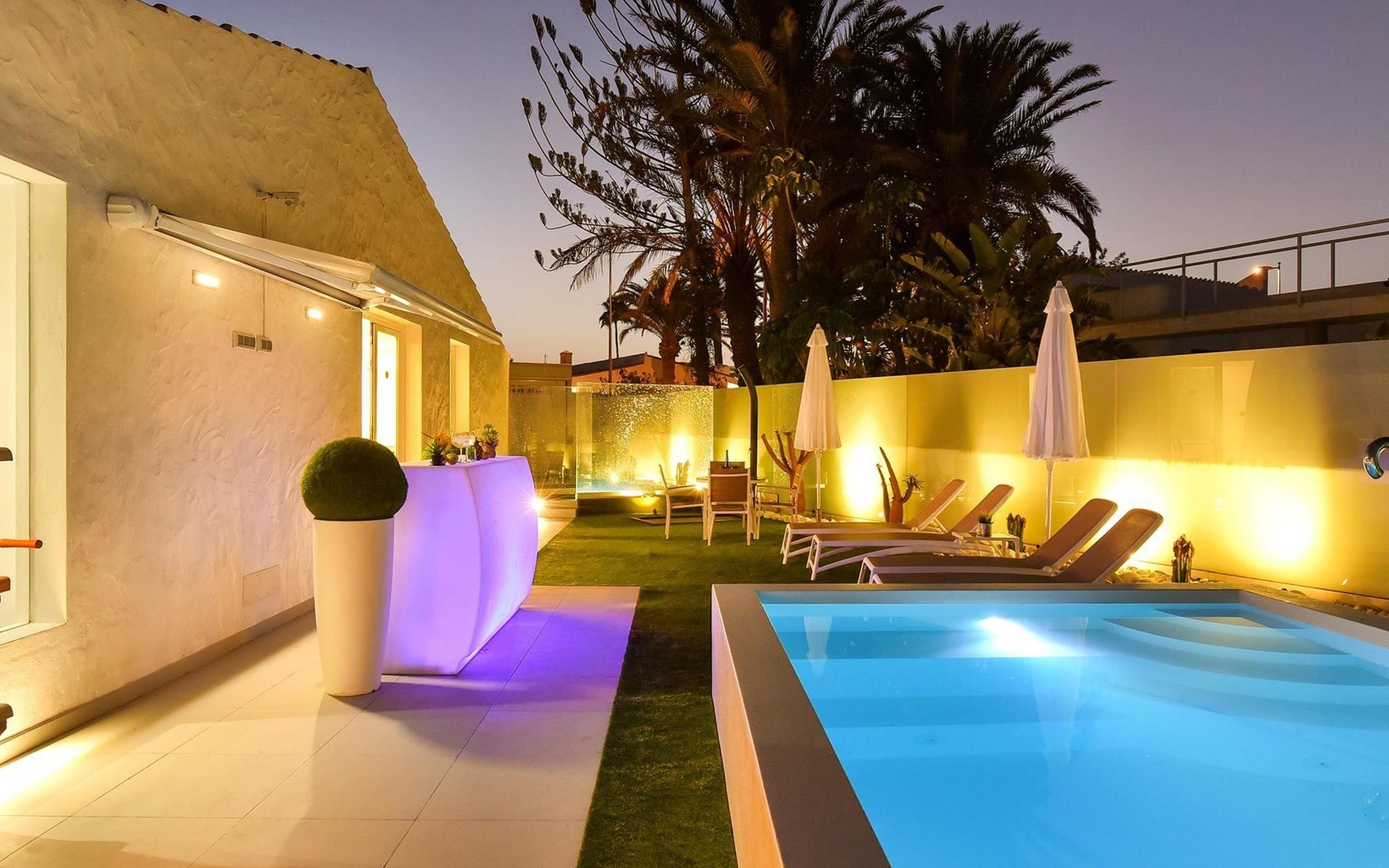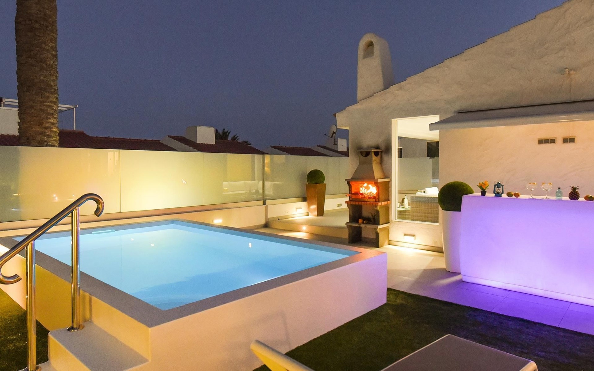 Moderner, komfortabler Bungalow "Villa Rina MC". Im Ortszentrum von Playa del Ingles, in einem Wohnquartier, direkt am Meer. Zur Alleinbenutzung: Schwimmbad (saisonale Verfügbarkeit: 01.Jan. - 31.Dez.). Im Hause: Wireless LAN, Solarium, Waschmaschine, Wäschetrockner. Bushaltestelle "Shopping Center Cita" 400 m. Bitte beachten: Fahrzeug empfohlen. Geeignet für Familien, geeignet für Senioren Babyausstattung auf Anfrage. Der Besitzer akzeptiert keine Jugendgruppen.