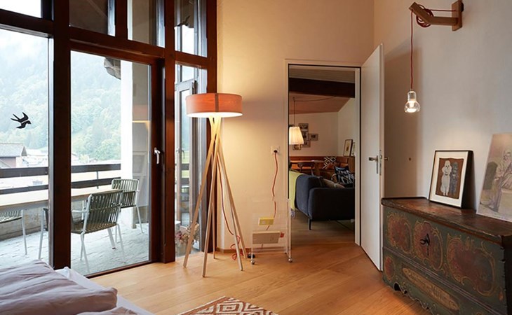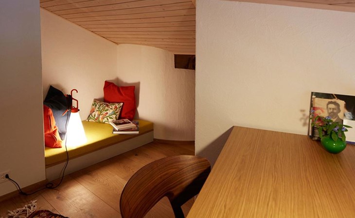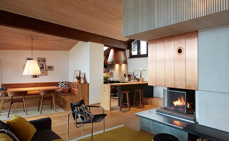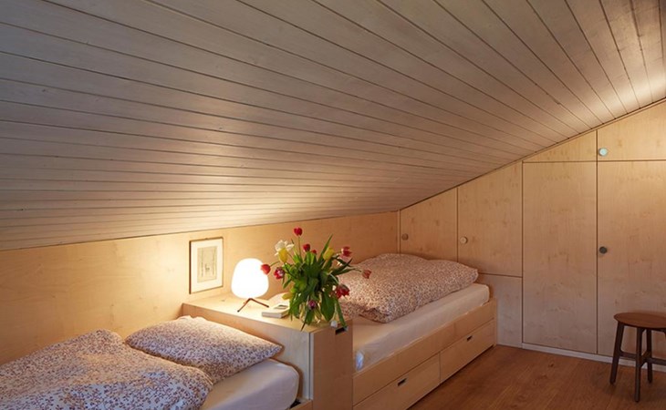 4-Zimmer-Wohnung im 4. Stock auf 2 Etagen (135 m2): 3 Doppelzimmer, Wohnzimmer, 2 x Bad/WC und offene Küche.