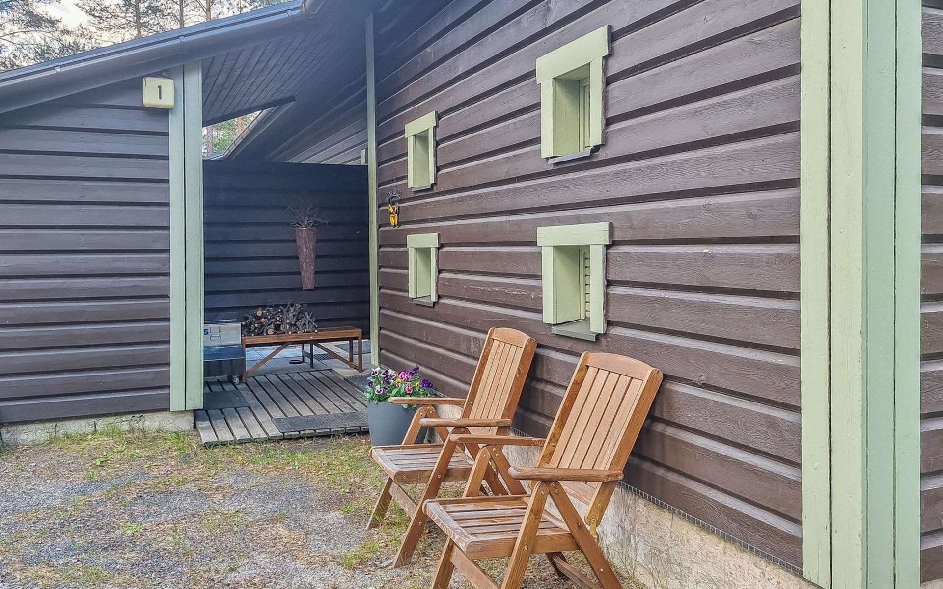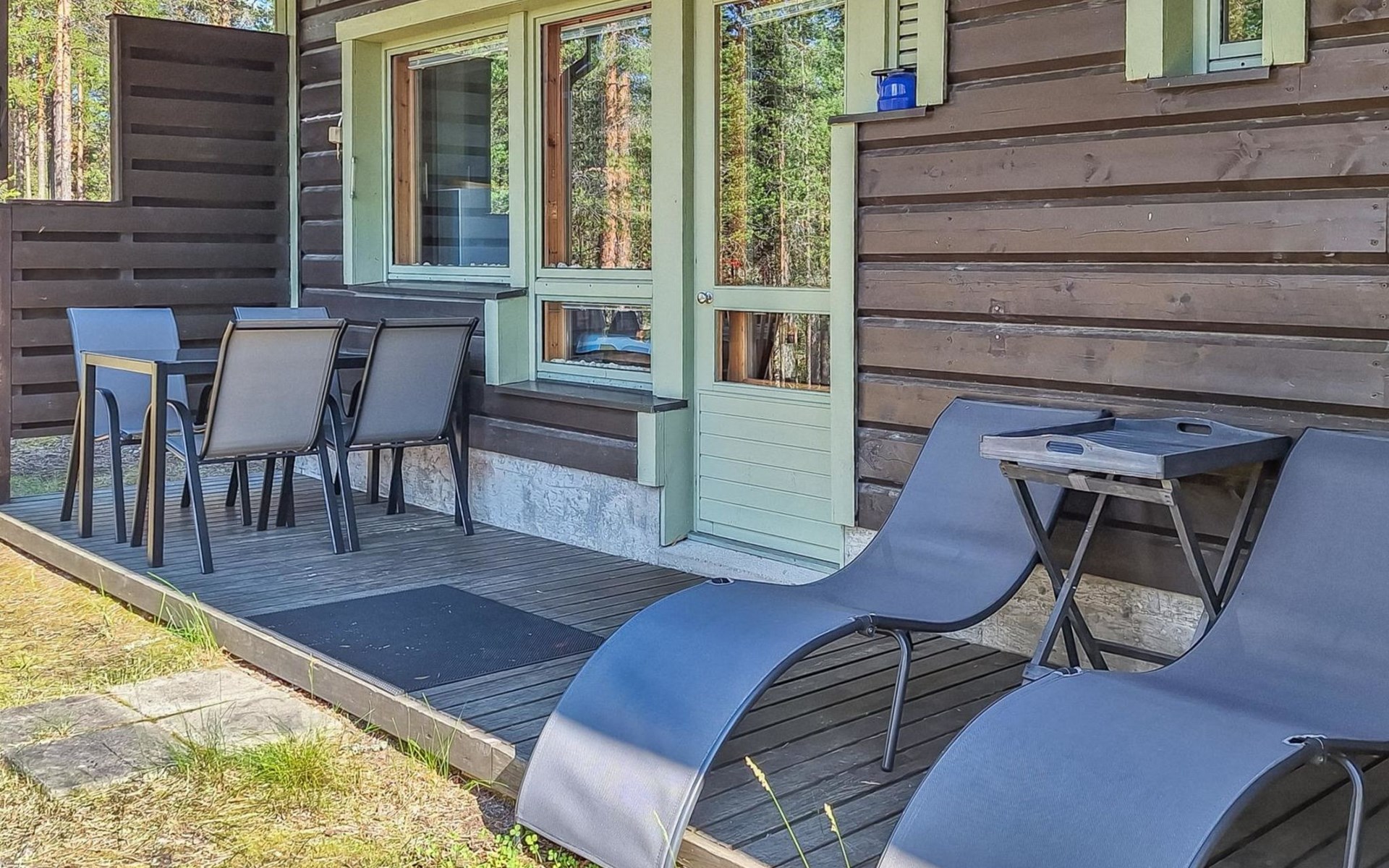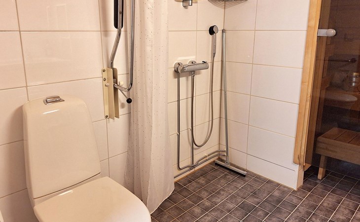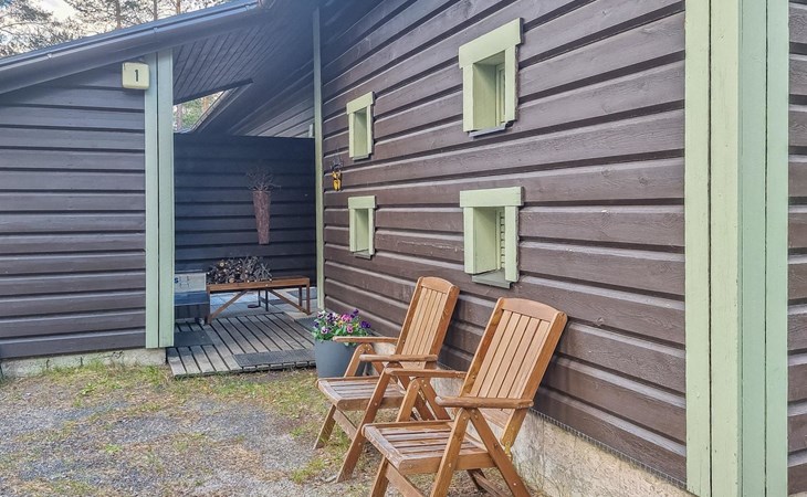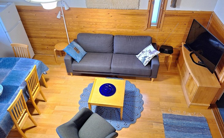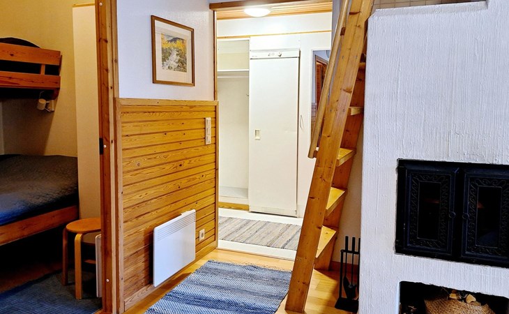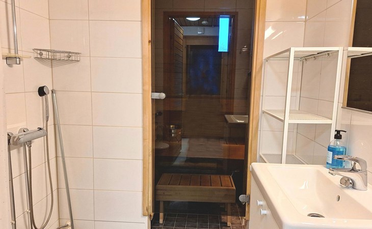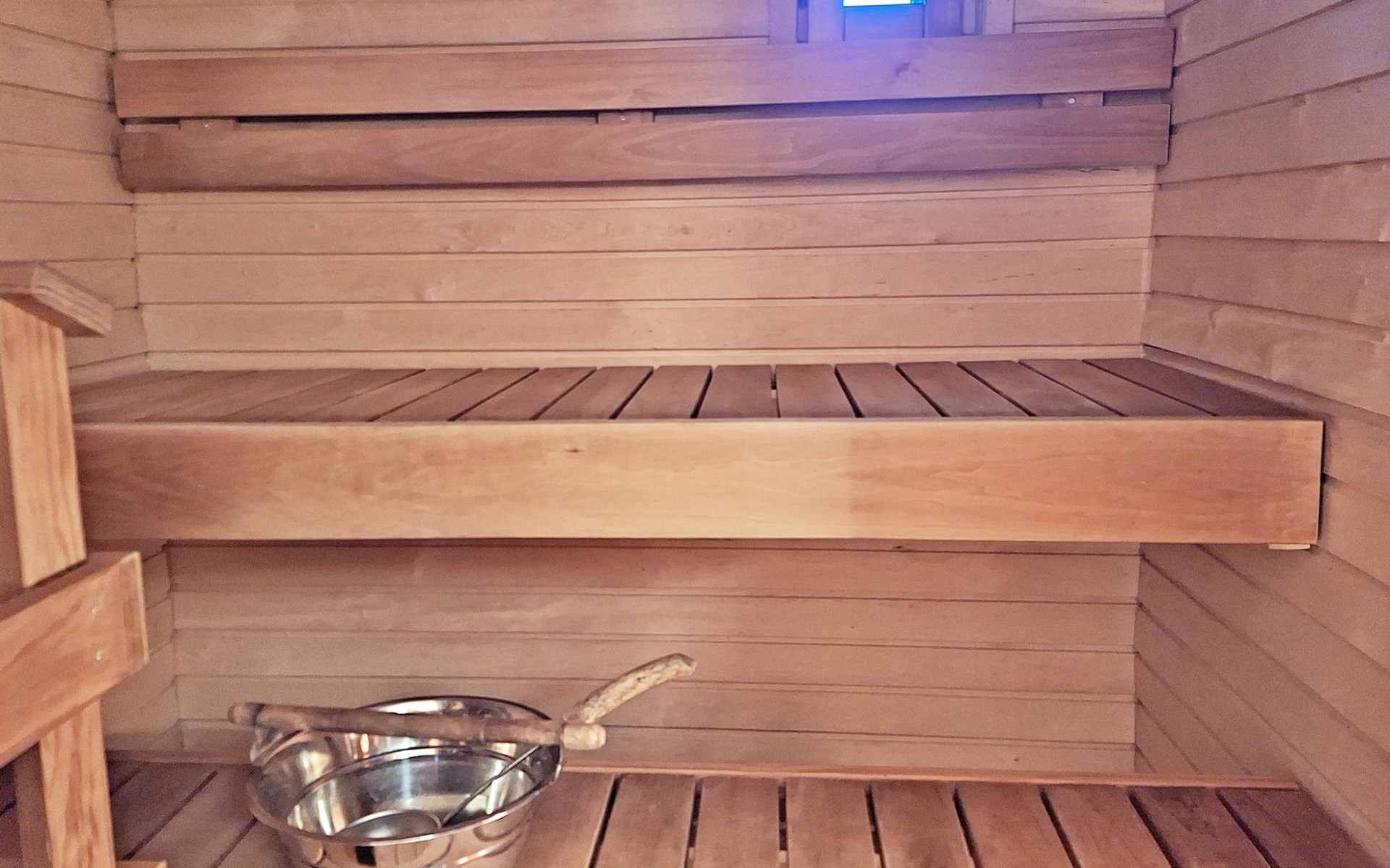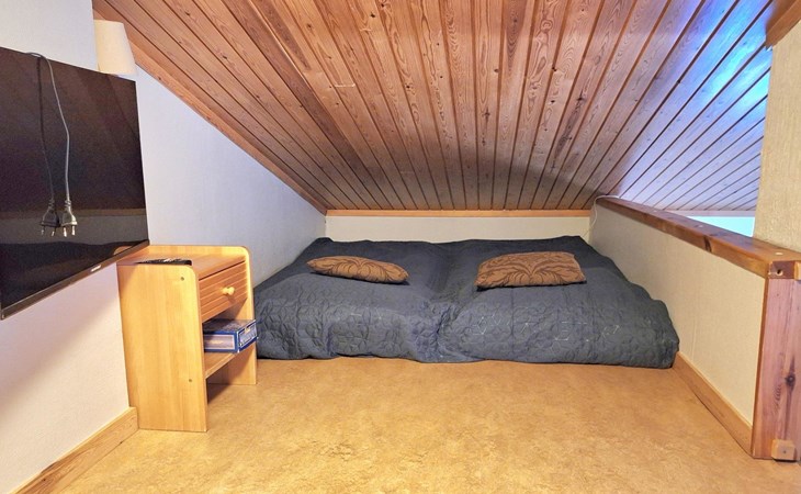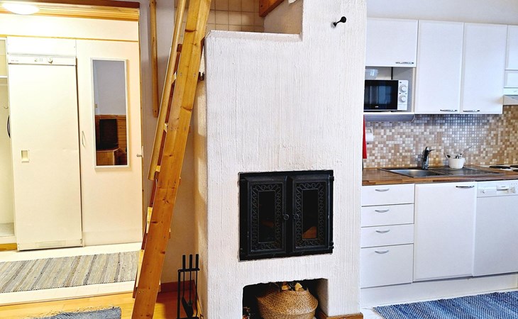 Additionally, there's a sauna, a shower room/ WC, and a loft with two mattresses. However, it's important to note that the stairs leading to the loft are very steep.
