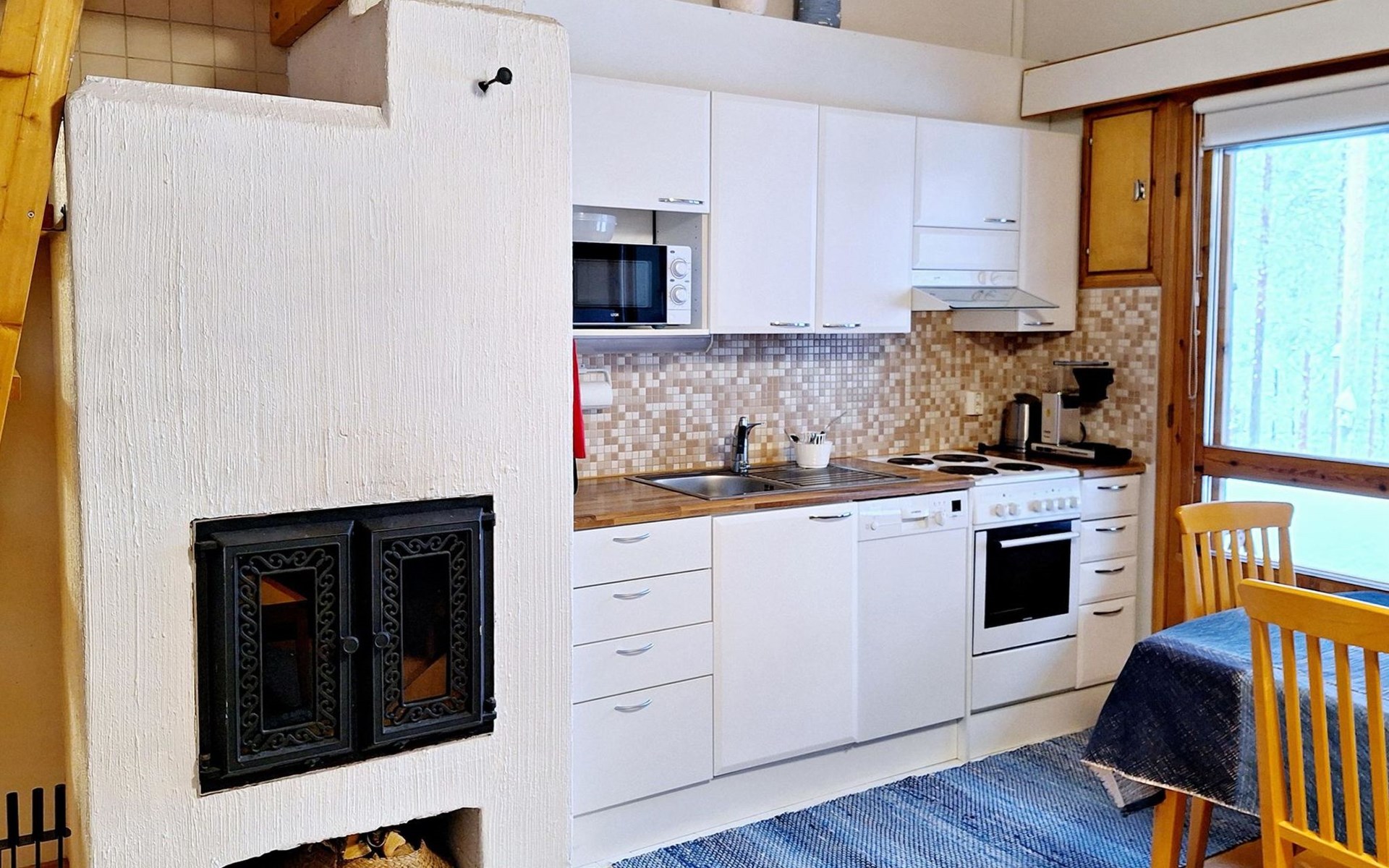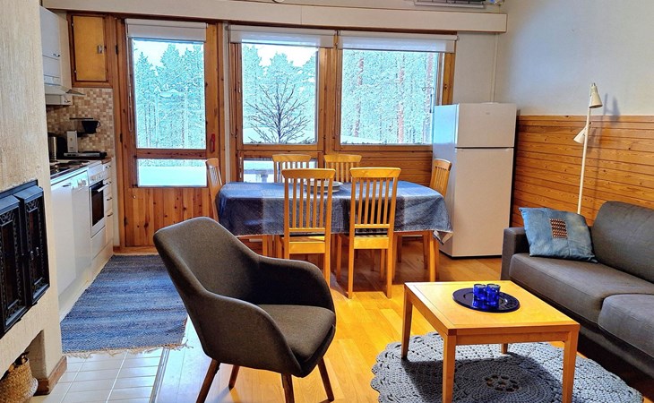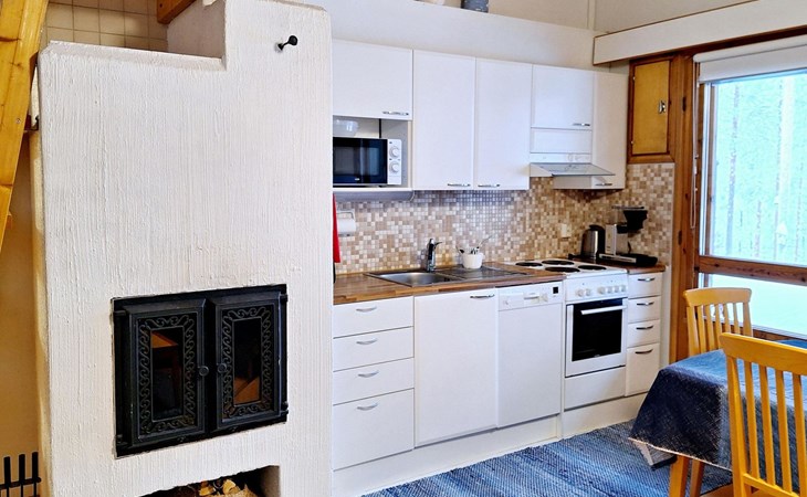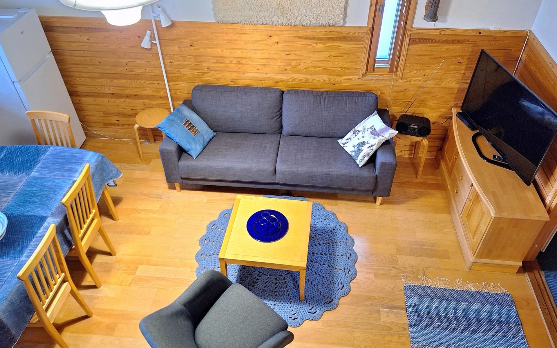 The apartment is cozy and functional, located at the end of a row house of four apartments built in 1996. The apartment itself was renovated in 2023.