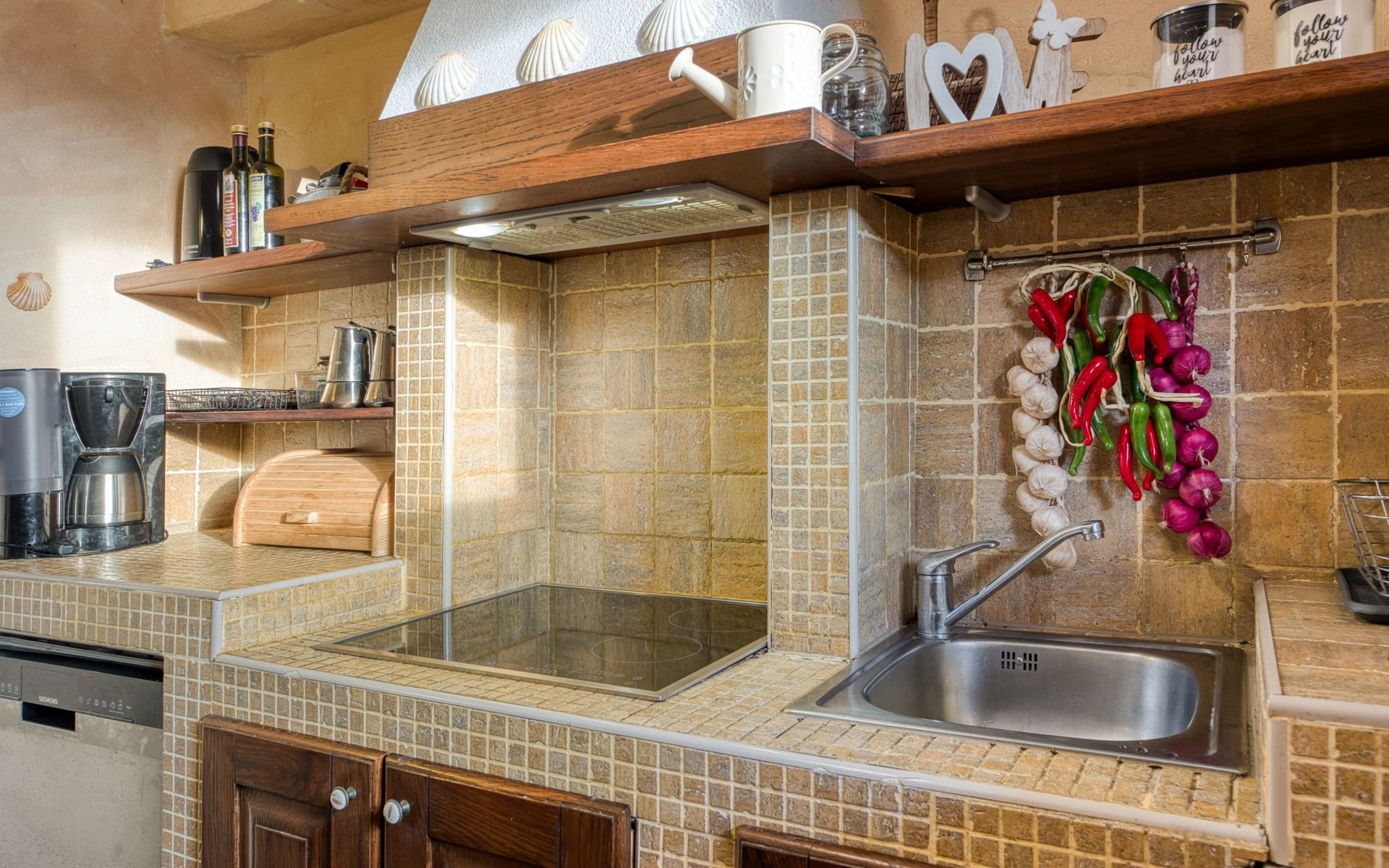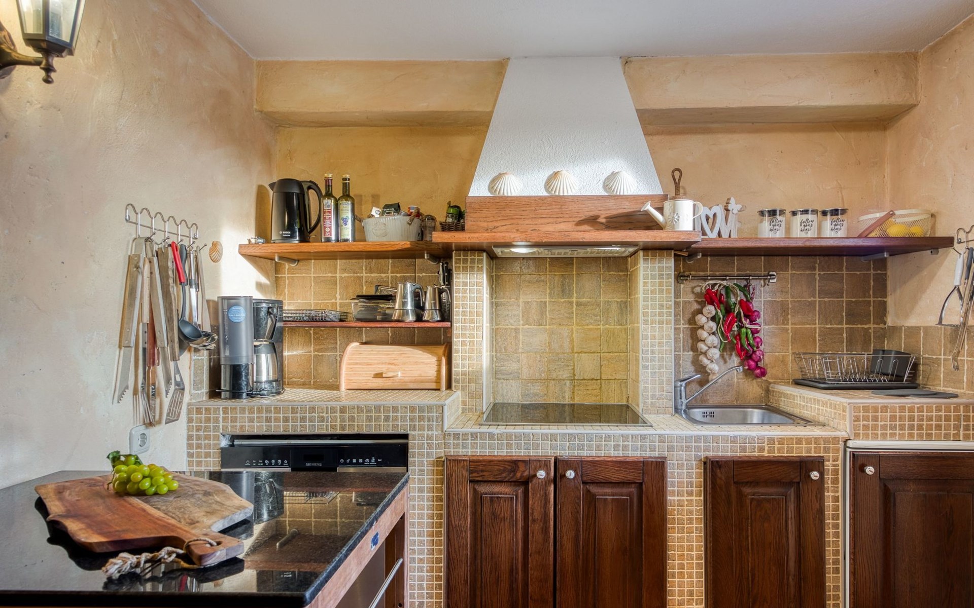 - Voll ausgestattete Küchen mit Waschmaschine, Kühlschrank, Eismaschine, Backofen, Mikrowelle, Geschirrspüler, Kaffeemaschine, Wasserkocher und Grilltoaster.