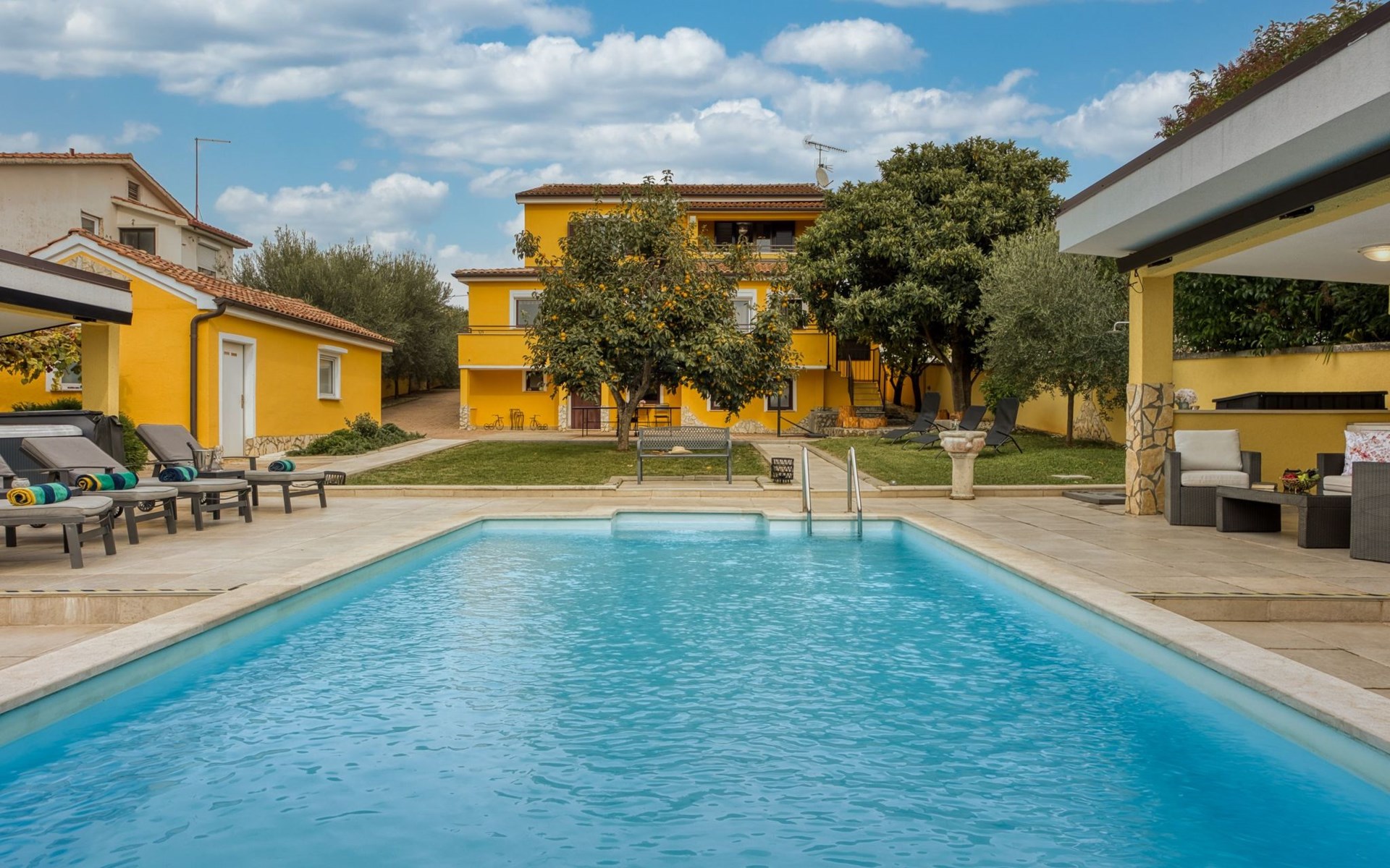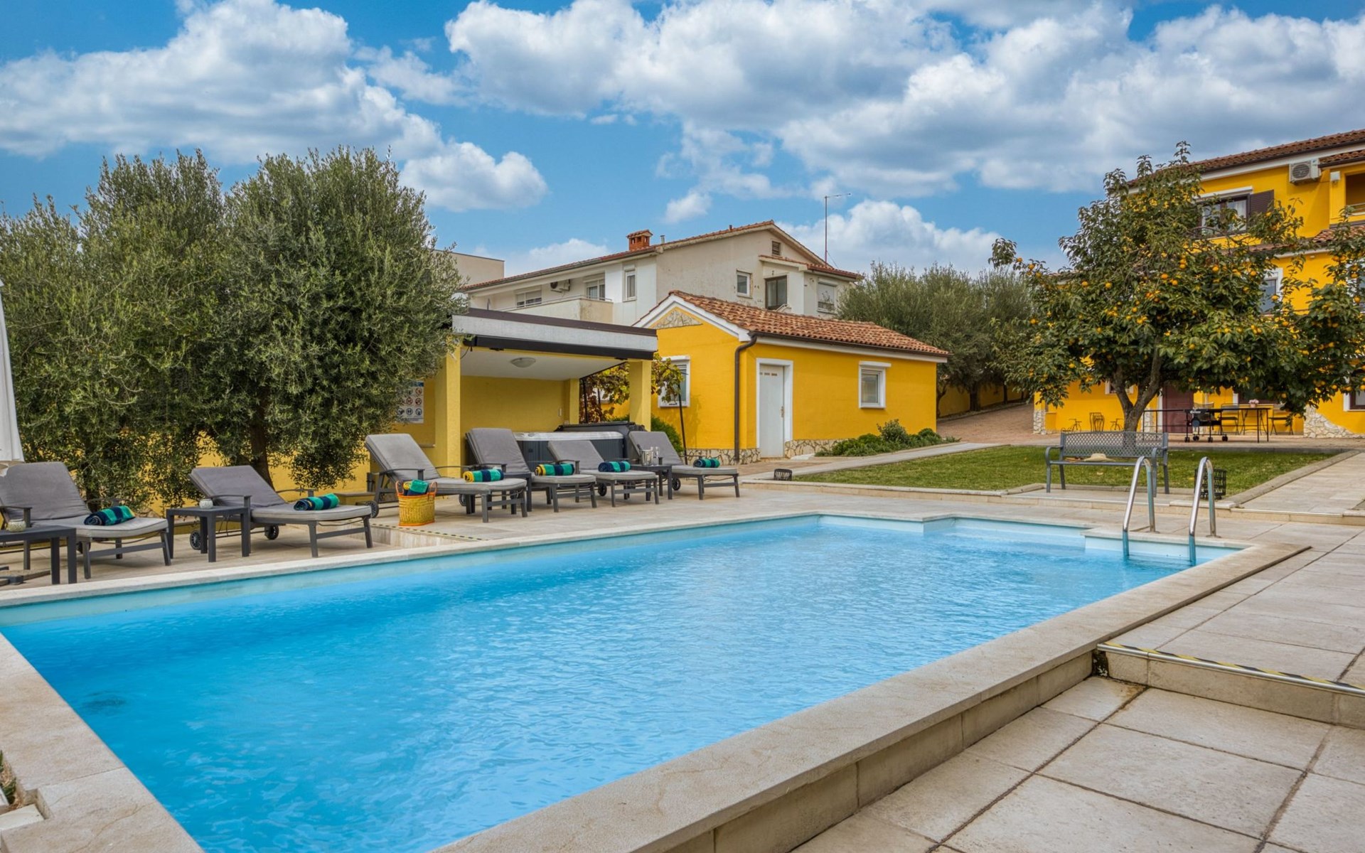 - Geräumiger 43m2 großer Pool mit Außendusche