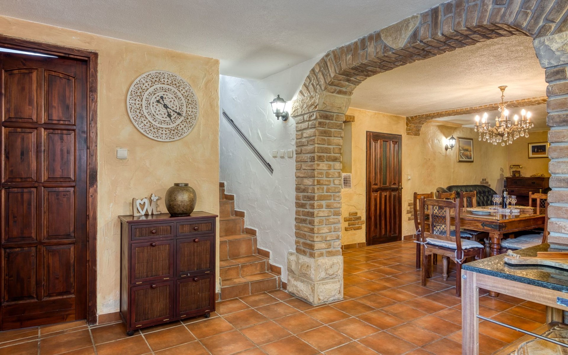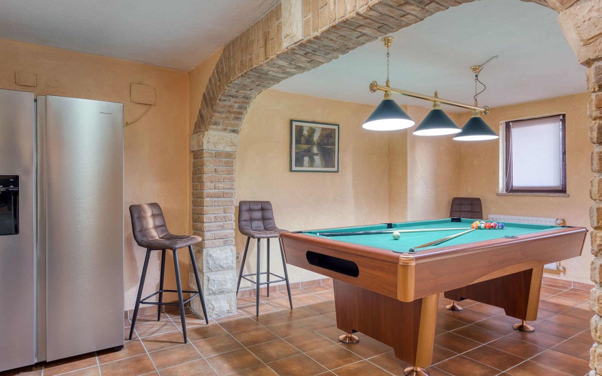 Villa Ambra is divided into 2 apartments, each with its own entrance for privacy. The first apartment is interconnected by internal stairs leading to a spacious common area in the ground floor. This space is perfect for social gatherings, featuring a billiard room, sauna, jacuzzi and a cozy indoor fireplace for those special grilled delicacies.