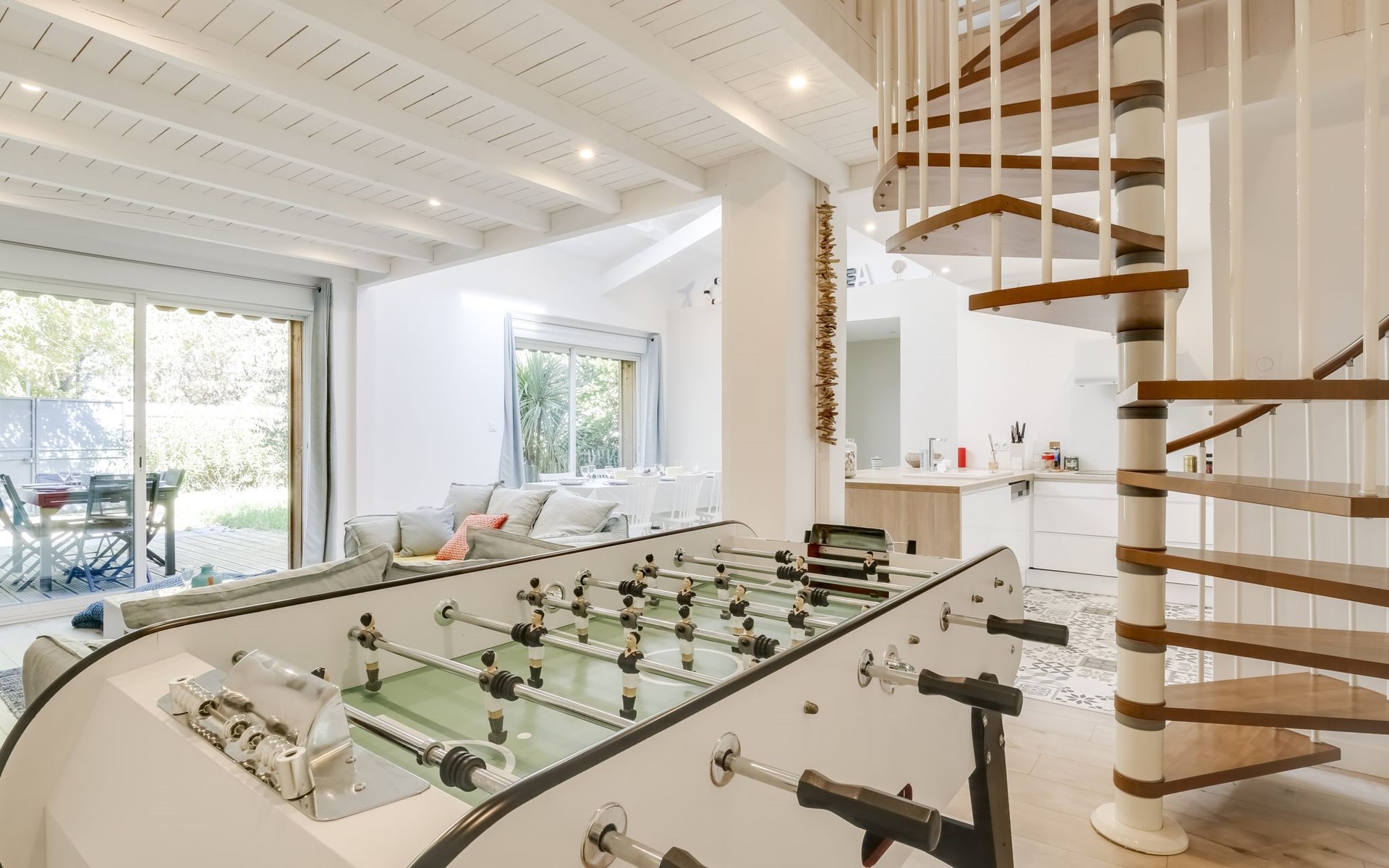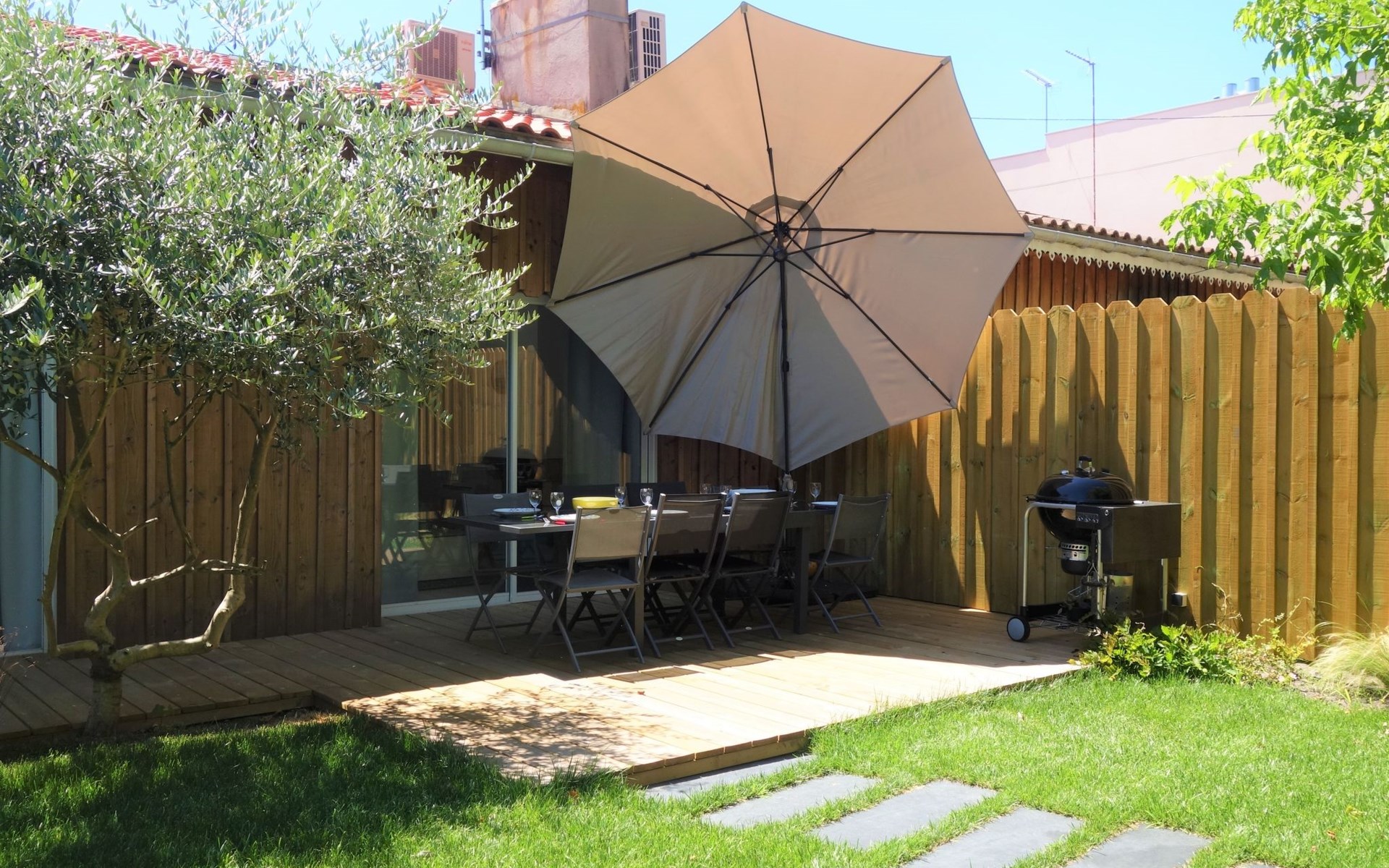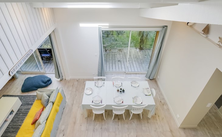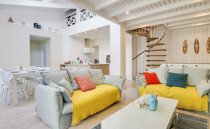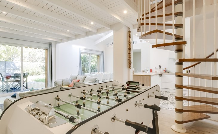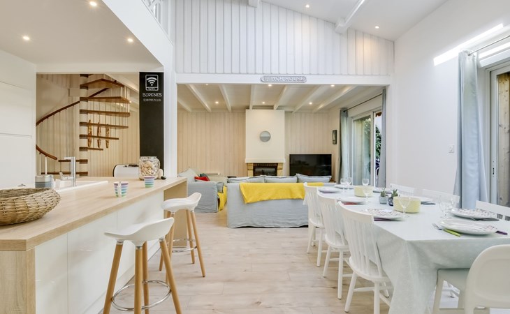 La Teste De Buch 5 km von Arcachon: Sehr modernes, schönes, komfortables Einfamilienhaus "Le Chant Des 4 Sirènes". Im Ortszentrum von La Teste De Buch, exzellente Lage: Absolut zentral und dennoch ruhig, 3.2 km vom Meer, 3.2 km vom Strand. Zur Alleinbenutzung: gepflegter Garten 85 m2 (eingezäunt). Im Hause: Tischfussball. Parkplatz, öffentliche Parkplätze auf der Strasse. Einkaufsgeschäft 850 m, Lebensmittelgeschäft, Supermarkt 350 m, Einkaufszentrum 850 m, Restaurant 400 m, Bar 150 m, Bäckerei 300 m, Café 120 m, Fahrradverleih 350 m, Zentrum zu Fuss in 3 Minuten erreichbar, Bushaltestelle "La Gare de La Teste" 50 m, Bahnstation "La Teste De Buch" 50 m, Sandstrand "Plage de l'Aiguillon" 3.2 km, Park "De La Chêneraie" 2.4 km, Tauchzentrum 3.3 km. Sporthafen 2 km, Golfplatz (18 Loch) 4 km, Surfschule 6.4 km. Nahe gelegene Sehenswürdigkeiten: Aqualand 4.9 km, Kid Park 4.7 km, Dune du Pyla 9.6 km, Navette maritime pour le Cap Ferret 4.4 km, Marché Municipal 1 km, Réserve Ornithologique du Teich 10.9 km. Bekannte Seen in der Umgebung sind gut erreichbar: Lac de la Magdeleine 6 km, Lac de Cazaux 20.4 km, Lac de Sanguinet 22.1 km. Die Schlüsselübergabe findet bei der Agentur Interhome in Arcachon statt, 5 km.