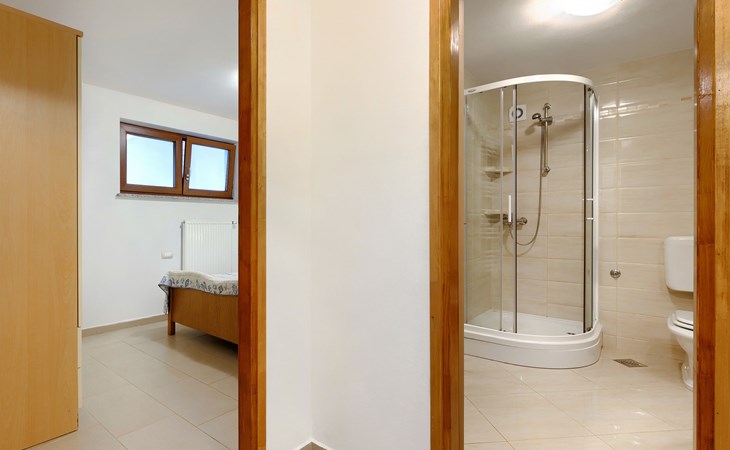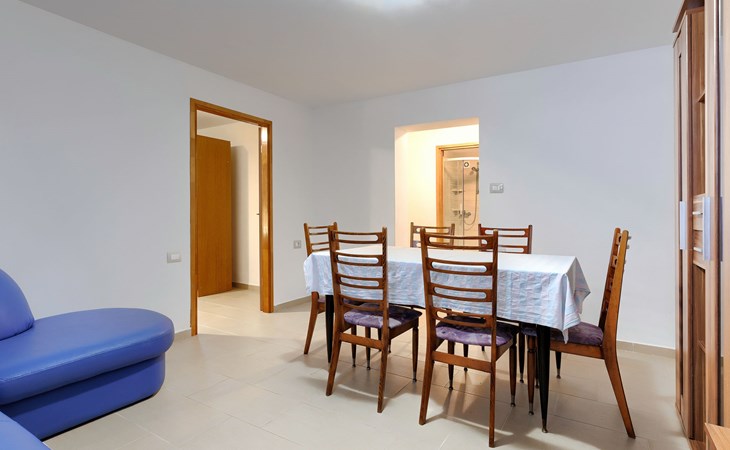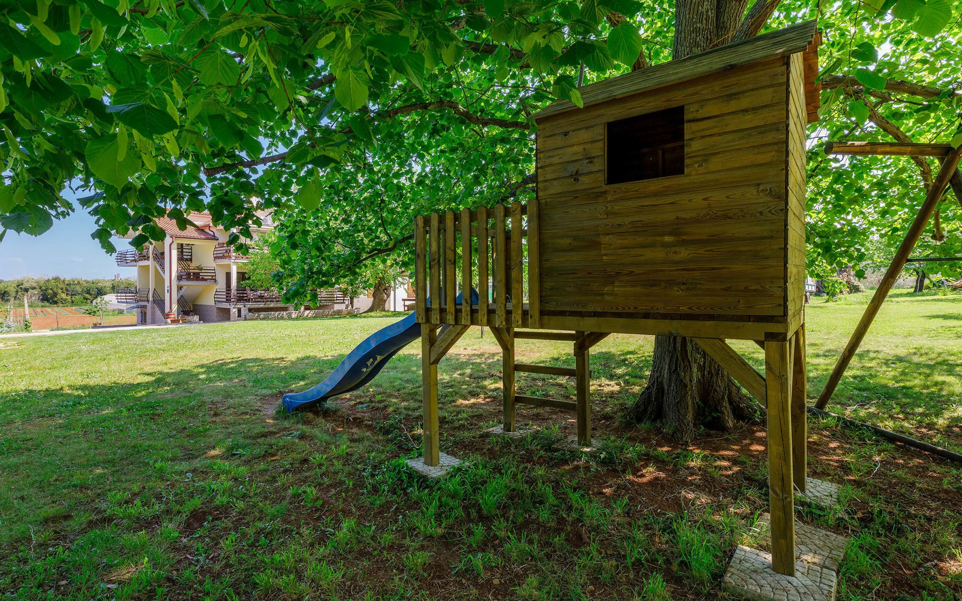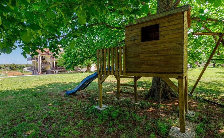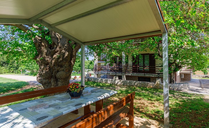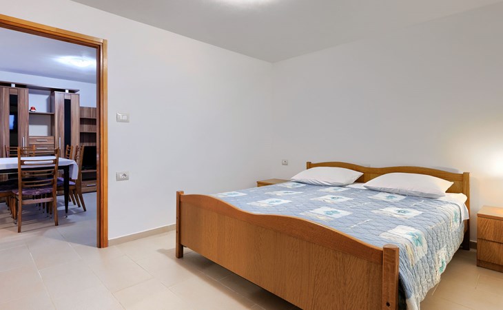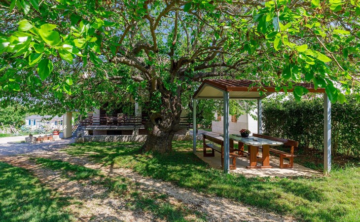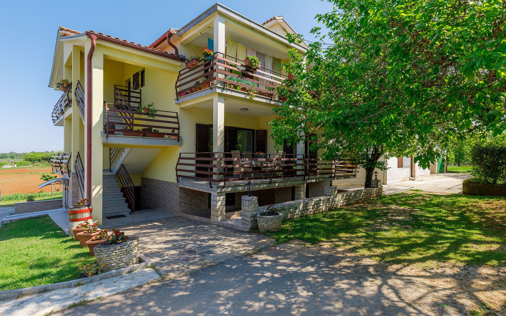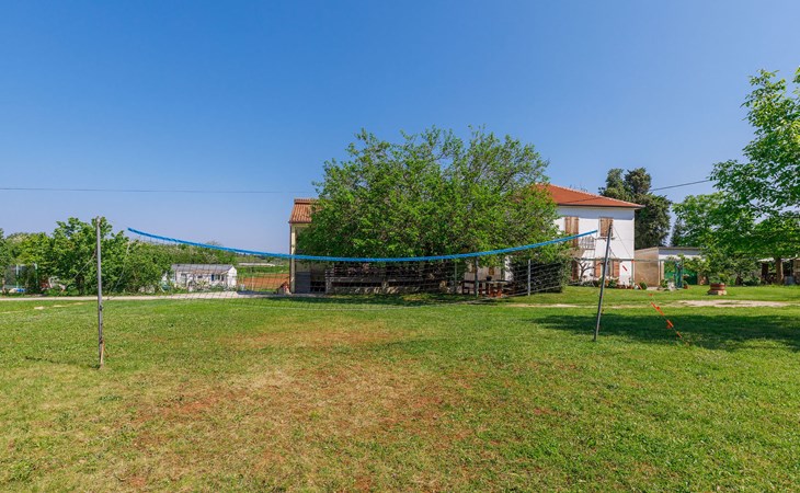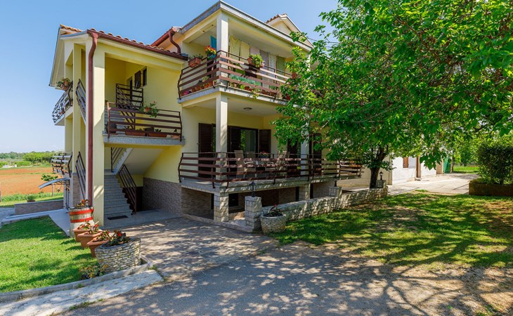 Mehrfamilienhaus "Vesela", umgeben von Wiesen. Ruhige, sonnige Lage, 800 m vom Meer, vom Strand, im Grünen. Zur Mitbenutzung: Grundstück 1'300 m2, Garten mit Bäumen, Wiese. Badminton, Grill, Kinderspielplatz (Schaukel). Im Hause: Internetzugang, Trampolin. Parkplatz beim Haus auf dem Grundstück. Einkaufsgeschäft 1.2 km, Restaurant 1.2 km, Bushaltestelle 8.2 km, Steinstrand 1 km, Felsstrand 800 m. Golfplatz (18 Loch) 5 km, Tennis 2 km, Wanderwege ab Haus 500 m. Auf dem Kinderspielplatz Badmintonnetz.