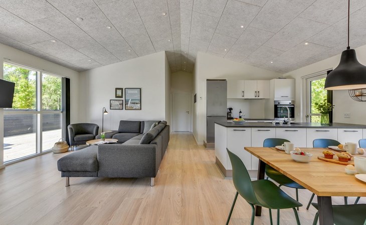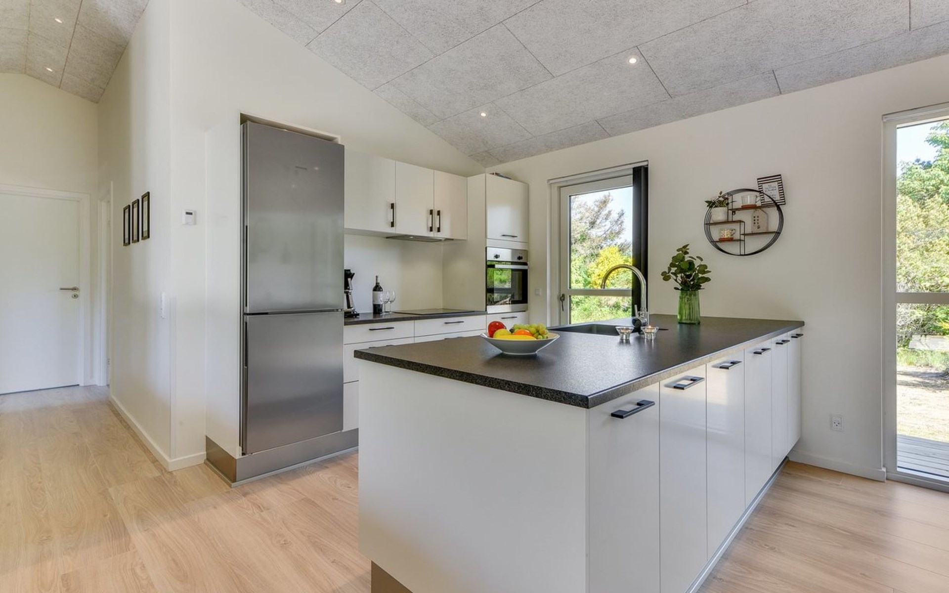 Einfamilienhaus, Baujahr 2019. 1.8 km vom Meer. Zur Alleinbenutzung: naturbelassenes Grundstück 2'381 m2. Terrasse (110 m2). Im Hause: Sauna, Waschmaschine, Wäschetrockner. Parkplatz beim Haus. E-Ladestation. Lebensmittelgeschäft 1.9 km. Golfplatz 700 m. Der Besitzer akzeptiert keine Jugendgruppen.