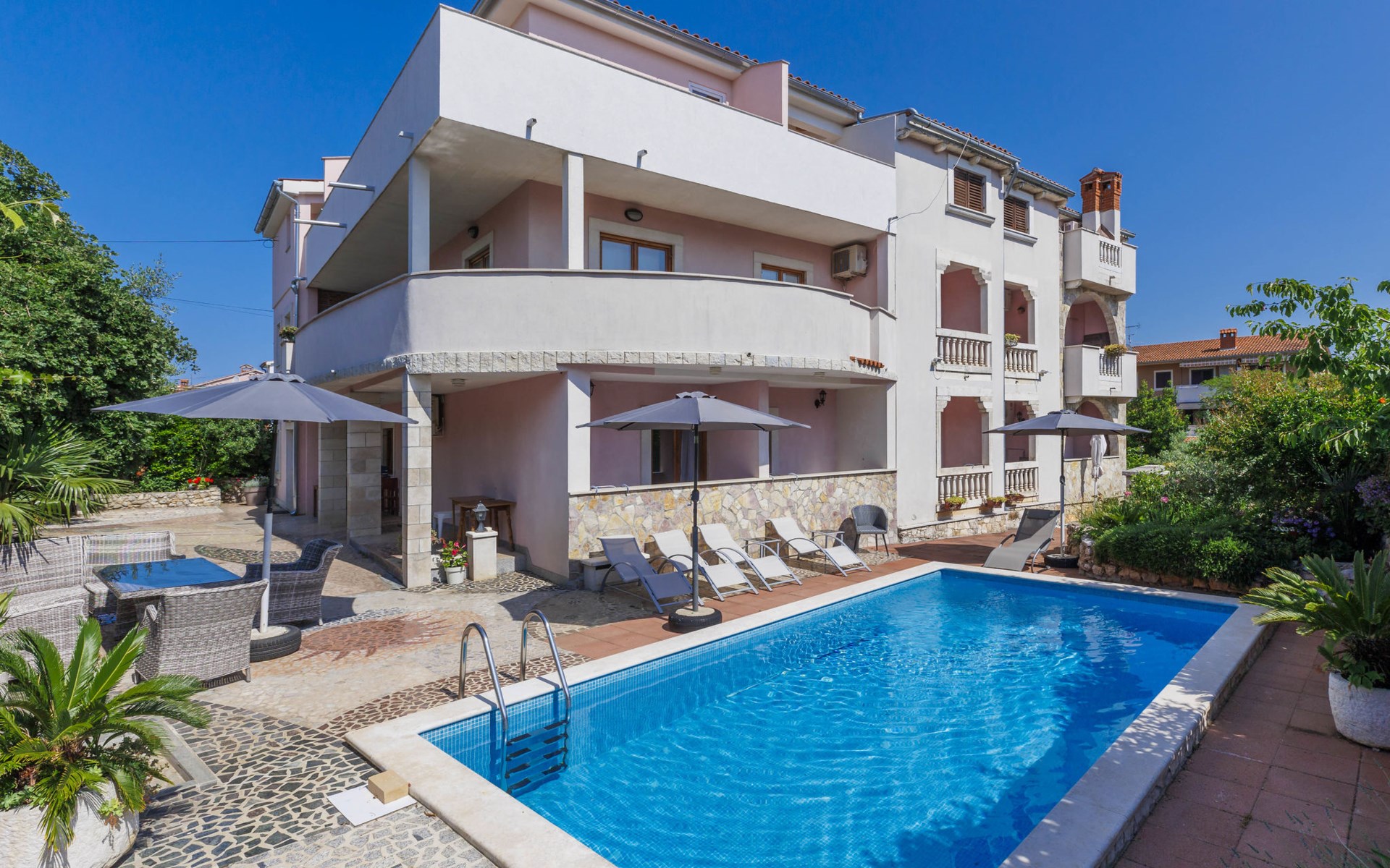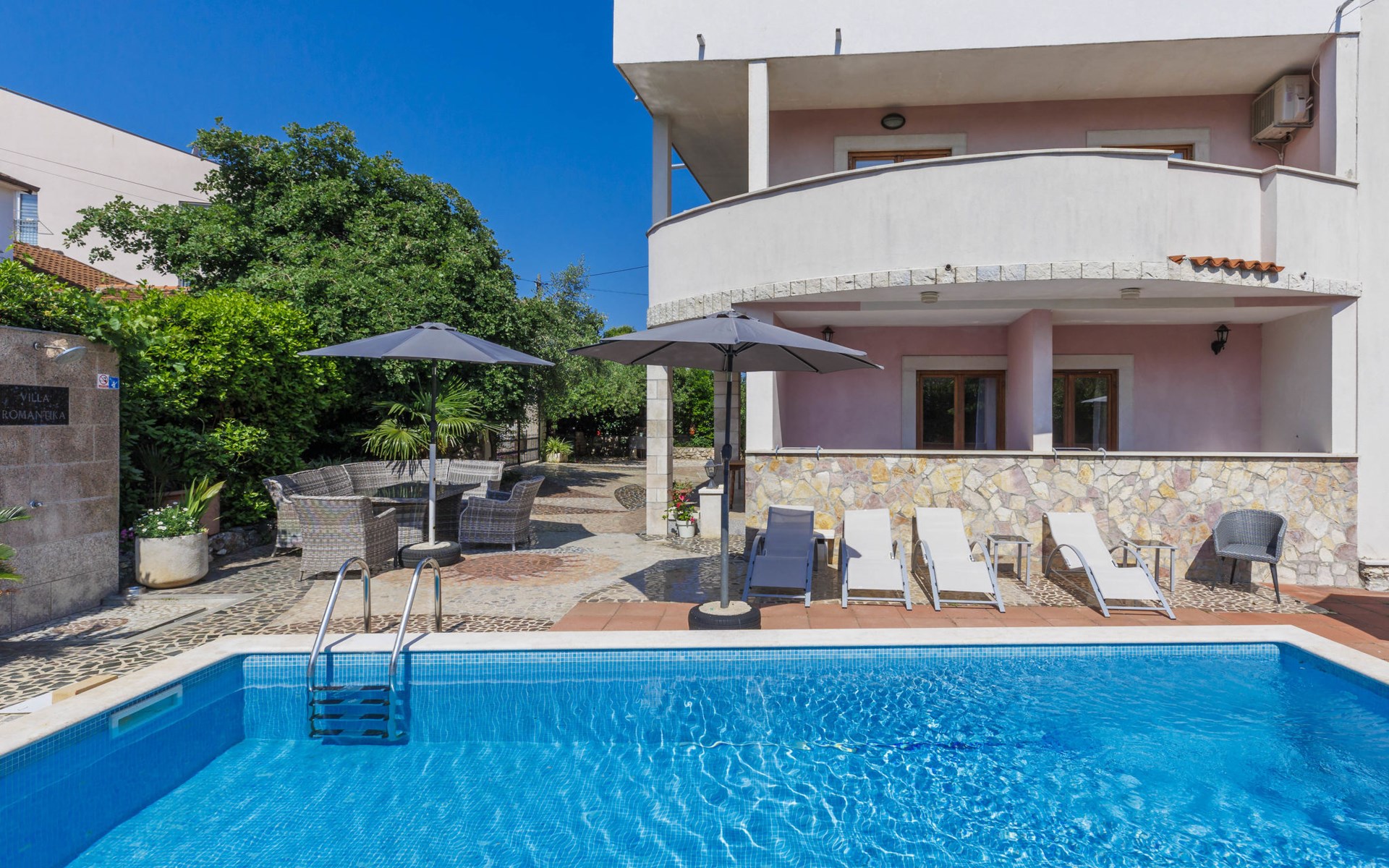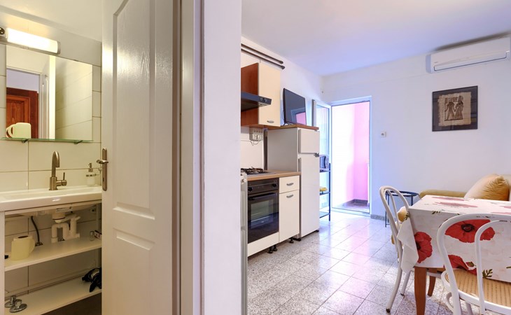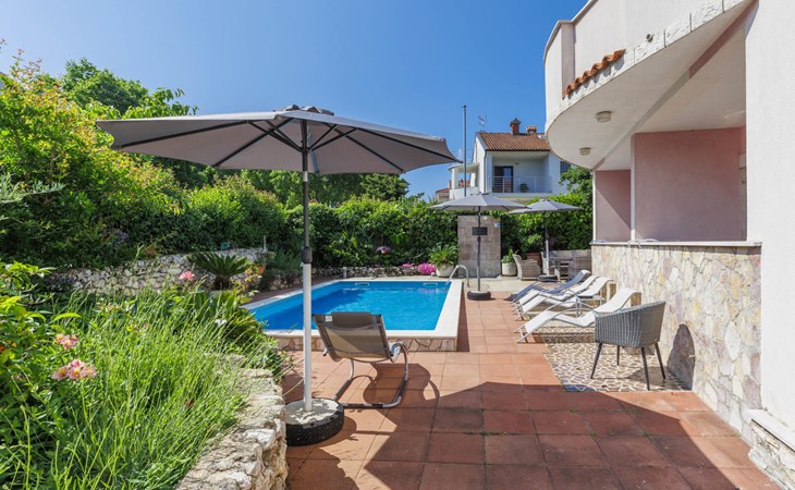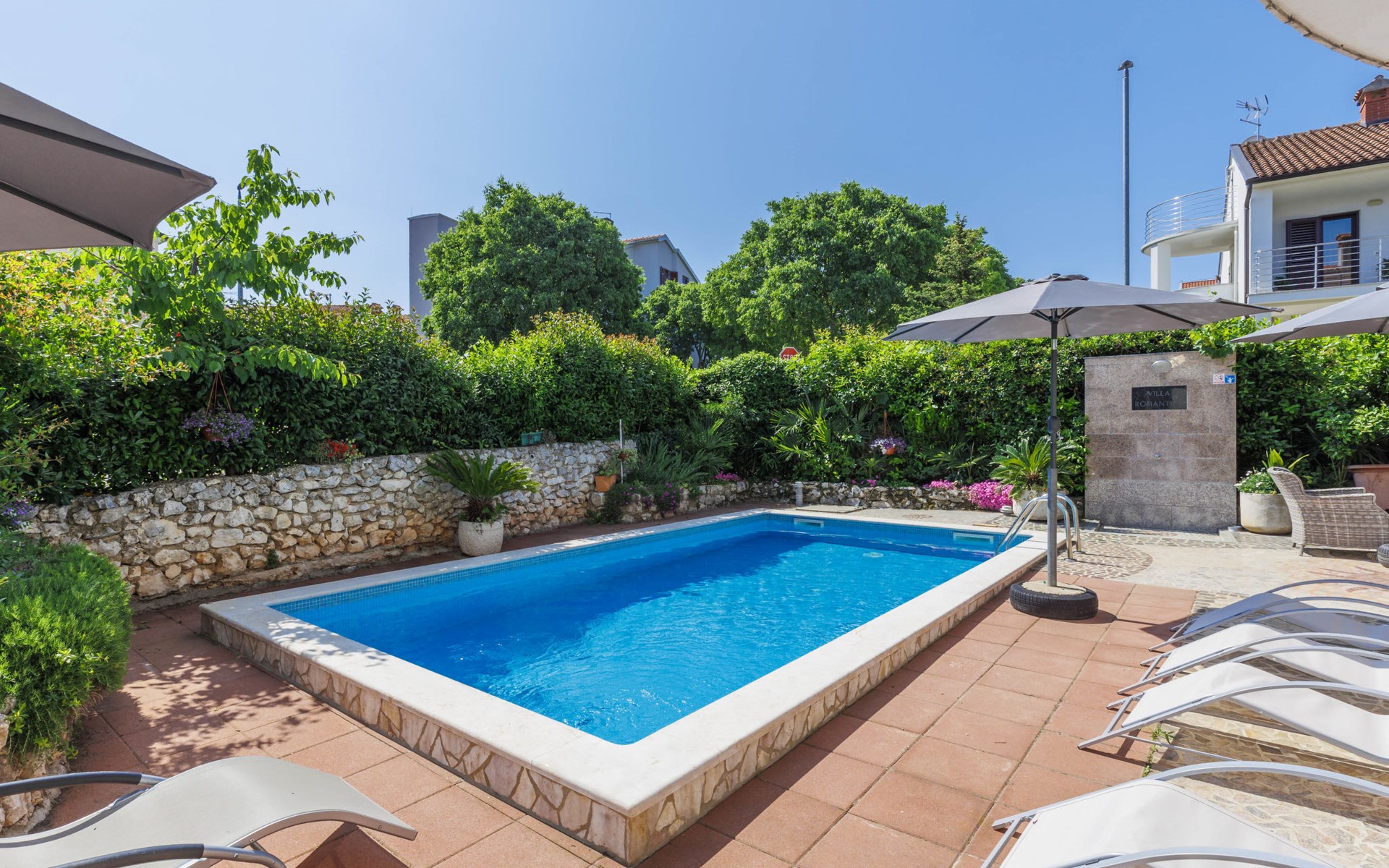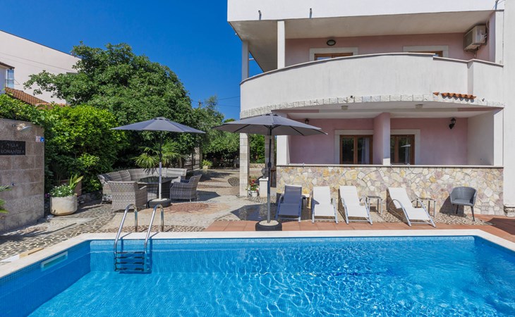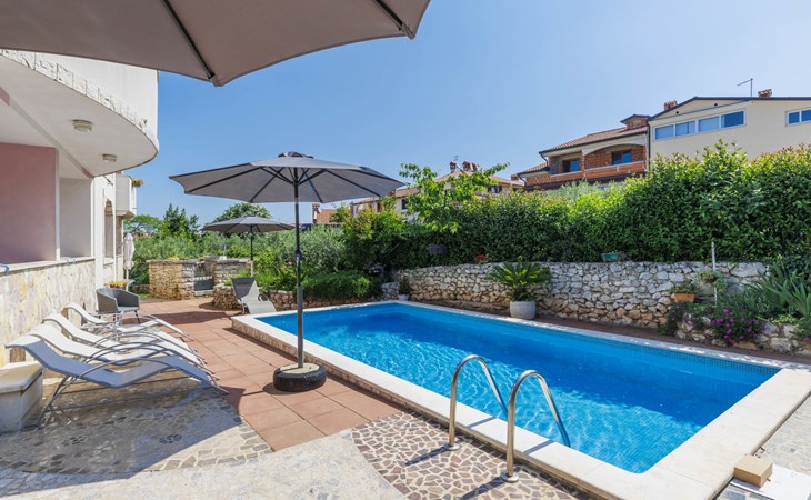 Mehrfamilienhaus "Romantika". 2 km vom Zentrum von Rovinj, ruhige, sonnige Lage, 500 m vom Meer, 500 m vom Strand. Zur Mitbenutzung: Grundstück 930 m2 (eingezäunt), Schwimmbad eckig (3 x 7 m, 24 m2, 140 cm tief, saisonale Verfügbarkeit: 01.Mai. - 01.Okt.). Grill. Im Hause: Internetzugang, Einstellraum für Fahrräder. Parkplatz beim Haus auf dem Grundstück. Einkaufsgeschäft 200 m, Restaurant 300 m, Bushaltestelle 1.5 km, Kieselstrand, Felsstrand 500 m. Tennis 1.5 km, Reitstall 4 km, Wanderwege ab Haus 100 m, Radweg, Kinderspielplatz 150 m.