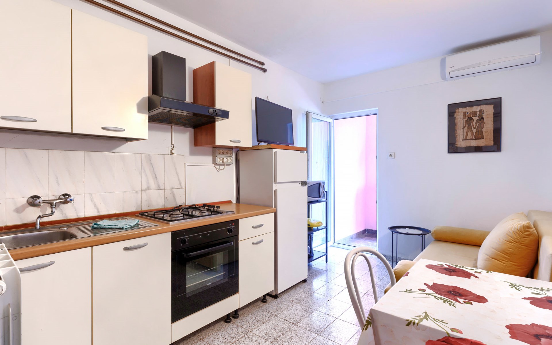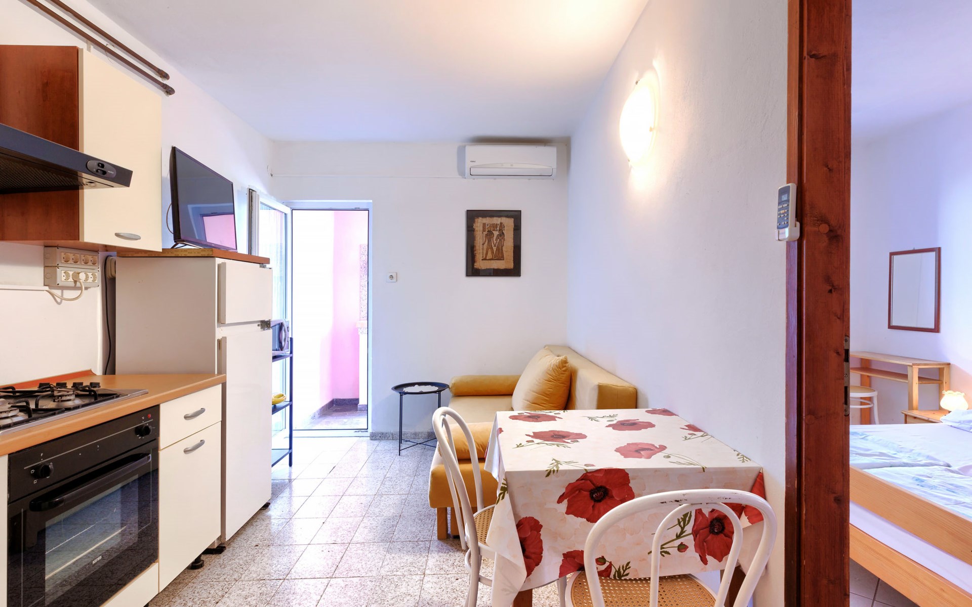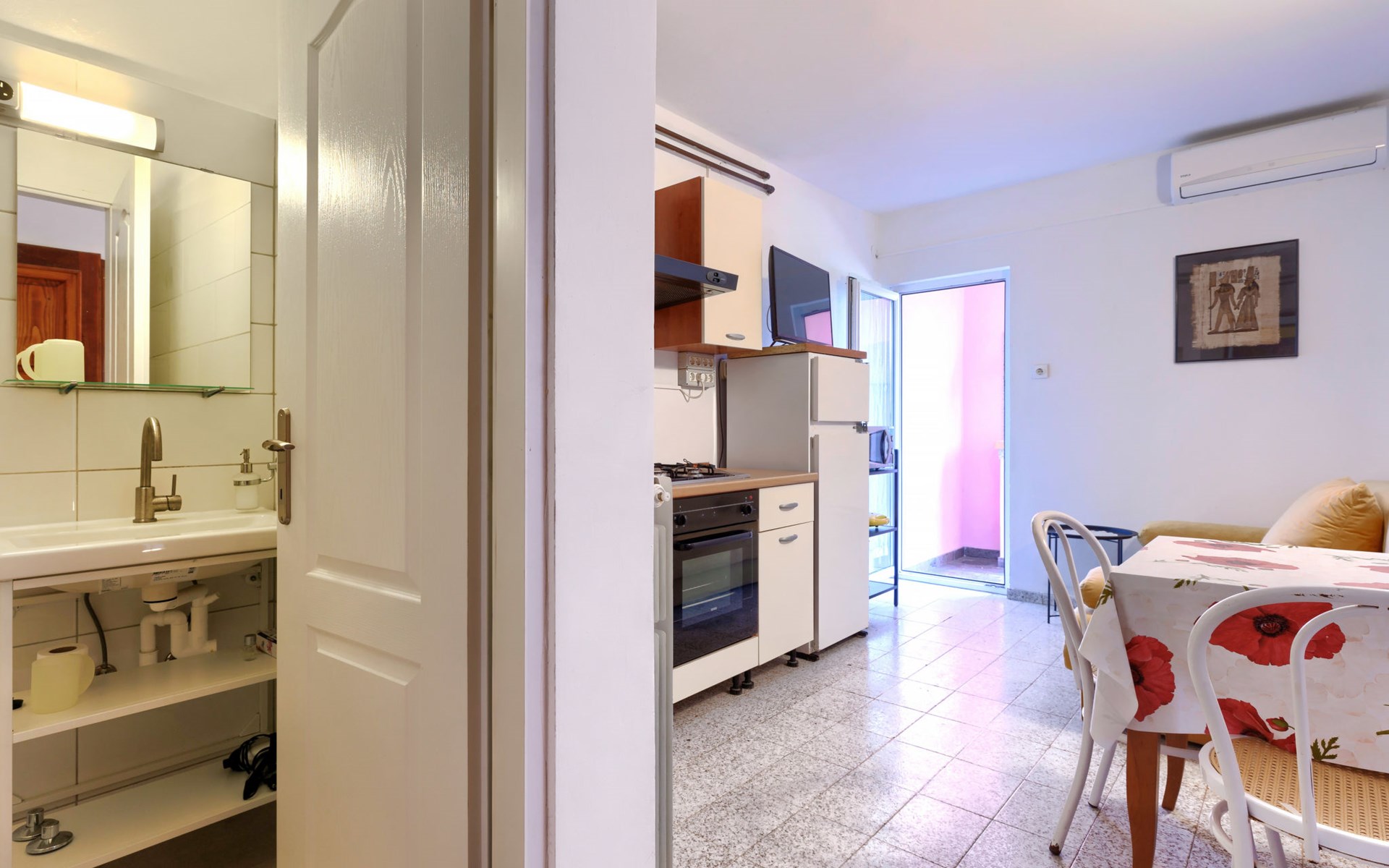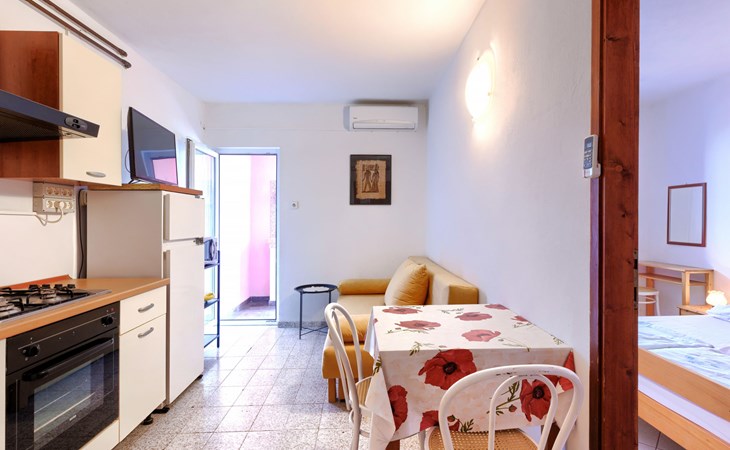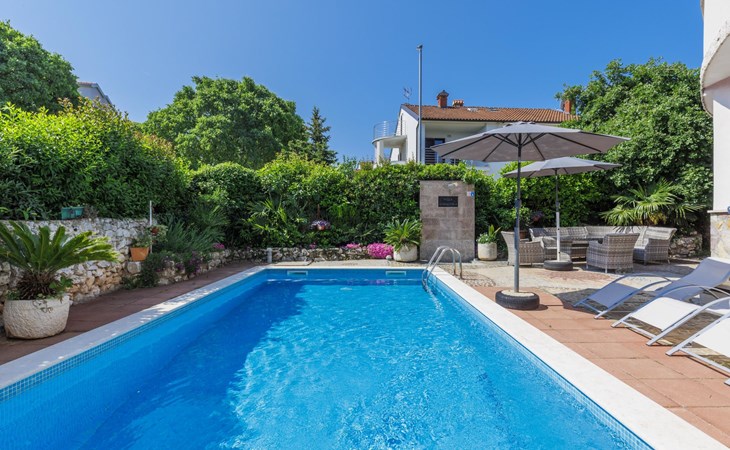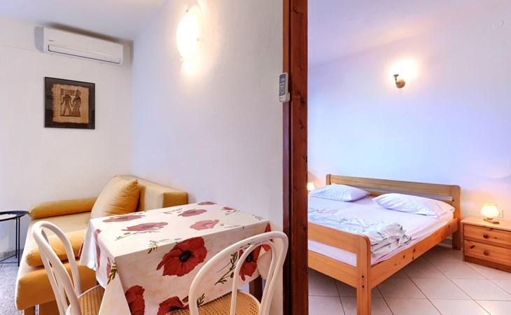 Mehrfamilienhaus "Romantika". 2 km vom Zentrum von Rovinj, ruhige, sonnige Lage, 500 m vom Meer, 500 m vom Strand. Zur Mitbenutzung: Grundstück 930 m2 (eingezäunt), Schwimmbad eckig (3 x 7 m, 24 m2, 140 cm tief, saisonale Verfügbarkeit: 01.Mai. - 01.Okt.). Grill. Im Hause: Internetzugang, Einstellraum für Fahrräder. Parkplatz beim Haus auf dem Grundstück. Einkaufsgeschäft 200 m, Restaurant 300 m, Bushaltestelle 1.5 km, Kieselstrand, Felsstrand 500 m. Tennis 1.5 km, Reitstall 4 km, Wanderwege ab Haus 100 m, Radweg, Kinderspielplatz 150 m.
