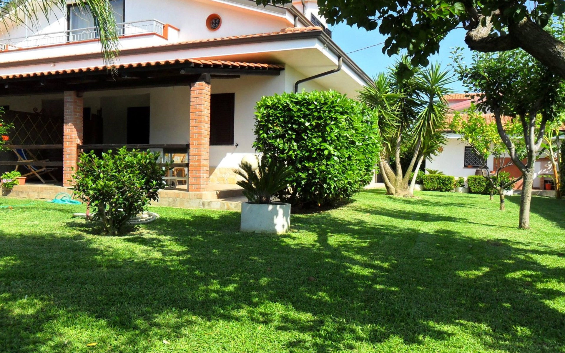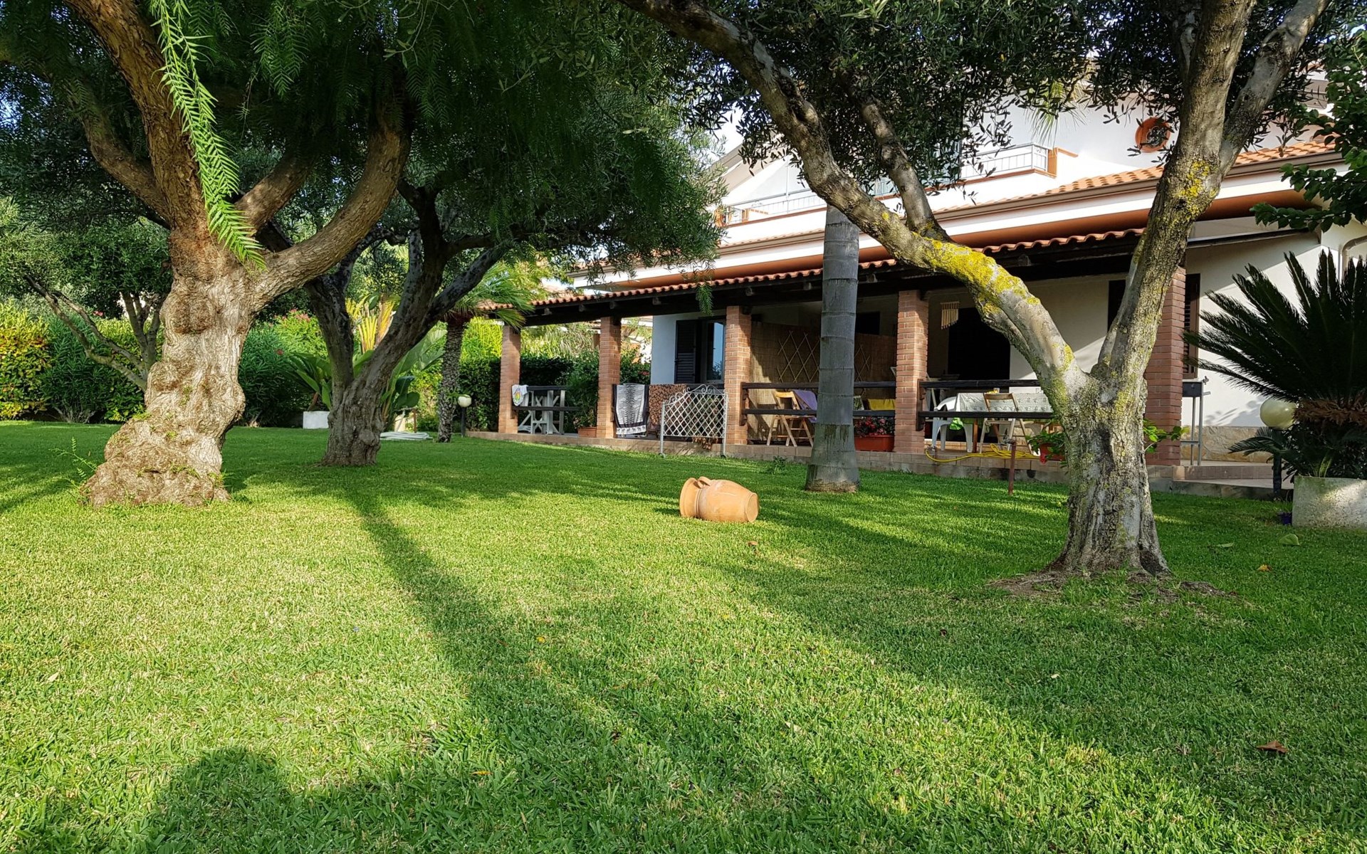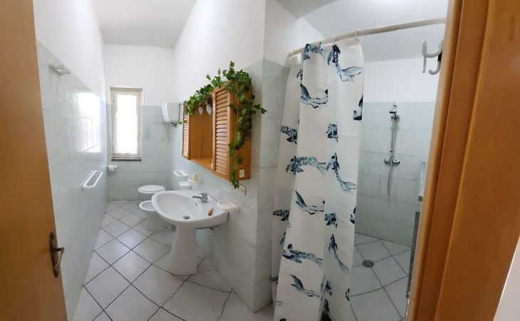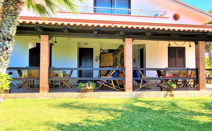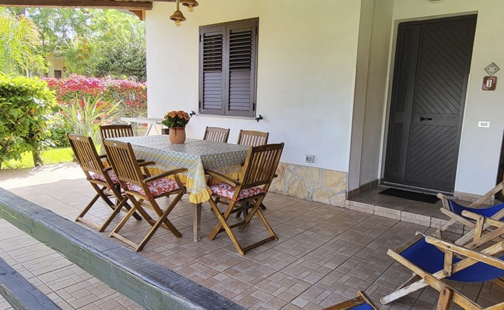 Die Wohnung, die sich im Erdgeschoss inmitten des üppigen Grüns des gepflegten Gartens befindet, ist wie folgt ausgestattet: 2 Doppelschlafzimmer (das erste mit einem Doppelbett und einem Etagenbett an der Seite, das zweite mit zwei Einzelbetten, die durch Zusammenstellen der Betten zu einem Doppelbett werden können), Wohnküche, Bad mit Dusche, Hauswirtschaftsraum mit Waschbecken und große überdachte Veranda auf der Meerseite mit Blick auf den Garten. Es besteht die Möglichkeit, Betten hinzuzufügen. Parkplatz innerhalb der Villa. Die Wohnung ist mit allem Komfort ausgestattet: Satelliten-TV, selbstfahrende Grill, Liegestühle, warme und kalte Dusche auch im Garten, Waschmaschine, voll ausgestattete Küche, Internet, Schreibtisch, Kleiderschrank, Tisch mit sechs Sitzen sowohl innerhalb als auch außerhalb auf der Veranda, wo Sie atemberaubende Sonnenuntergänge auf Stromboli genießen können.