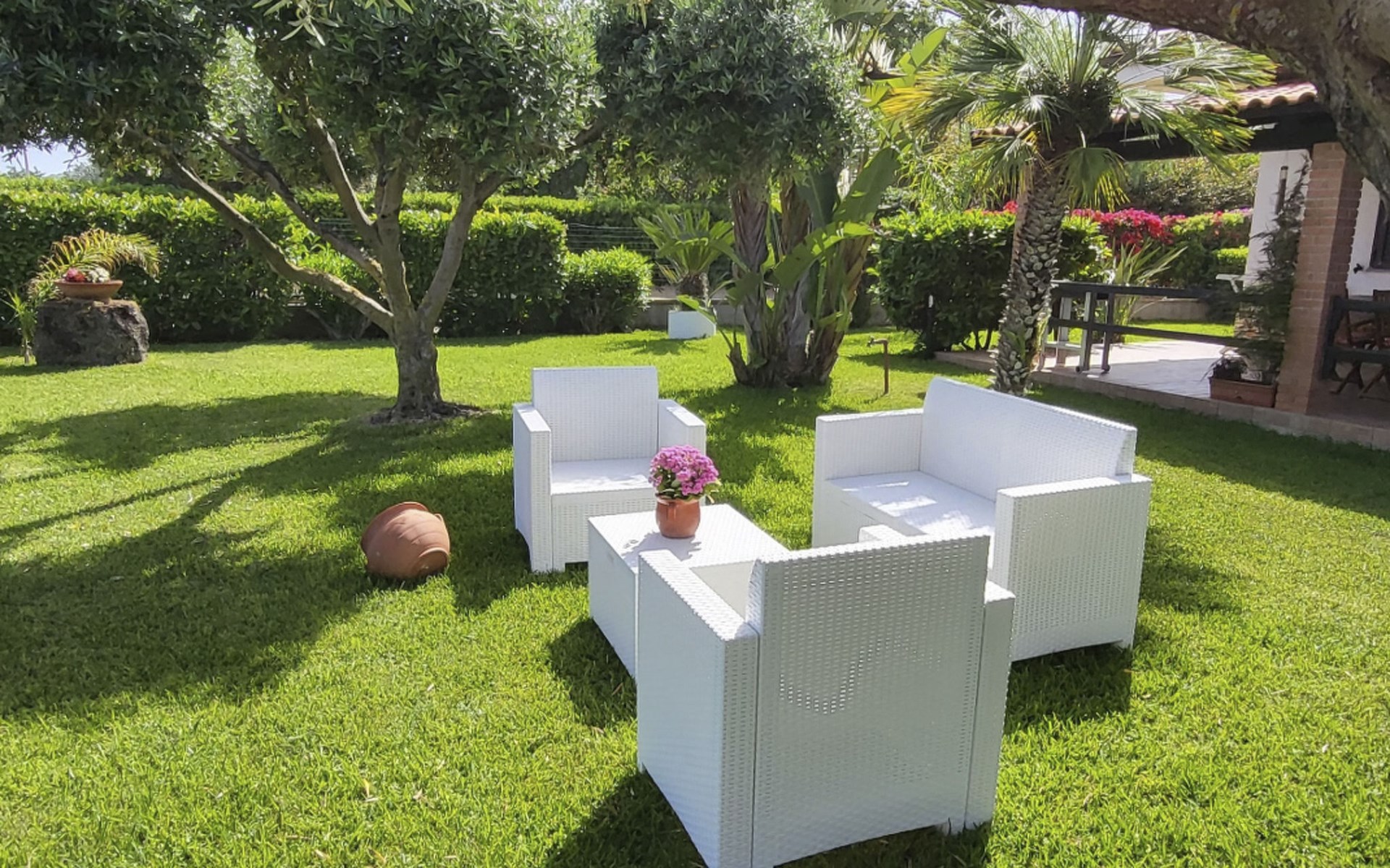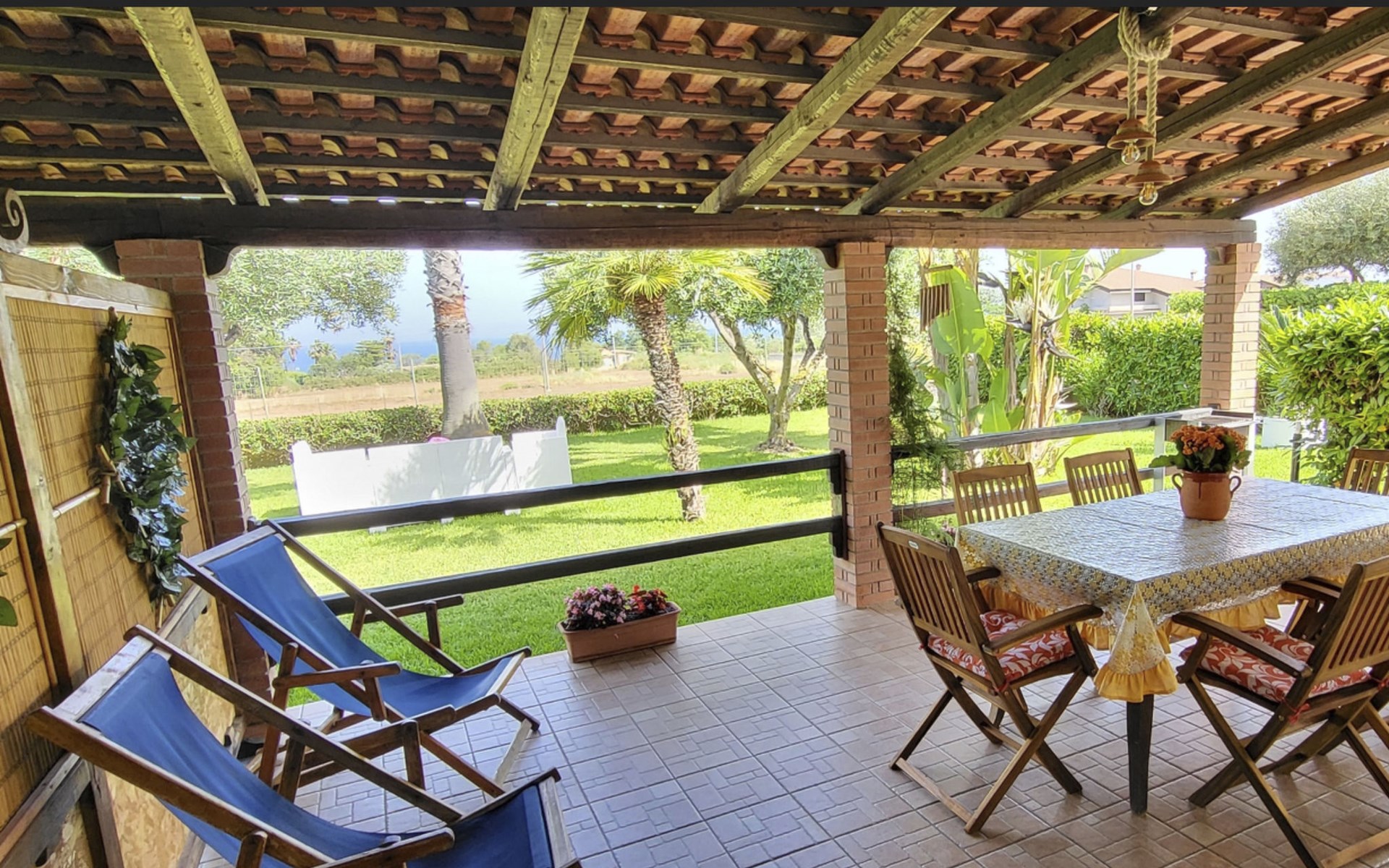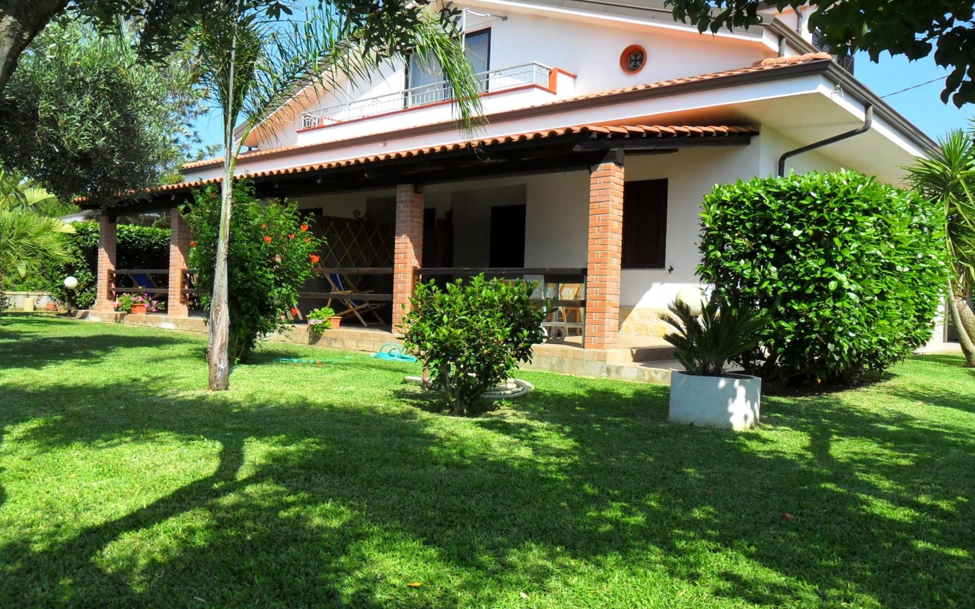 Die Wohnung, die sich im Erdgeschoss inmitten des üppigen Grüns des gepflegten Gartens befindet, ist wie folgt ausgestattet: 2 Doppelschlafzimmer (das erste mit einem Doppelbett und einem Etagenbett an der Seite, das zweite mit zwei Einzelbetten, die durch Zusammenstellen der Betten zu einem Doppelbett werden können), Wohnküche, Bad mit Dusche, Hauswirtschaftsraum mit Waschbecken und große überdachte Veranda auf der Meerseite mit Blick auf den Garten. Es besteht die Möglichkeit, Betten hinzuzufügen. Parkplatz innerhalb der Villa. Die Wohnung ist mit allem Komfort ausgestattet: Satelliten-TV, selbstfahrende Grill, Liegestühle, warme und kalte Dusche auch im Garten, Waschmaschine, voll ausgestattete Küche, Internet, Schreibtisch, Kleiderschrank, Tisch mit sechs Sitzen sowohl innerhalb als auch außerhalb auf der Veranda, wo Sie atemberaubende Sonnenuntergänge auf Stromboli genießen können.