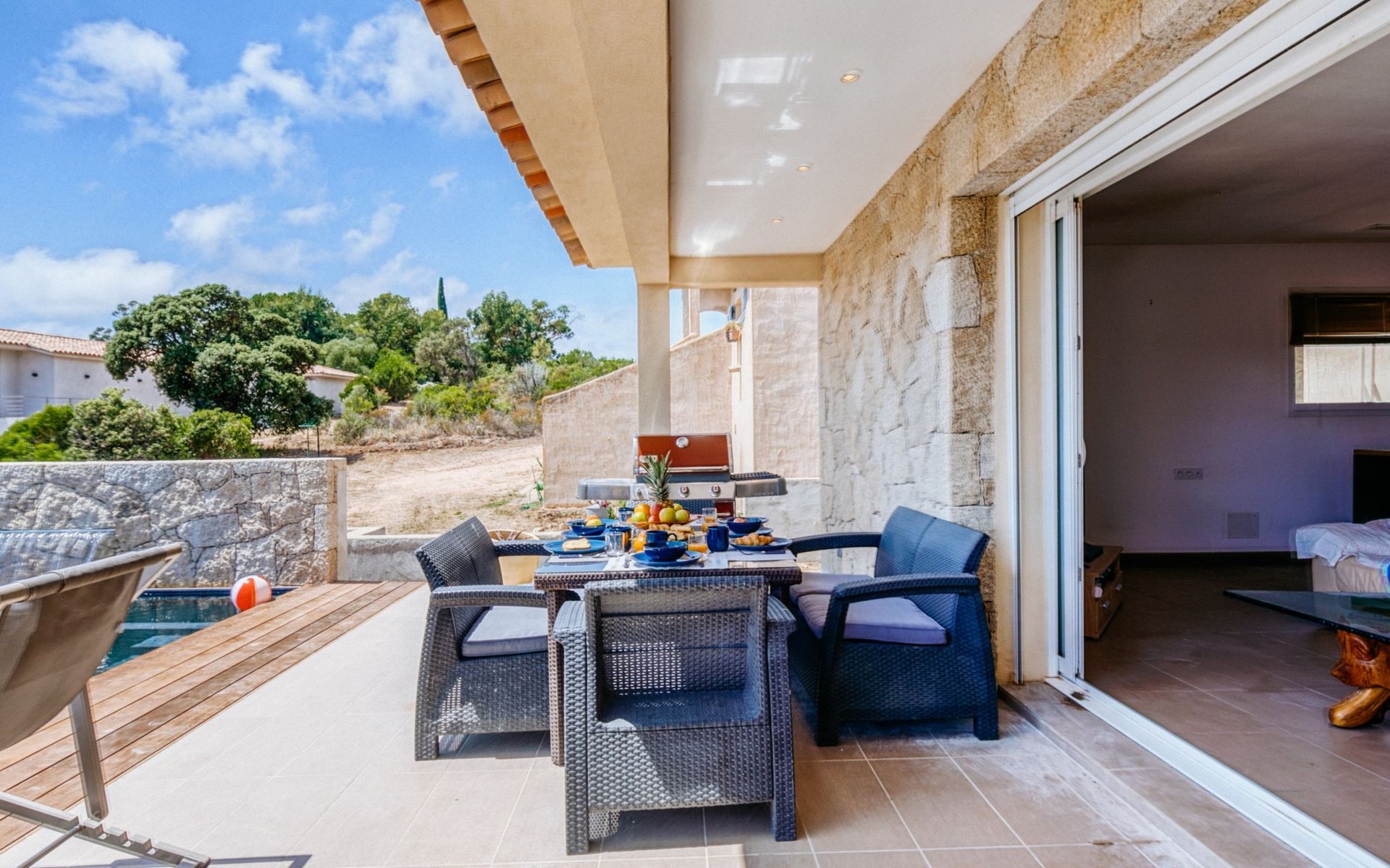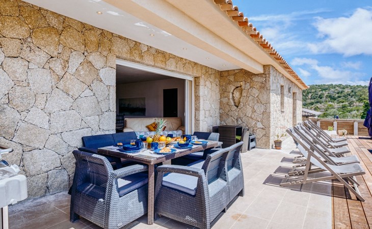 Schönes Einfamilienhaus "Villa Belios". Im Weiler Boca del'Oro, 1 km vom Meer, 2 km vom Strand. Zur Alleinbenutzung: Schwimmbad (8 x 4 m, 150 - 150 cm tief, saisonale Verfügbarkeit: 01.Mai. - 01.Okt.) mit Innentreppe und Rollladenabdeckung. Poolpflege durch den Besitzer/Gärtner. Zufahrt (Bergstrasse). Parkplatz auf dem Grundstück. Einkaufsgeschäft 4 km, Lebensmittelgeschäft 3 km, Supermarkt 8 km, Restaurant 200 m, Bäckerei 3 km, Bushaltestelle 2.2 km. Sporthafen 6 km, Golfplatz (9 Loch) 4 km, Reitstall 4 km. Nahe gelegene Sehenswürdigkeiten: Figari 21 km, Bonifacio 25 km, Solenzara 52 km, Plage de Palombaggia 1.5 km, Plage de Santa Giulia 2 km. Bekannte Seen in der Umgebung sind gut erreichbar: Lac de l'Ospedale 30 km. Wandergebiete: L'Ospedale. Bitte beachten: Fahrzeug empfohlen.