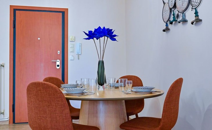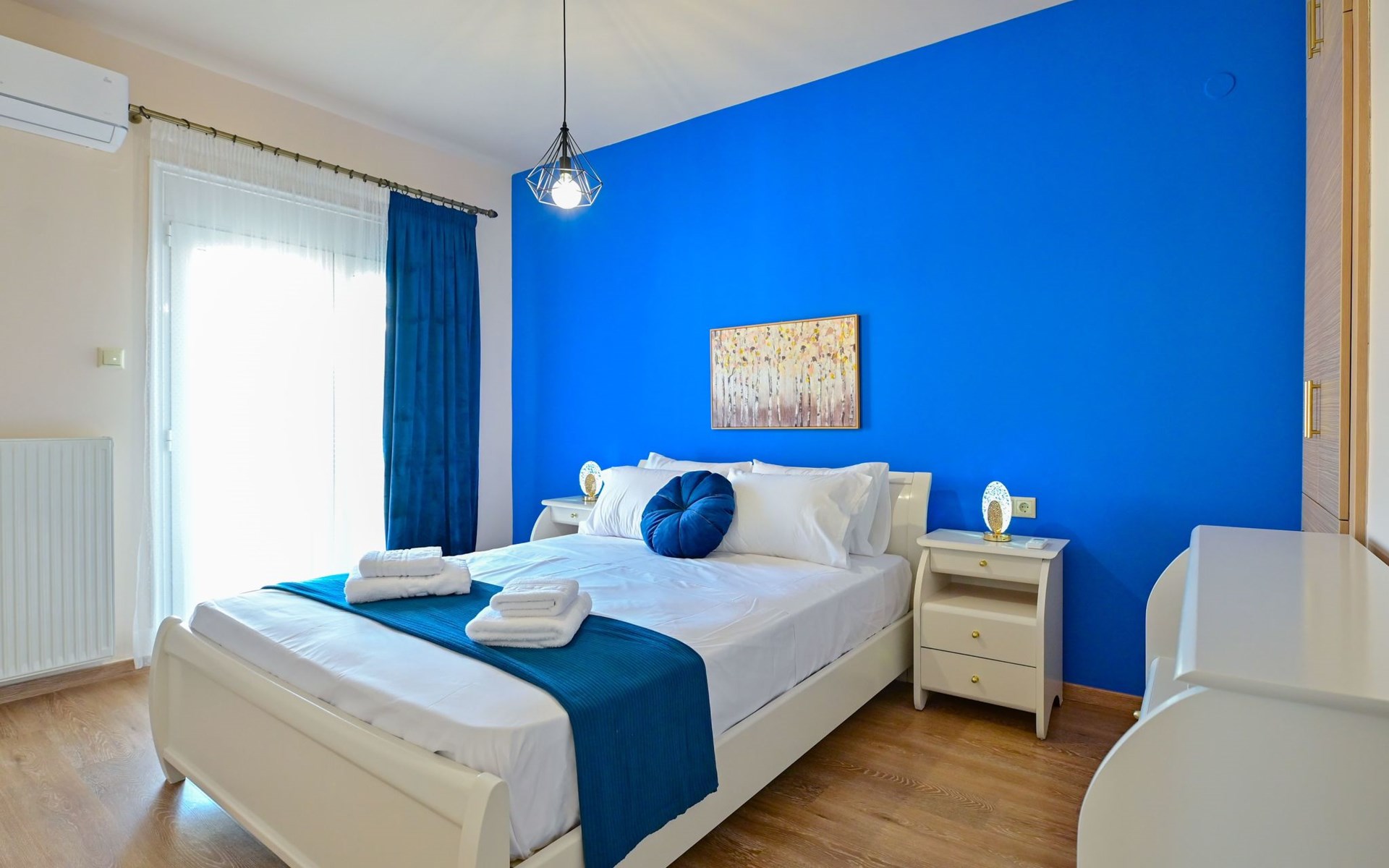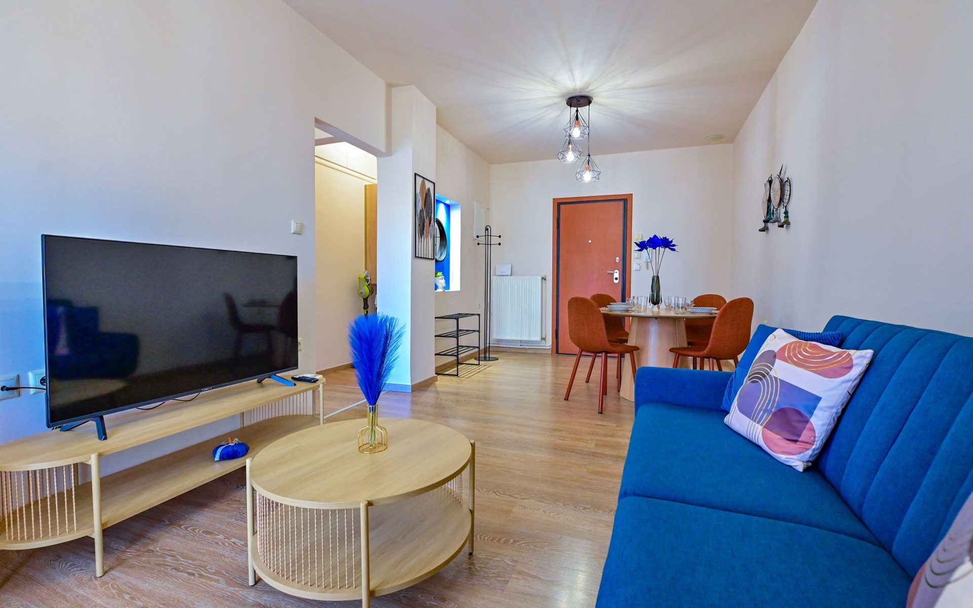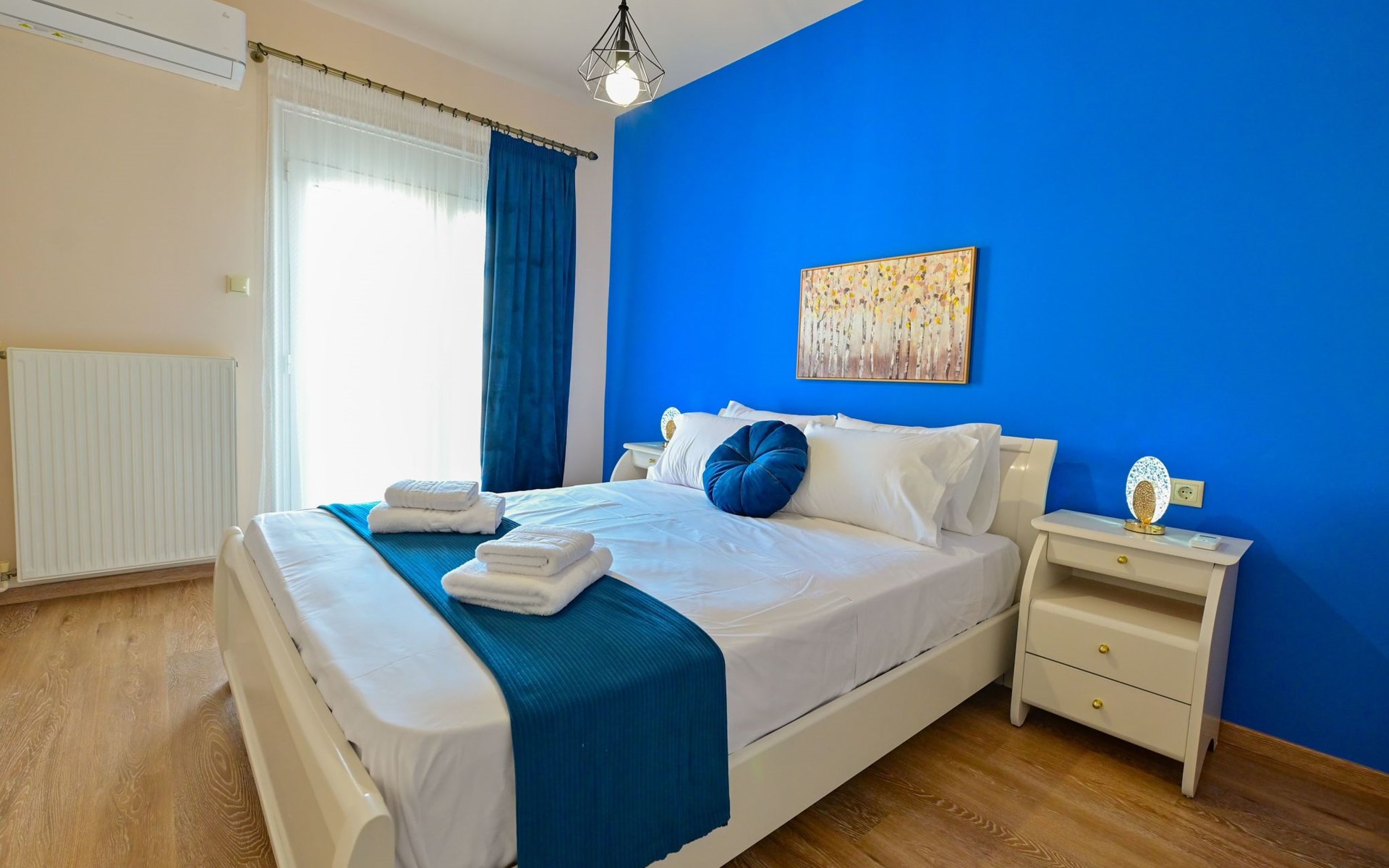 Im Inneren des Royal Blue Central House finden die Gäste einen durchdacht gestalteten Raum vor, der all ihren Bedürfnissen gerecht wird. Das gesamte Haus ist klimatisiert, so dass der Aufenthalt unabhängig von der Außentemperatur angenehm ist. Das Wohnzimmer bietet einen gemütlichen Rahmen für entspannende Abende, während eine Kaffeemaschine und ein Wasserkocher in der voll ausgestatteten Küche die Zubereitung von Kaffee oder Tee zu jeder Tageszeit ermöglichen. Eine Waschmaschine bietet den Gästen zusätzlichen Komfort während ihres Aufenthalts.