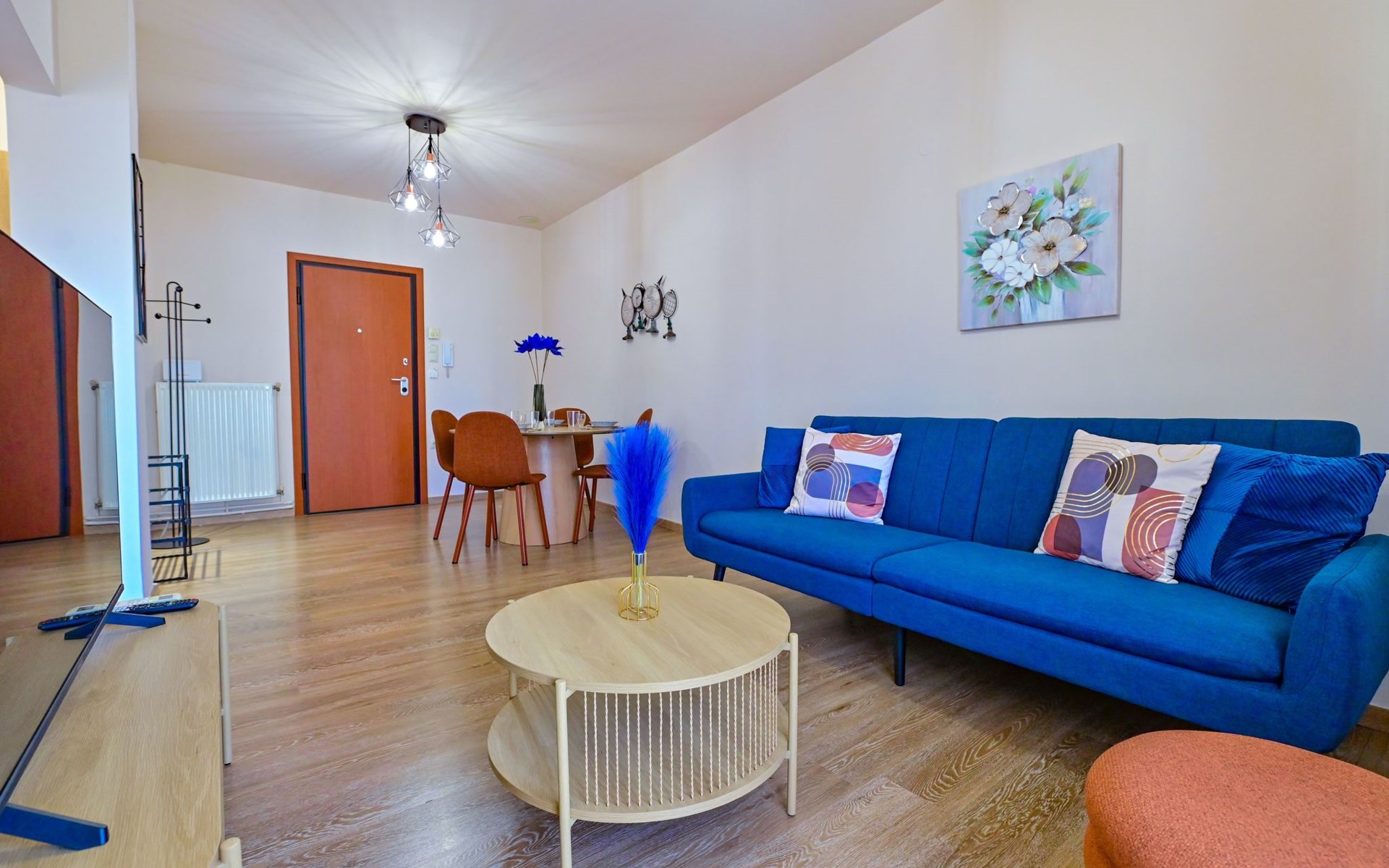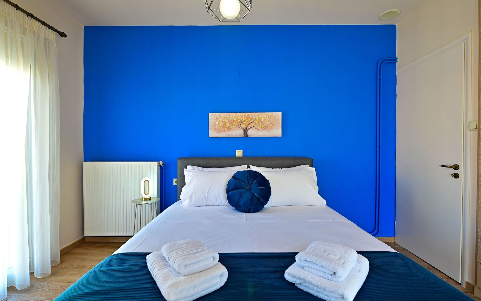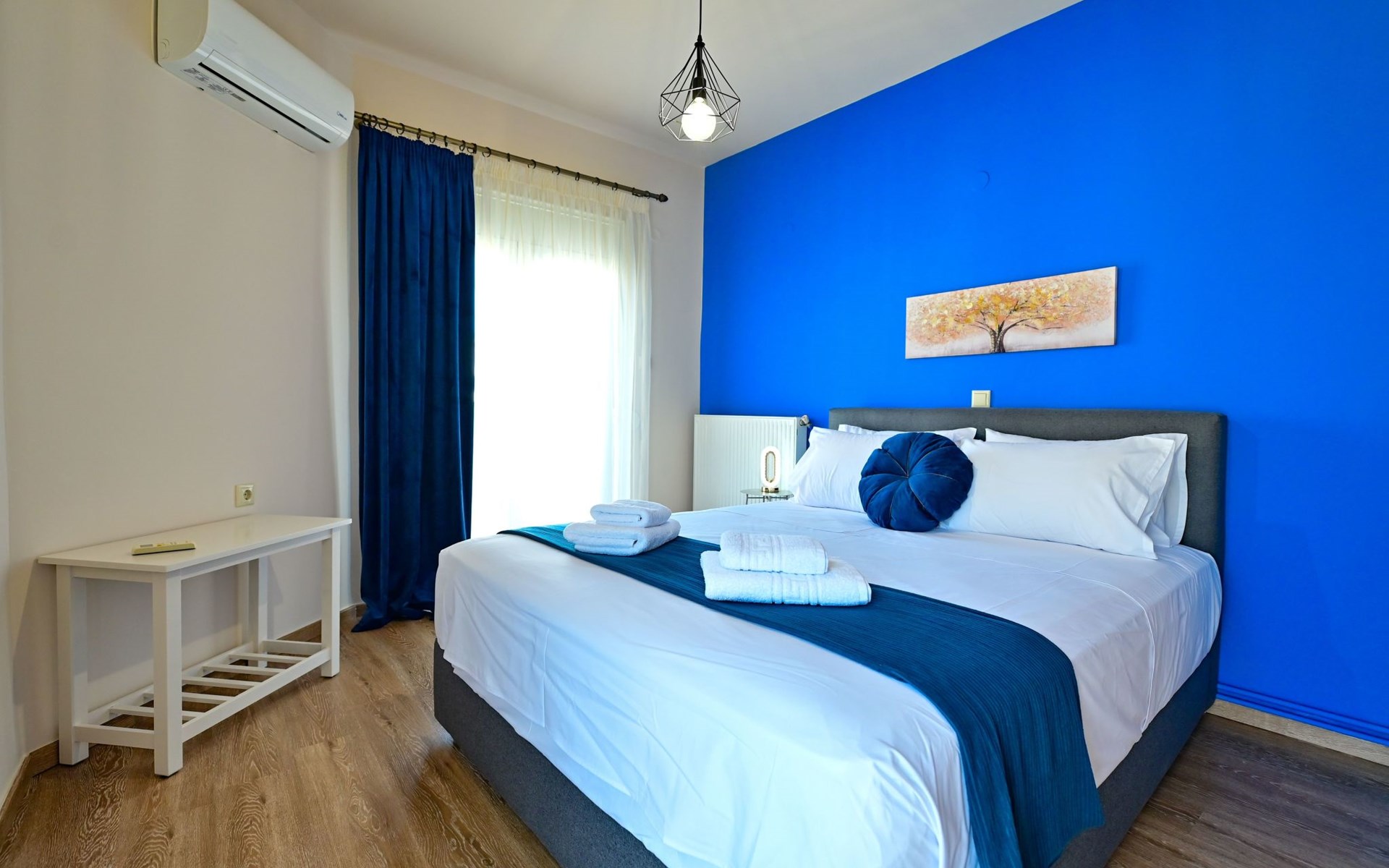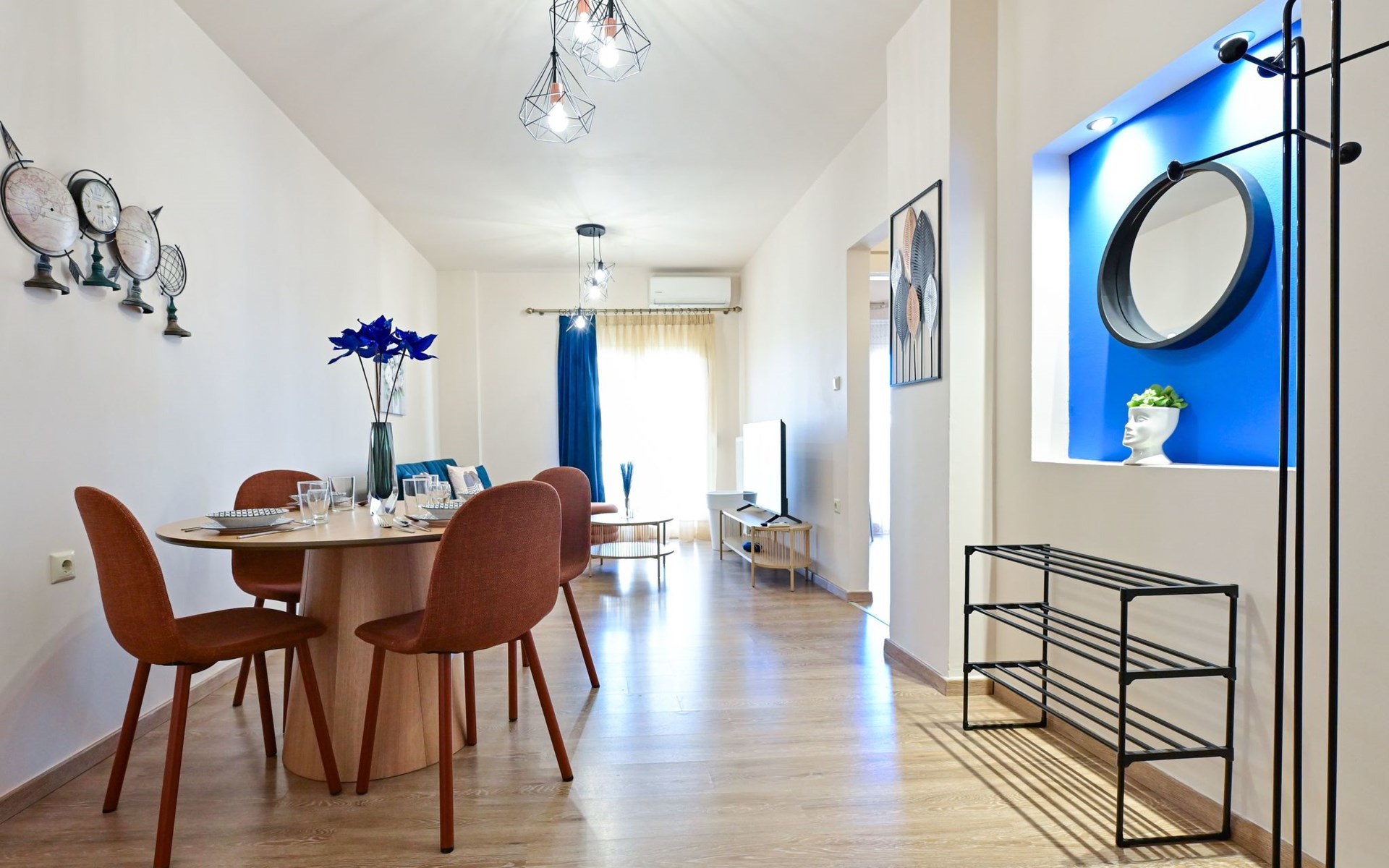 Im Inneren des Royal Blue Central House finden die Gäste einen durchdacht gestalteten Raum vor, der all ihren Bedürfnissen gerecht wird. Das gesamte Haus ist klimatisiert, so dass der Aufenthalt unabhängig von der Außentemperatur angenehm ist. Das Wohnzimmer bietet einen gemütlichen Rahmen für entspannende Abende, während eine Kaffeemaschine und ein Wasserkocher in der voll ausgestatteten Küche die Zubereitung von Kaffee oder Tee zu jeder Tageszeit ermöglichen. Eine Waschmaschine bietet den Gästen zusätzlichen Komfort während ihres Aufenthalts.