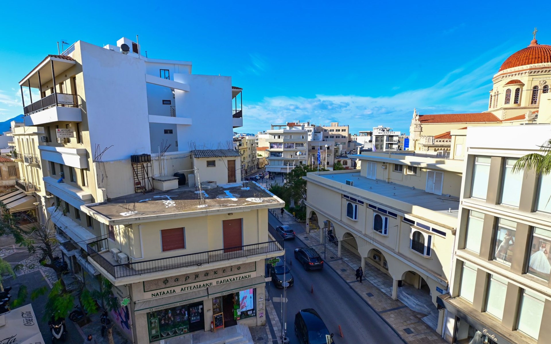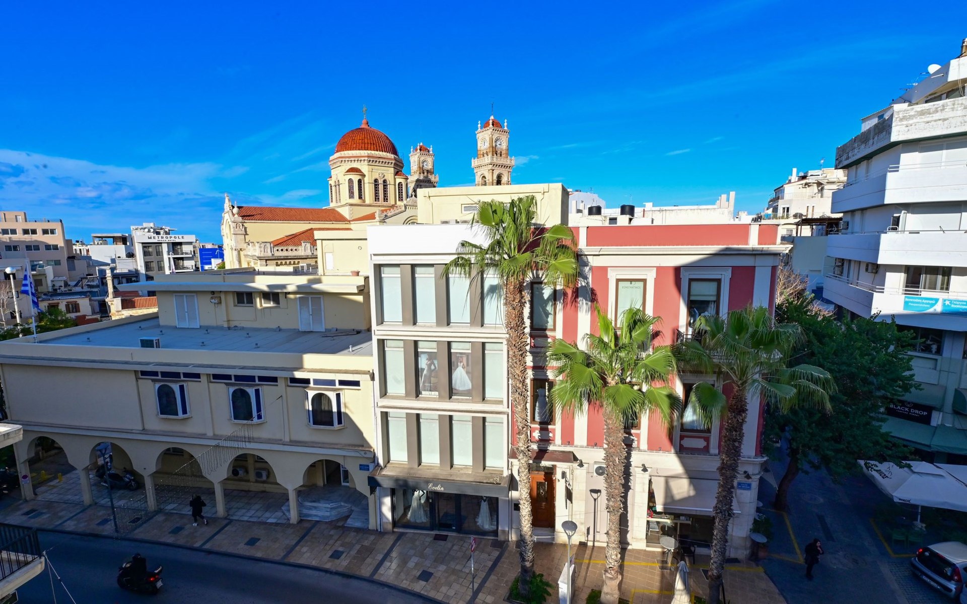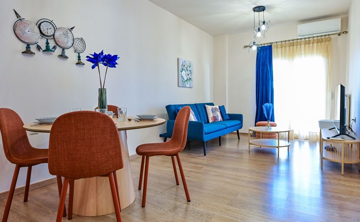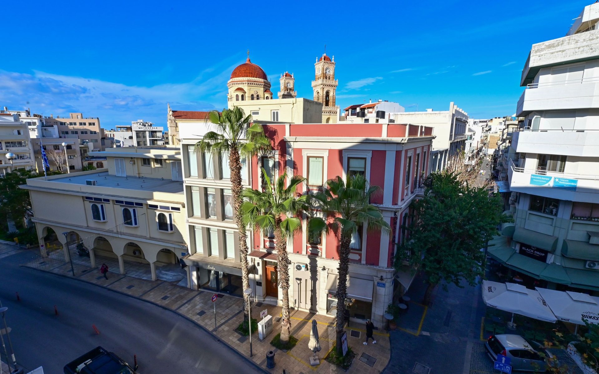 Die Lage des Royal Blue Central House bringt die Gäste in das Herz von Heraklions Charme. Weniger als 1 km von den historischen venezianischen Mauern und einen 8-minütigen Spaziergang vom Archäologischen Museum von Heraklion entfernt, sind kulturelle Ausflüge leicht erreichbar. Für Strandliebhaber gibt es in nur 2 km Entfernung den Amoudara-Strand mit Sandstrand und kristallklarem Wasser. Die Nähe zum 4 km entfernten internationalen Flughafen von Heraklion gewährleistet eine reibungslose An- und Abreise und macht das Hotel zu einem idealen Ausgangspunkt für die Erkundung der Insel.