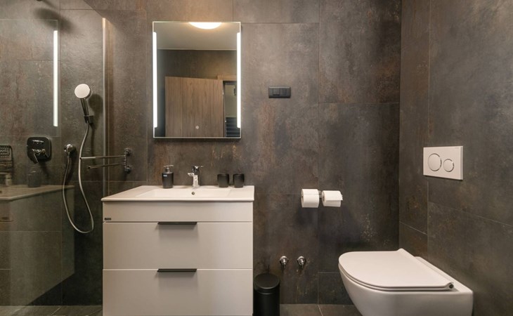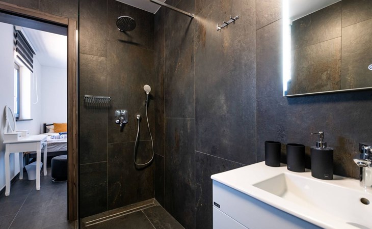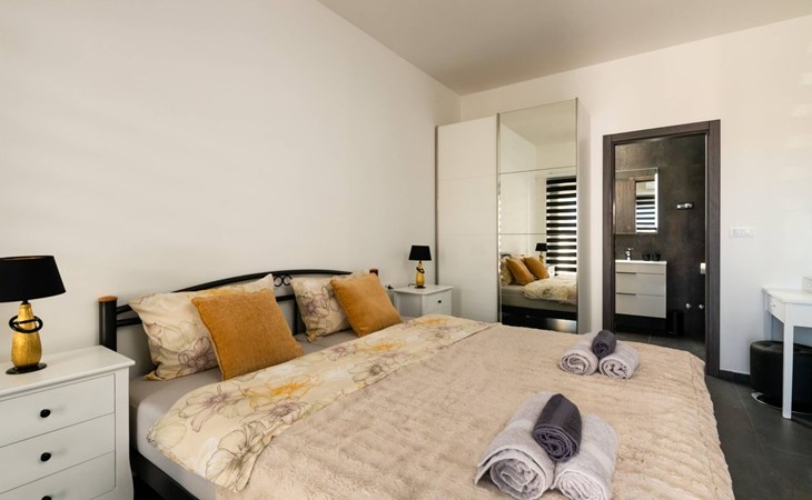Das 4. Schlafzimmer mit Bad befindet sich im Erdgeschoss. Ein Teil des Erdgeschosses wird nicht an Touristen vermietet, da Hausbesitzer dort im Sommer wohnen. Sie nutzen den privaten Garten mit Pool und Sommerküche nicht, da dieser Teil nur den Gästen zur Verfügung steht.