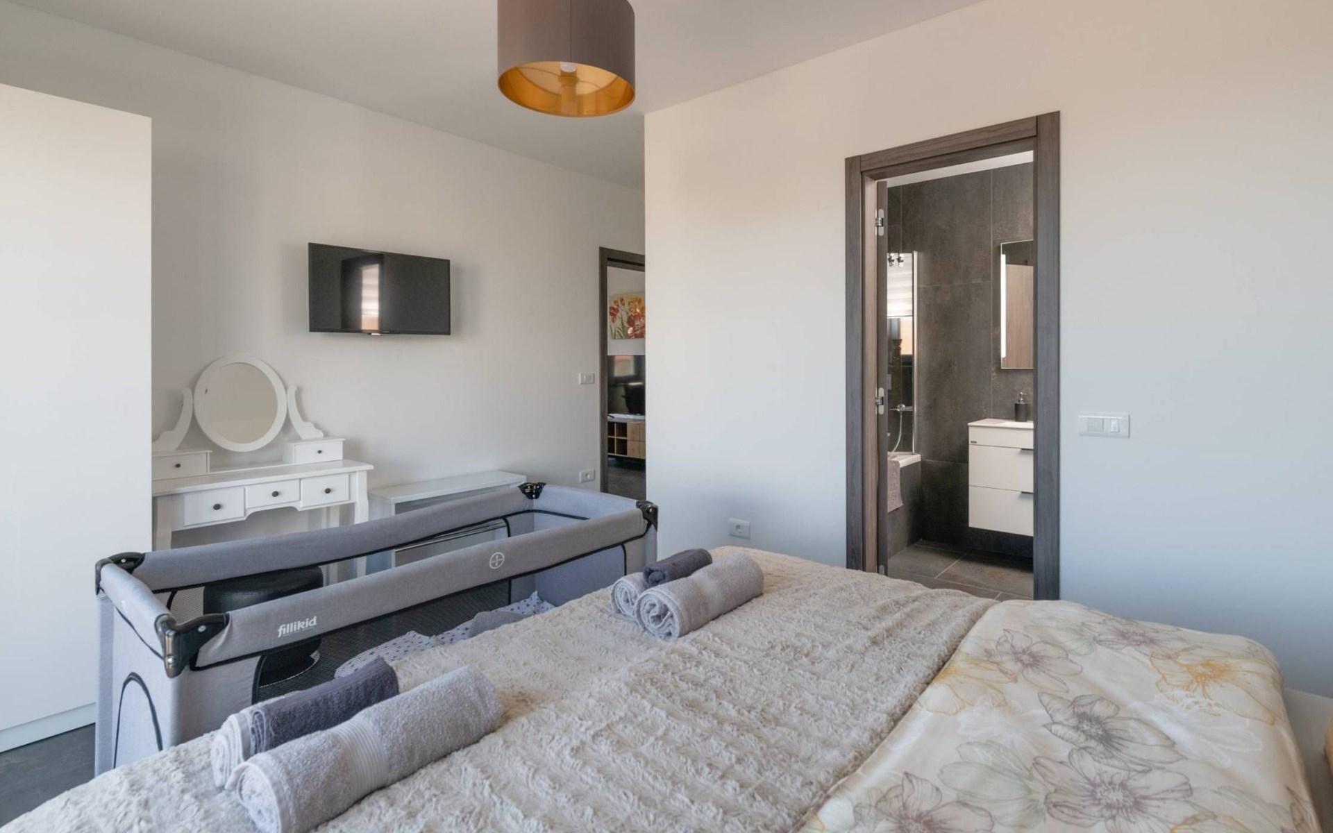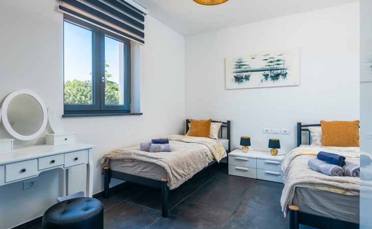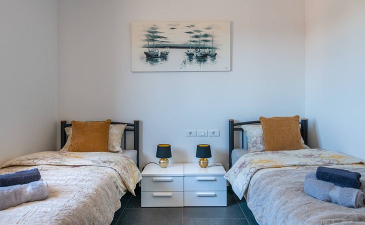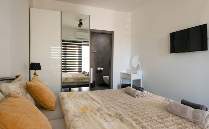 In der Villa gibt es insgesamt 4 Schlafzimmer. Die Wohneinheit befindet sich im 1. Stock und verfügt über 3 Schlafzimmer, ein Wohnzimmer, ein Esszimmer und eine kleine Küche mit Grundausstattung. Alle Schlafzimmer verfügen über ein eigenes Bad, eine Klimaanlage und einen Fernseher.
