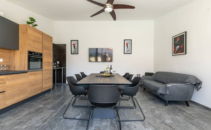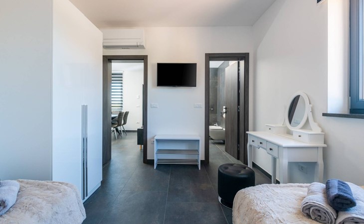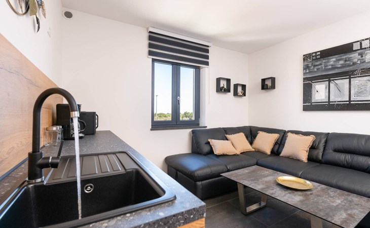 Der Sandstrand von Bijeca und der Kiesstrand Burle sind 1 km von der Unterkunft entfernt.Die Supermärkte Lidl und Plodine sind 1,5 km von der Unterkunft entfernt, während zahlreiche Restaurants weniger als 1 km entfernt sind (Restaurant Mimoza, Buffet Napoli, Konoba Kaminada, Restaurant Stari Ribar...).Die historische Stadt Pula mit ihrer lebhaften Altstadt und beliebten antiken Denkmälern ist 9 km entfernt.Das weltberühmte Kap Kamenjak ist 10 Autominuten entfernt und ist mit einem kristallblauen Meer, zahlreichen Buchten und Stränden geschmückt.