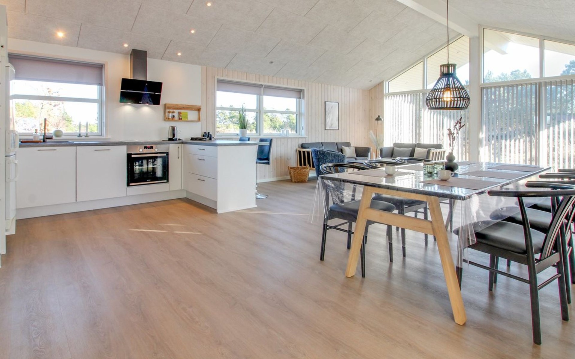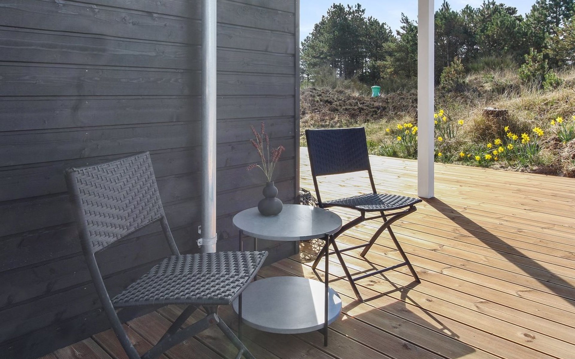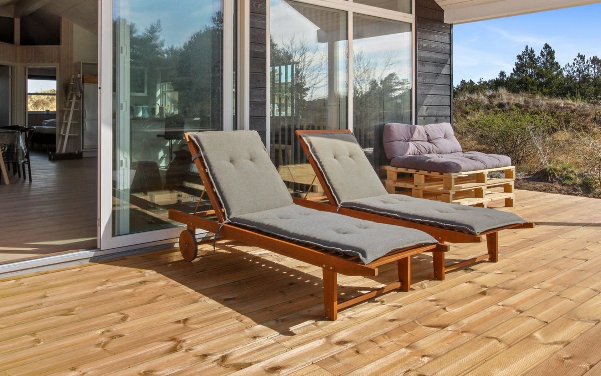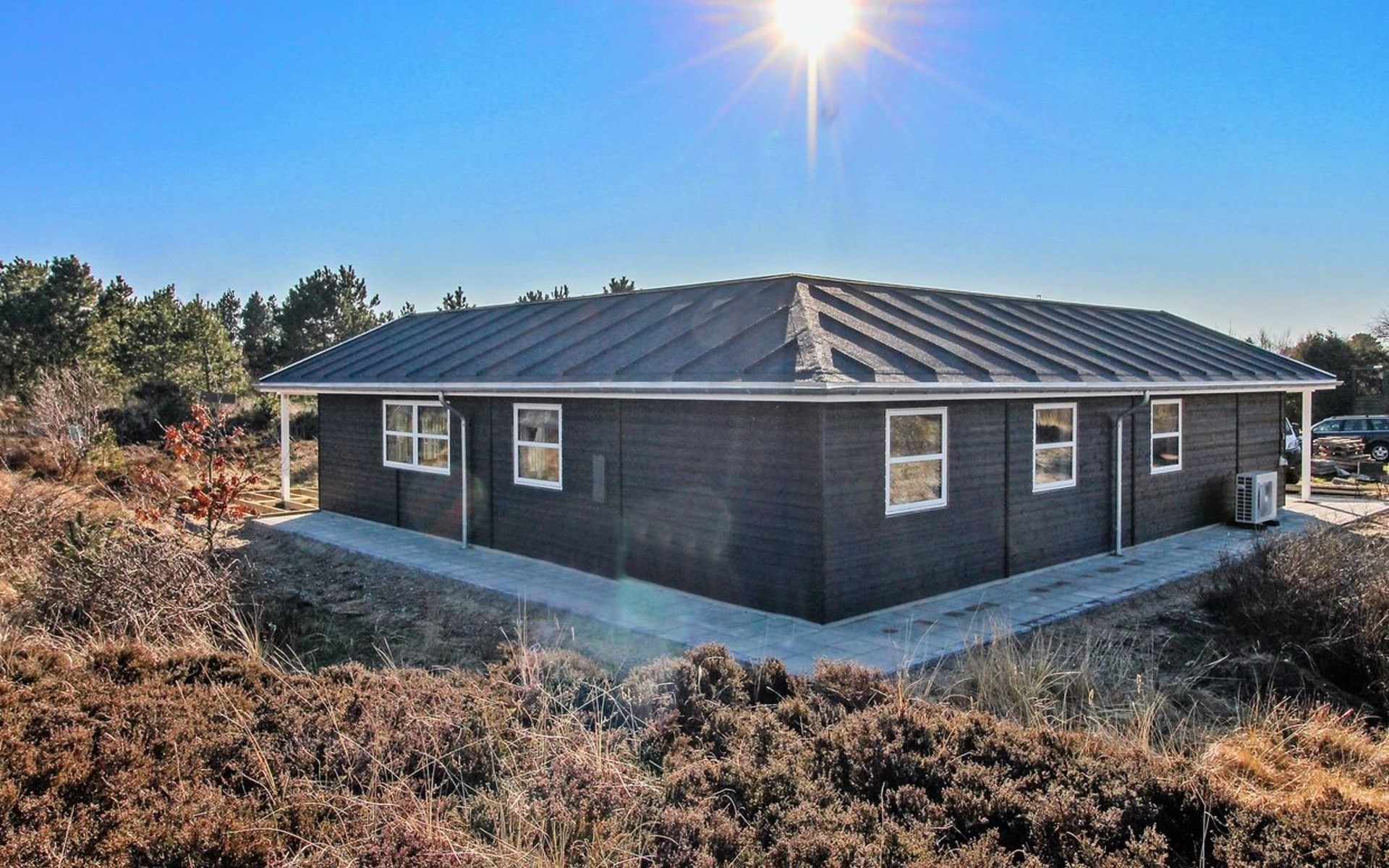 Einfamilienhaus, Baujahr 2022. 2.2 km vom Meer. Zur Alleinbenutzung: naturbelassenes Grundstück 2'500 m2. Terrasse (70 m2), Grill, Kinderspielplatz (Schaukel). Im Hause: Waschmaschine, Wäschetrockner. Parkplatz beim Haus. E-Ladestation. Lebensmittelgeschäft 1.8 km. Golfplatz 8.5 km. Der Besitzer akzeptiert keine Jugendgruppen.