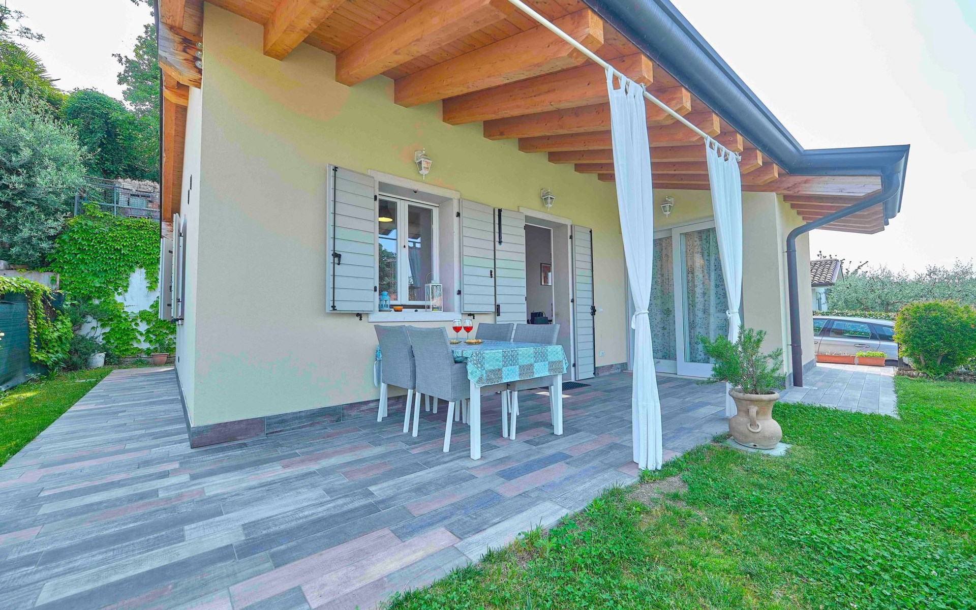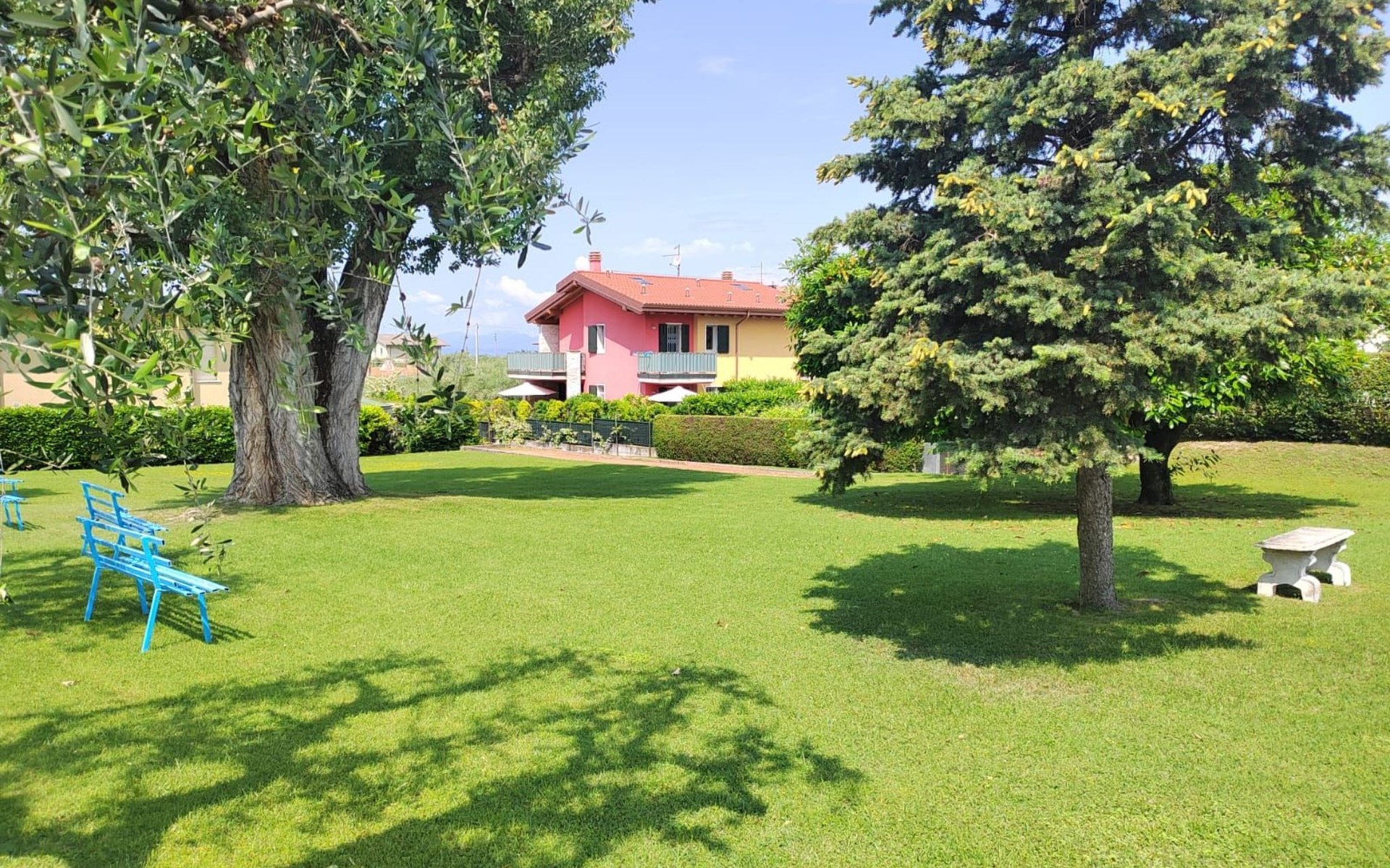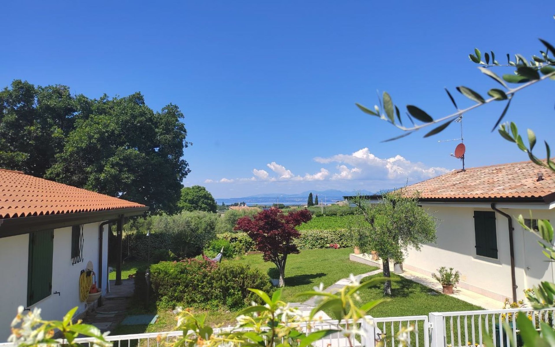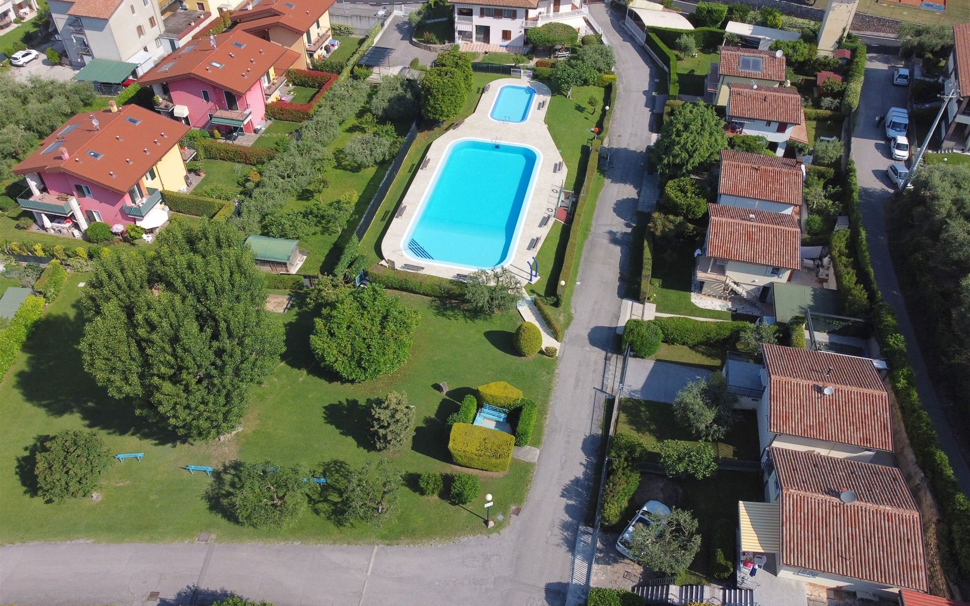 Im Außenbereich bietet der private Garten der Villa einen exklusiven Platz zum Entspannen und Genießen des milden Klimas am Gardasee. Mit 2 eigenen Parkplätzen müssen Sie sich keine Sorgen um einen Parkplatz machen. Außerdem haben Sie Zugang zu dem großen Gemeinschaftspool, der von Mitte Mai bis Ende September geöffnet ist, und der Ihnen Momente der Entspannung und des Vergnügens bietet, ohne dass Sie sich zu weit von Ihrem Feriendomizil entfernen müssen.