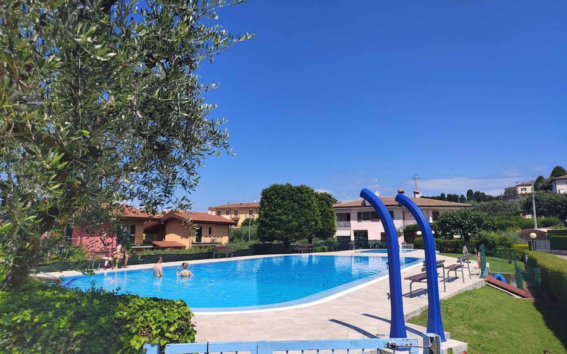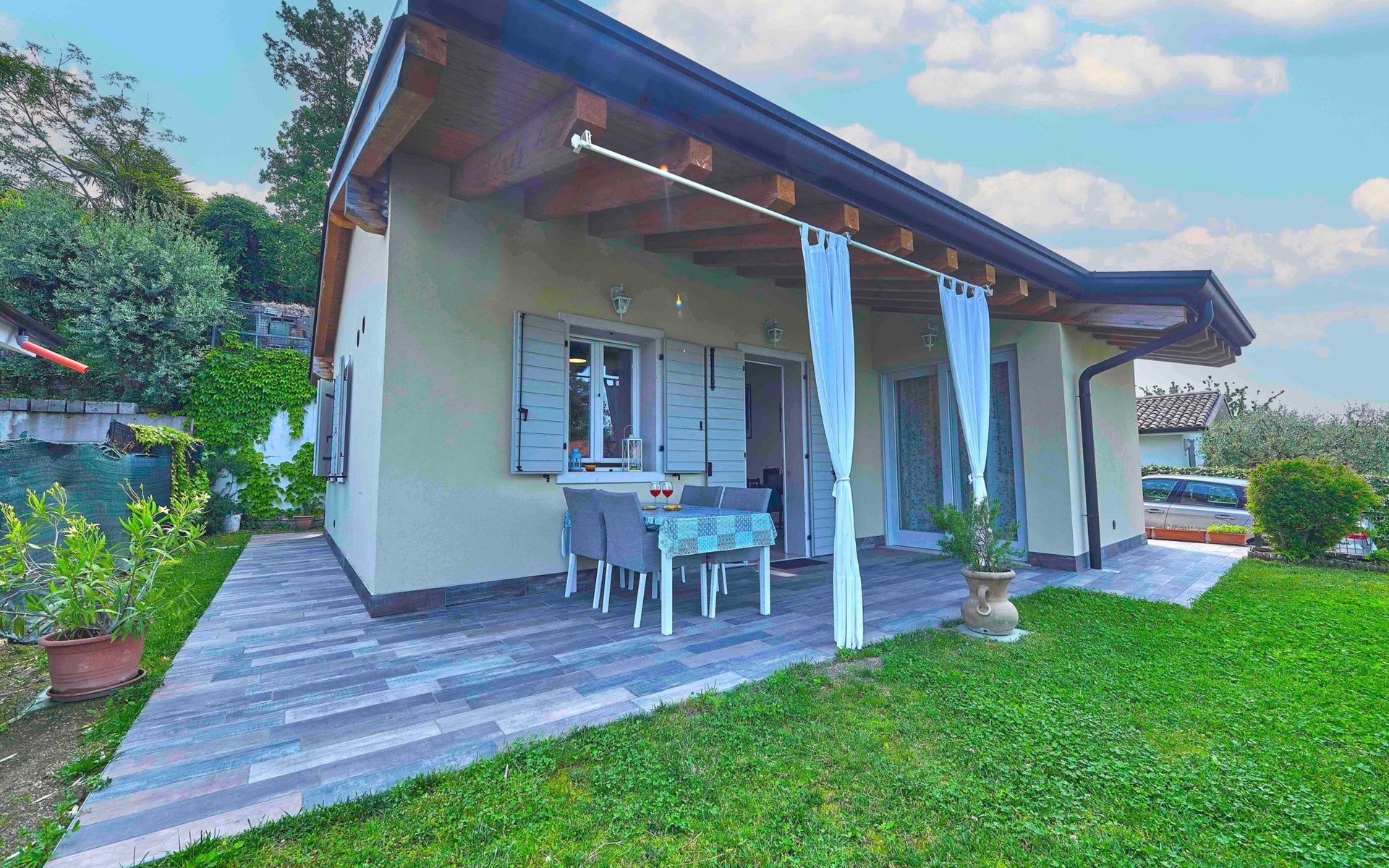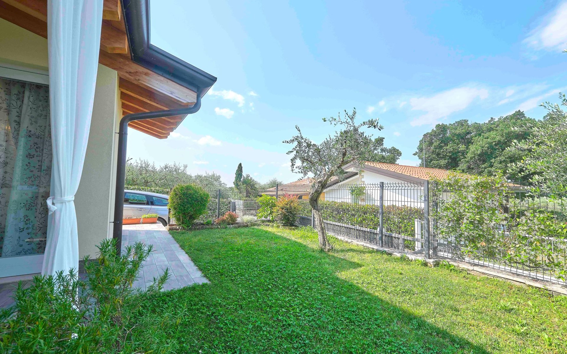 Im Außenbereich bietet der private Garten der Villa einen exklusiven Platz zum Entspannen und Genießen des milden Klimas am Gardasee. Mit 2 eigenen Parkplätzen müssen Sie sich keine Sorgen um einen Parkplatz machen. Außerdem haben Sie Zugang zu dem großen Gemeinschaftspool, der von Mitte Mai bis Ende September geöffnet ist, und der Ihnen Momente der Entspannung und des Vergnügens bietet, ohne dass Sie sich zu weit von Ihrem Feriendomizil entfernen müssen.