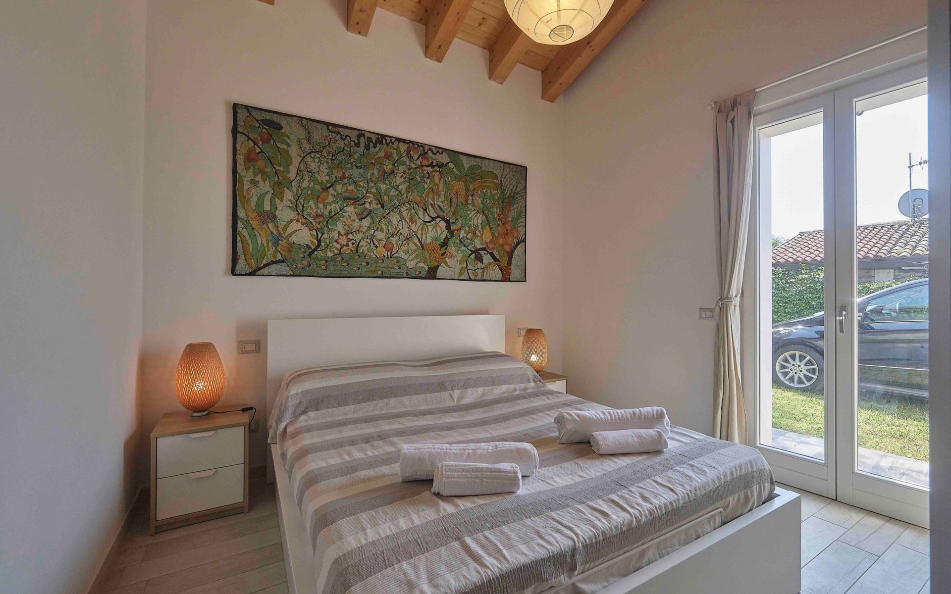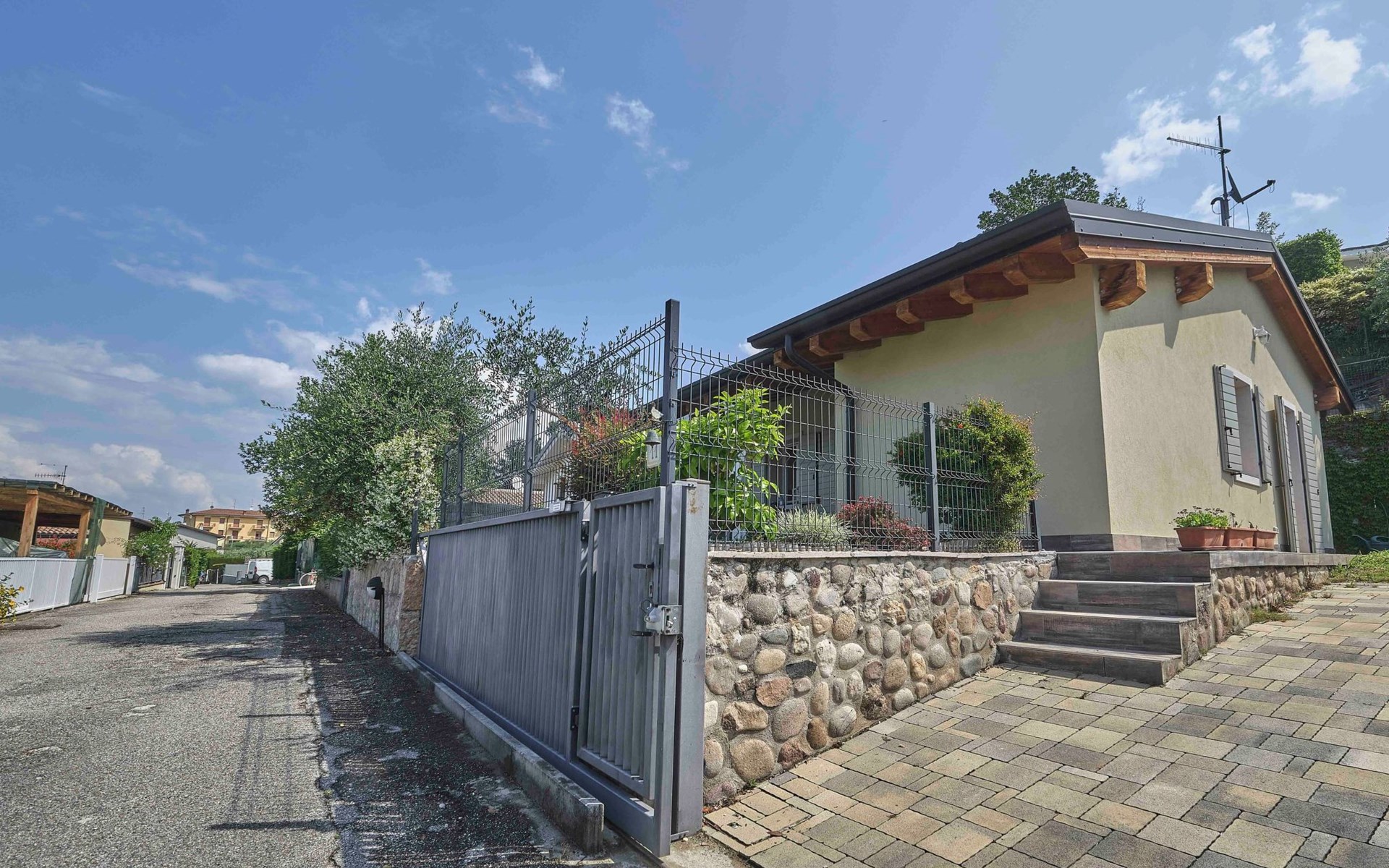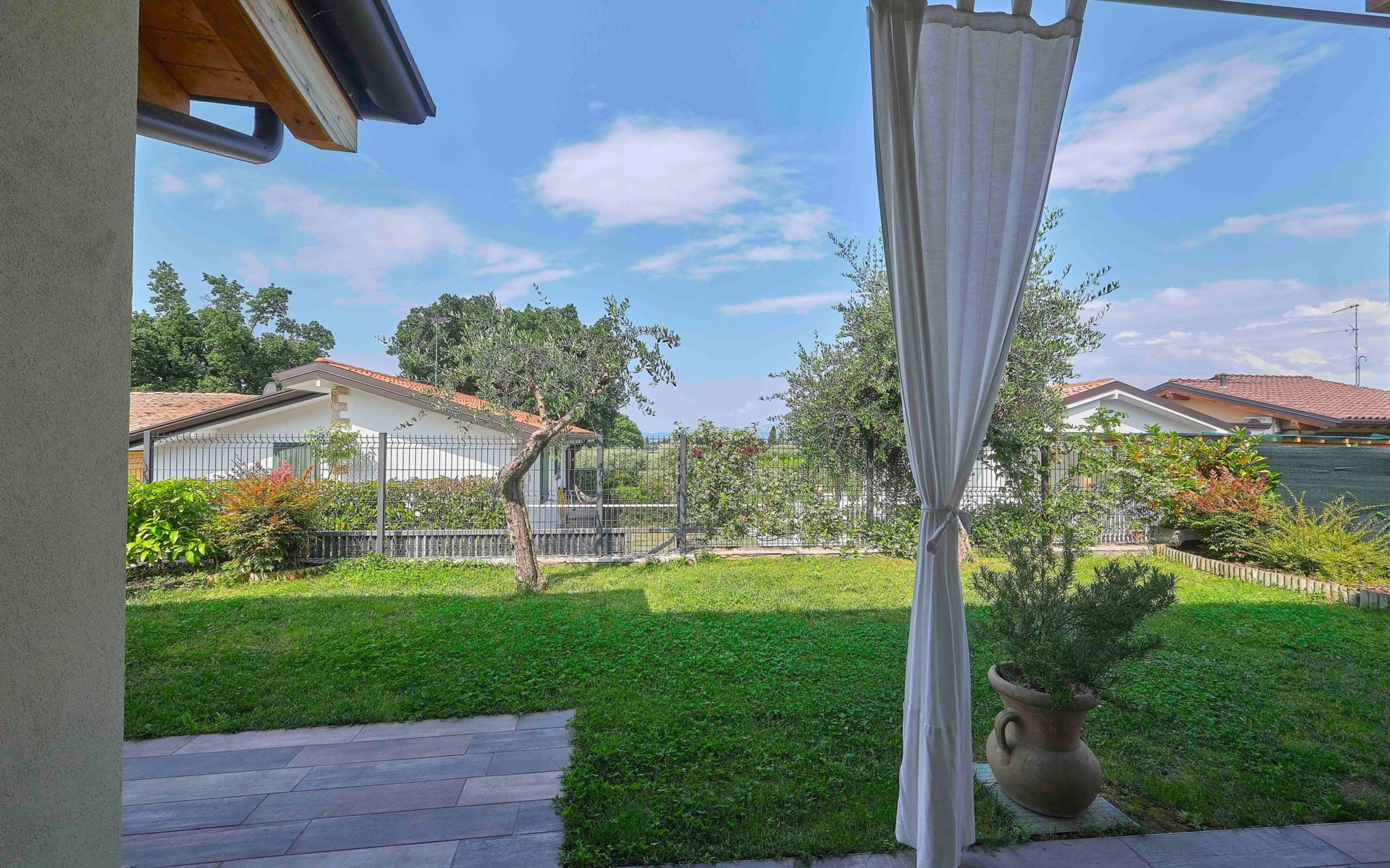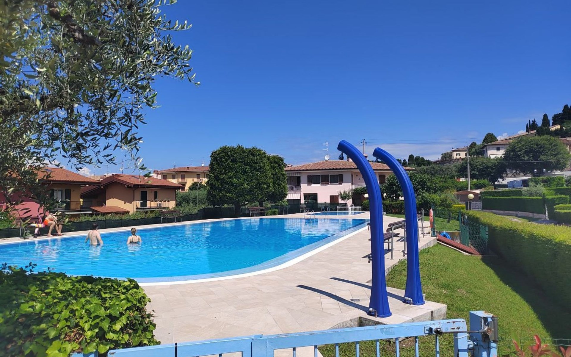 Im Außenbereich bietet der private Garten der Villa einen exklusiven Platz zum Entspannen und Genießen des milden Klimas am Gardasee. Mit 2 eigenen Parkplätzen müssen Sie sich keine Sorgen um einen Parkplatz machen. Außerdem haben Sie Zugang zu dem großen Gemeinschaftspool, der von Mitte Mai bis Ende September geöffnet ist, und der Ihnen Momente der Entspannung und des Vergnügens bietet, ohne dass Sie sich zu weit von Ihrem Feriendomizil entfernen müssen.