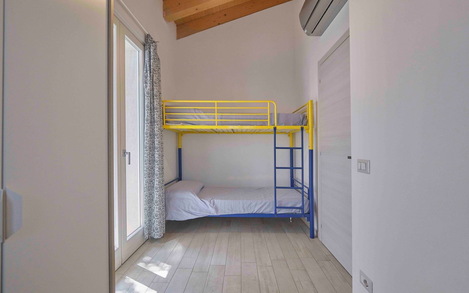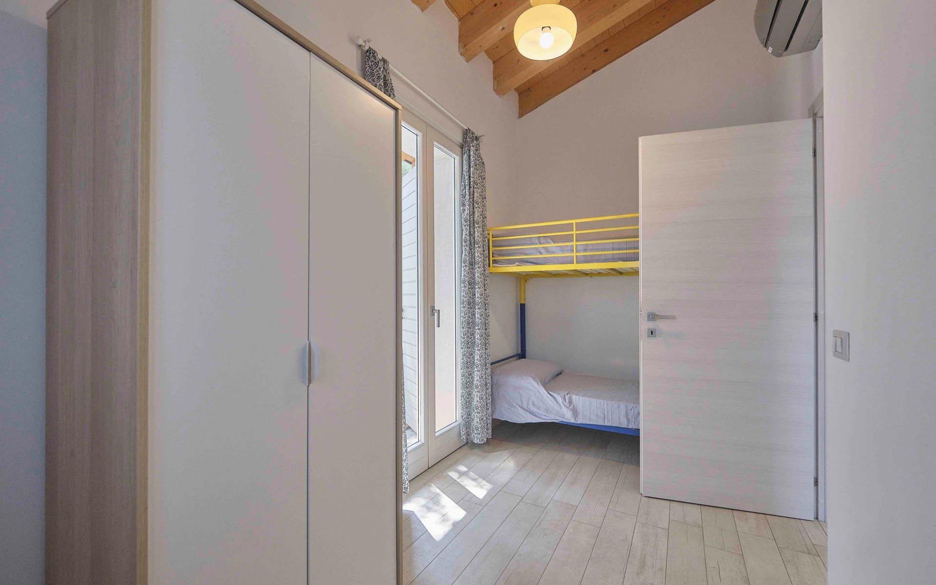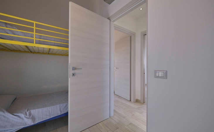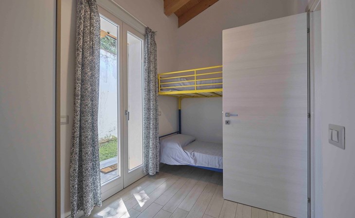 Das Innere des Ferienhauses ist mit allen notwendigen Annehmlichkeiten für einen angenehmen und unbeschwerten Aufenthalt ausgestattet. Es gibt ein gemütliches Wohnzimmer mit einem 140 cm breiten Schlafsofa, auf dem Sie sich nach einem erlebnisreichen Tag in der Umgebung entspannen können. In der Kochnische mit Waschmaschine können Sie Ihre eigenen Mahlzeiten zubereiten. Mit einem Schlafzimmer mit Doppelbett und einem kleinen Zimmer mit 2 Etagenbetten bietet das Haus bequem Platz für bis zu 6 Personen. Ein Badezimmer mit Fenster und eine Veranda vervollständigen das Innere des Hauses, das auch mit Satellitenfernsehen, WLAN und Klimaanlage ausgestattet ist, um jederzeit maximalen Komfort zu gewährleisten.