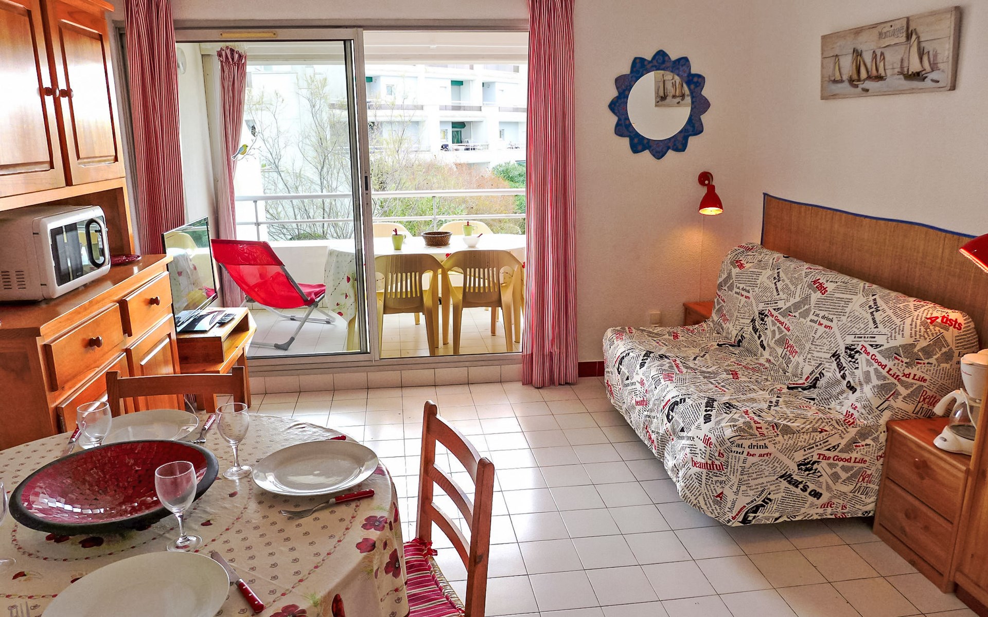 Residenz "Aurore", auf 3 Stockwerken. Im Ortsteil La Motte du Couchant, 2 km vom Zentrum, 500 m vom Meer, 450 m vom Strand. In der Anlage: Fahrstuhl. Einkaufszentrum, Restaurant 100 m, Bushaltestelle "De lattre de Tassigny" 250 m, Bahnstation "Montpellier" 25 km, Sandstrand 250 m, Hallenbad 3.5 km, Thermalbad "Thalasso Spa" 4 km. Sporthafen 1 km, Golfplatz (18 Loch) 4 km, Segelschule 1 km, Tennis 3.5 km, Reitstall 1.5 km. Nahe gelegene Sehenswürdigkeiten: Le Seaquarium du Grau Du Roi 10 km, Les Remparts d'Aigues Mortes 12 km, Les Saintes Maries de la Mer 40 km. Bitte beachten: Flugplatz in der Nähe 20 km vom Haus. Weitere Unterkünfte sind buchbar.