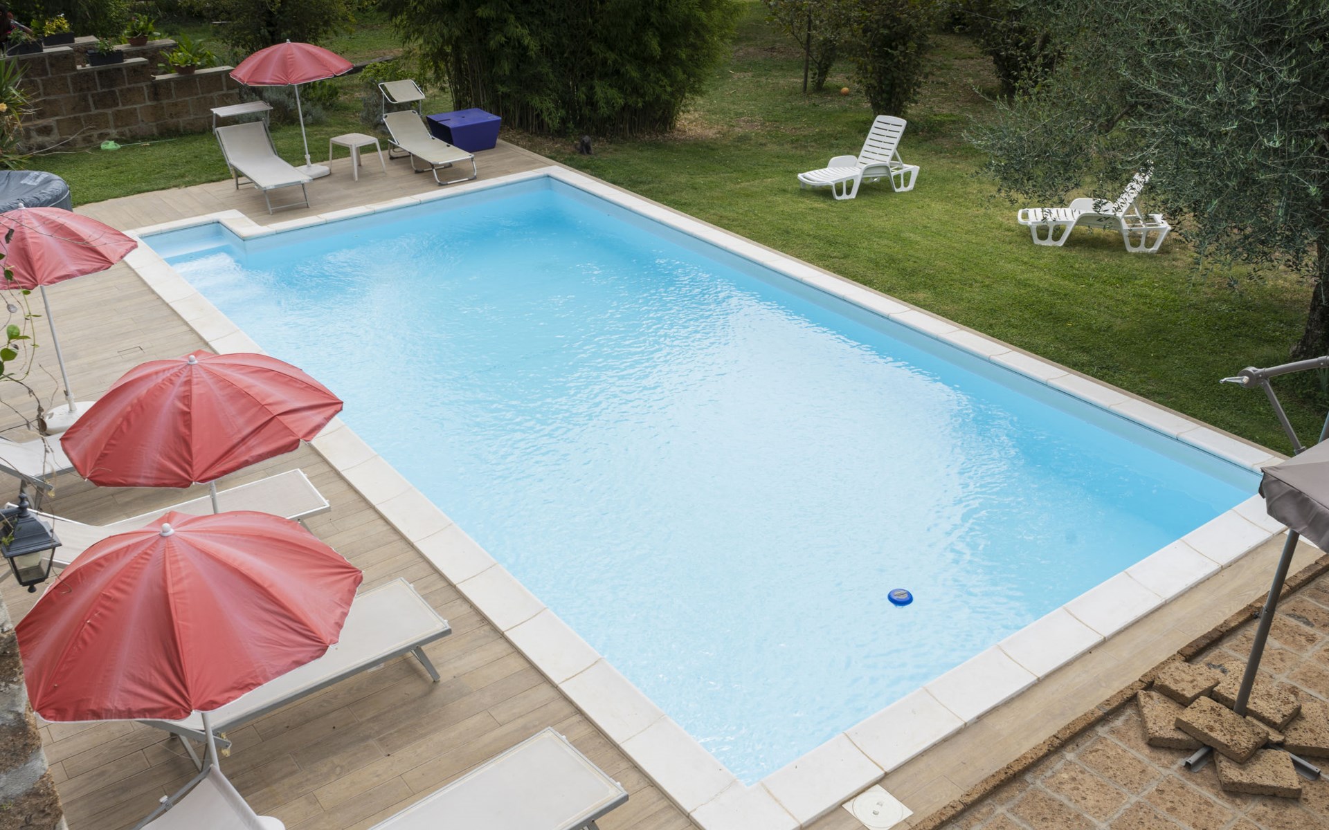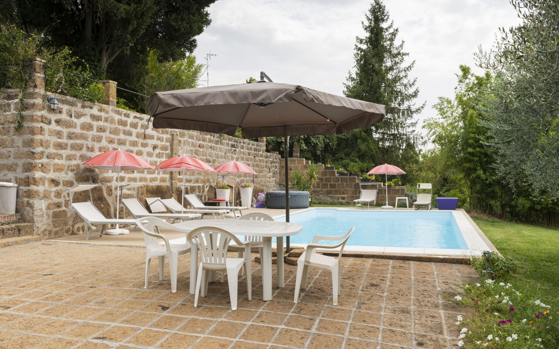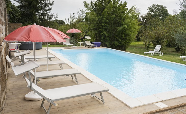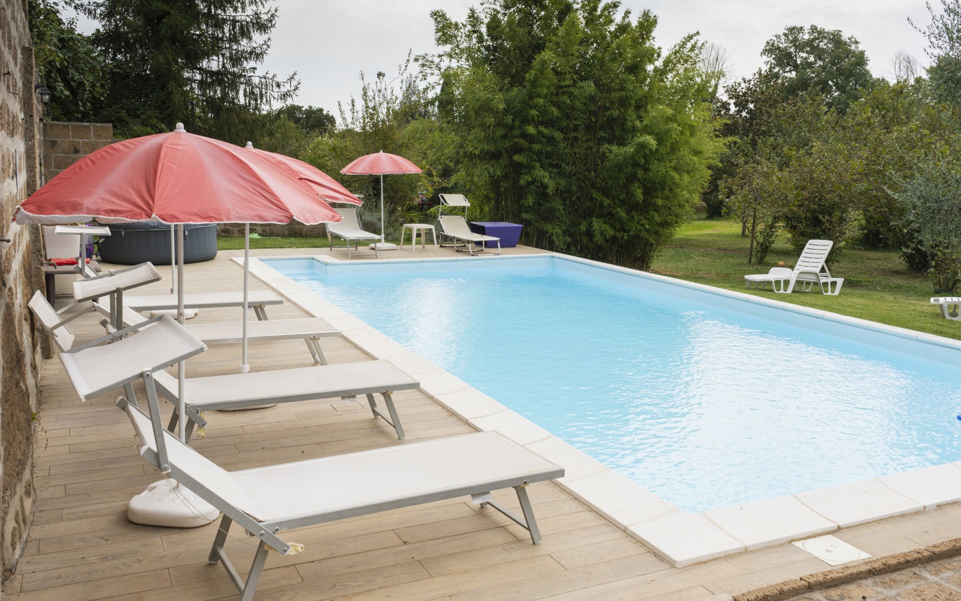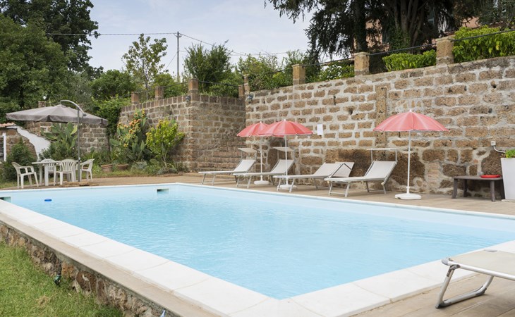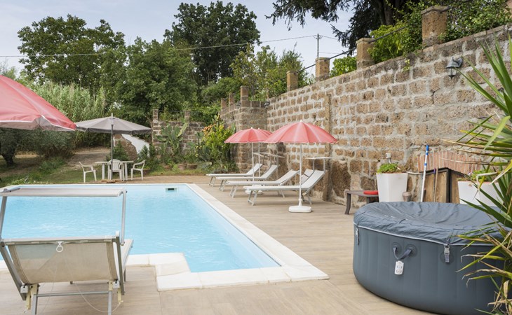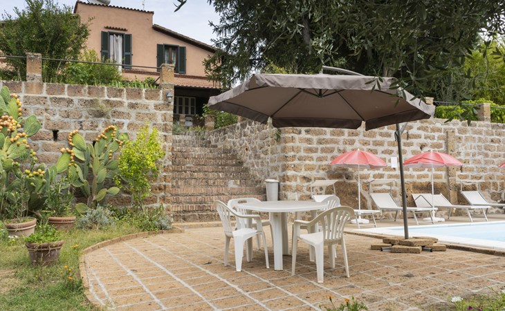 Freistehendes Landhaus "Casale Ai Noccioli". 2 km vom Zentrum von Corchiano, 30 km vom Zentrum von Viterbo, 65 km vom Zentrum von Roma, 20 km vom See, im Grünen. Zur Mitbenutzung: naturbelassenes Grundstück 18'000 m2, terrassierter Garten mit Bäumen, Wiese, Schwimmbad (11 x 5 m, 150 cm tief, saisonale Verfügbarkeit: 23.Mai. - 03.Okt.) mit Salzelektrolyse-Reinigungssystem. Aussendusche, Tischtennis, Poolpflege durch den Besitzer/Gärtner. Im Hause: Tischfussball. 250 m lange schmale Zufahrt (Naturweg). Parkplatz beim Haus. Supermarkt 2 km, Bushaltestelle 700 m, Sandstrand "Lago di Vico" 20 km. Bitte beachten: Der Besitzer wohnt auf dem gleichen Grundstück.